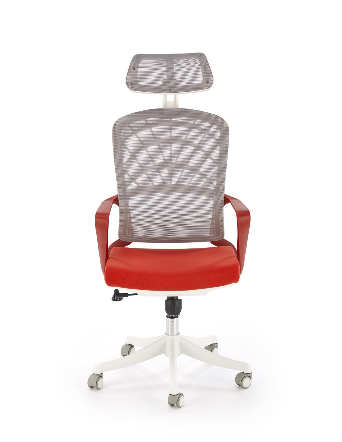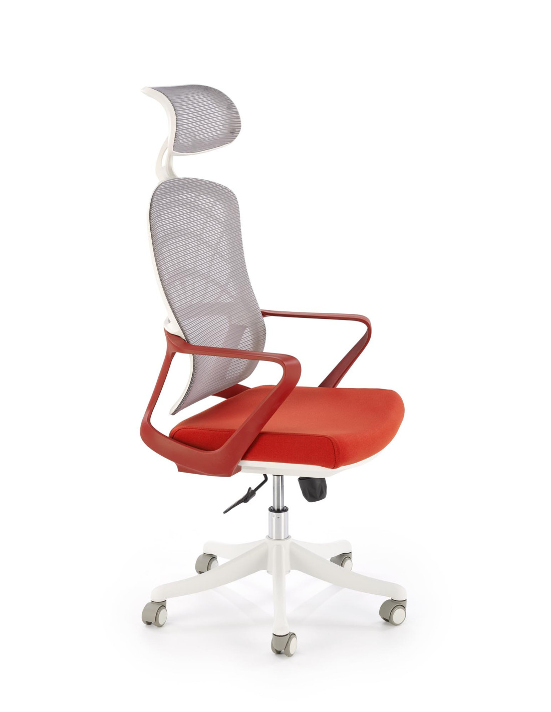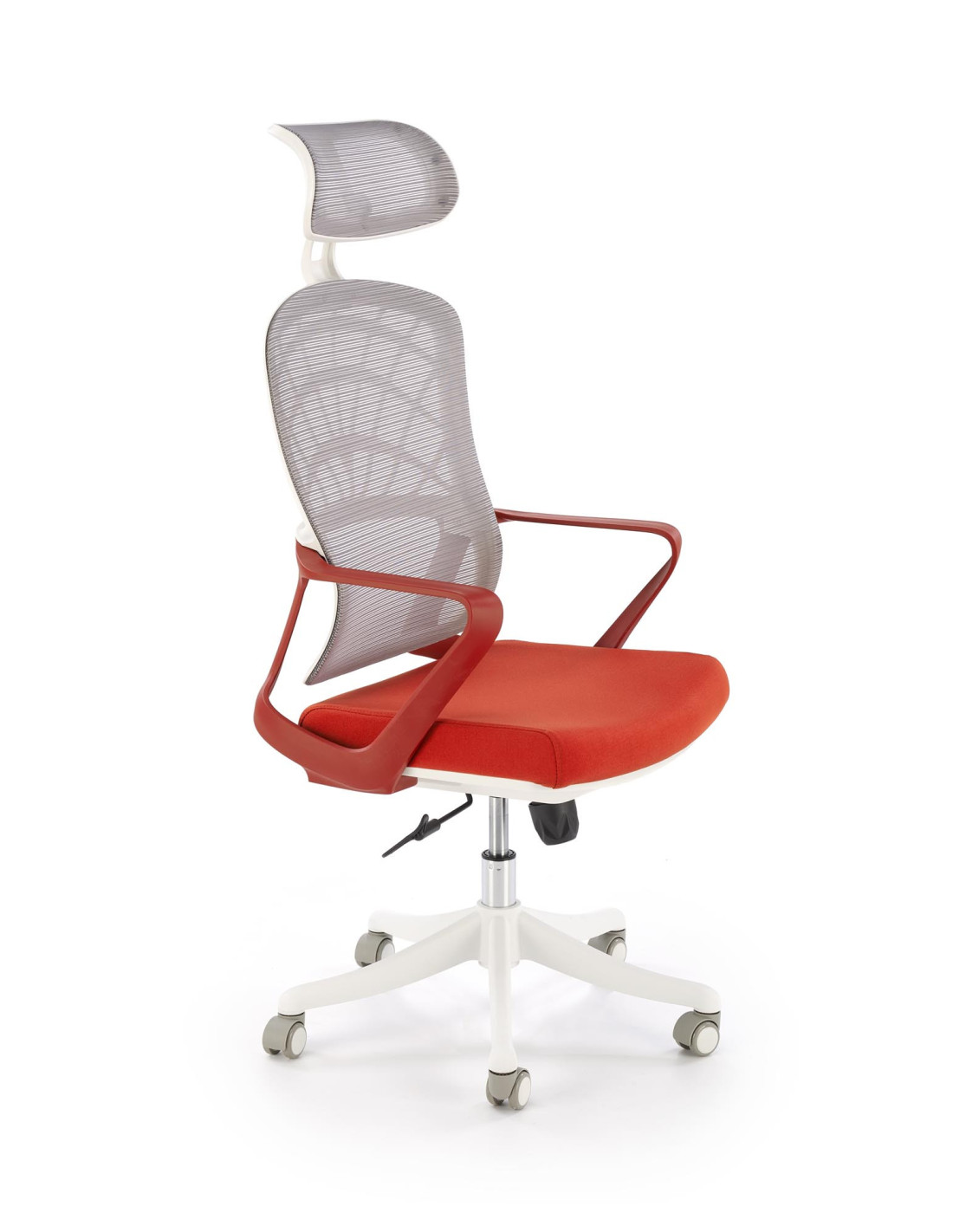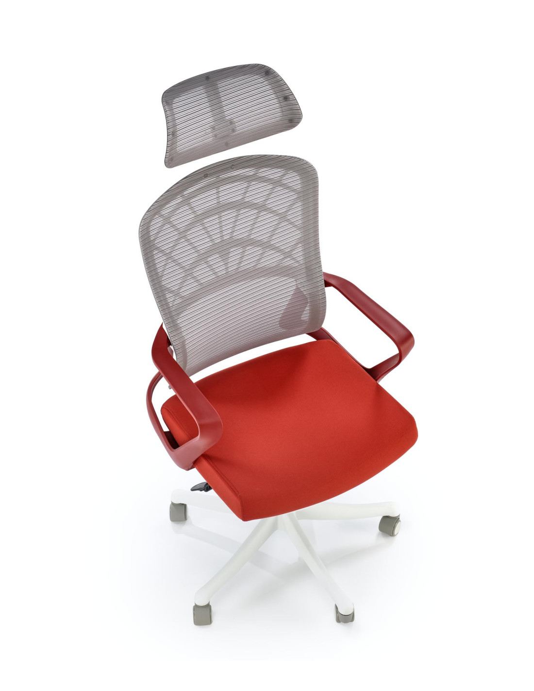 Szukasz mebla, który spełni Twoje oczekiwania? Przedstawiamy fotel gabinetowy VESUVIO 2, który harmonijnie łączy nowoczesny design z maksymalnym komfortem. Ergonomiczny kształt, regulowany zagłówek oraz tapicerowane siedzisko zapewniają wygodę podczas długich godzin pracy. Siatkowe oparcie w jasnym odcieniu szarości zapewnia odpowiednią wentylację, a pięcioramienna podstawa na kółkach sprawia, że fotel jest nie tylko elegancki, ale także mobilny.