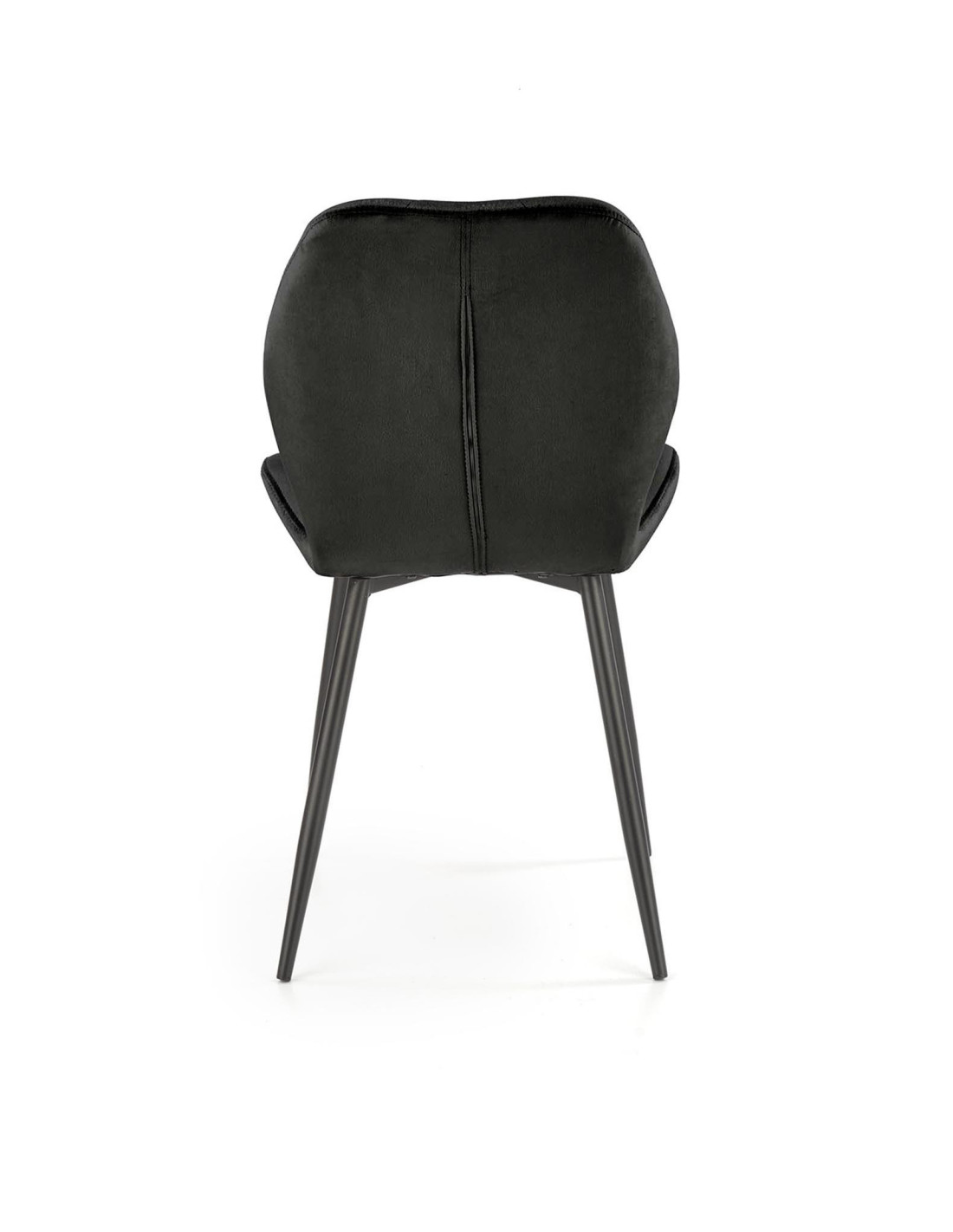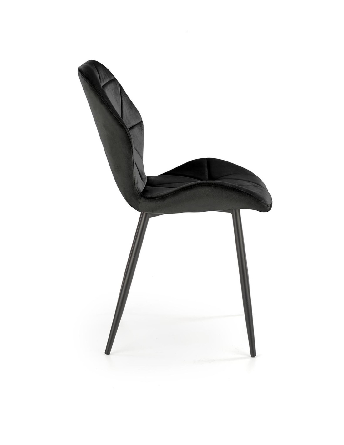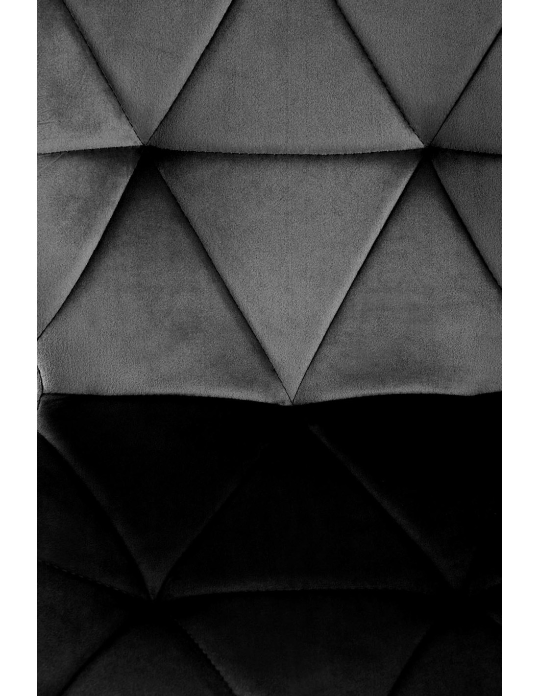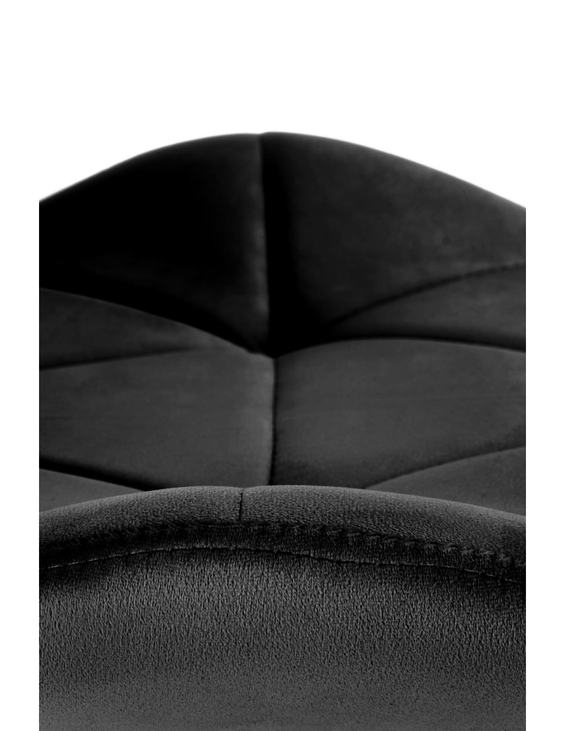 Krzesło K453 charakteryzuje się geometrycznymi przeszyciami oraz luksusową tkaniną velvet w kolorze czarnym.