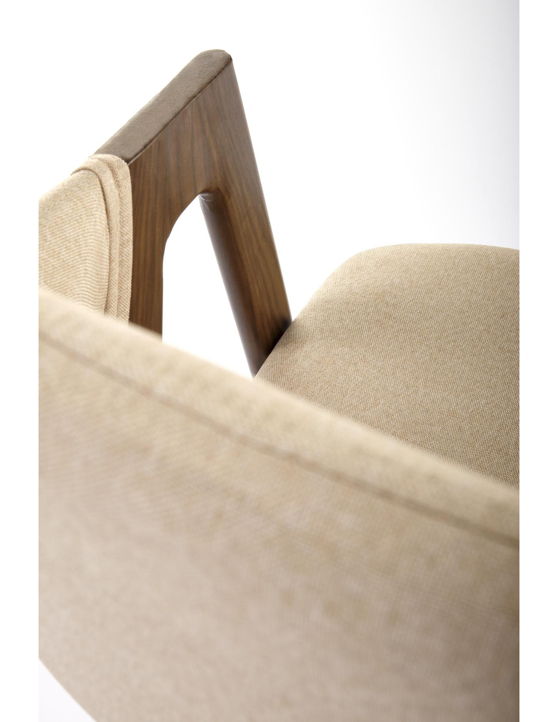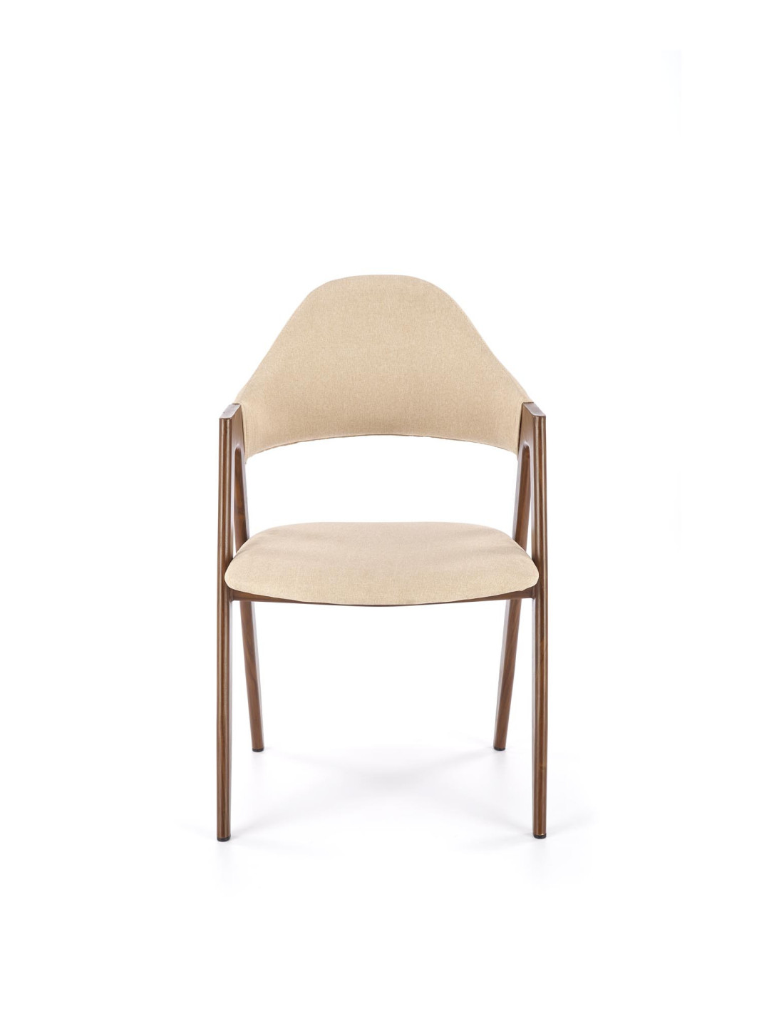 Krzesło K344 wykonane jest z tkaniny oraz stalowej ramy malowanej na brązowo.