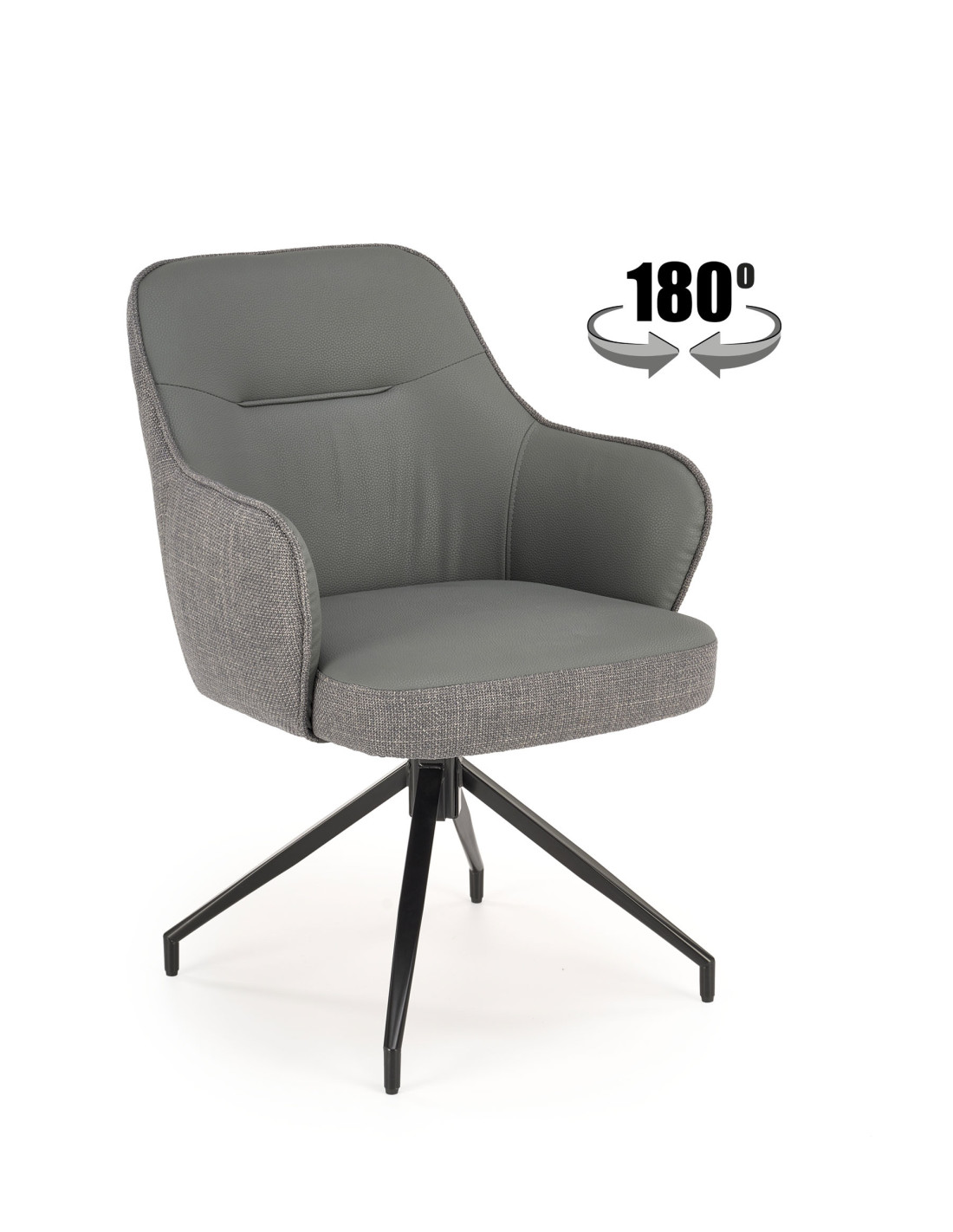 K527 Krzesło Popiel/Czarny | Eco Skóra | Funkcja Obracania 180 Stopni