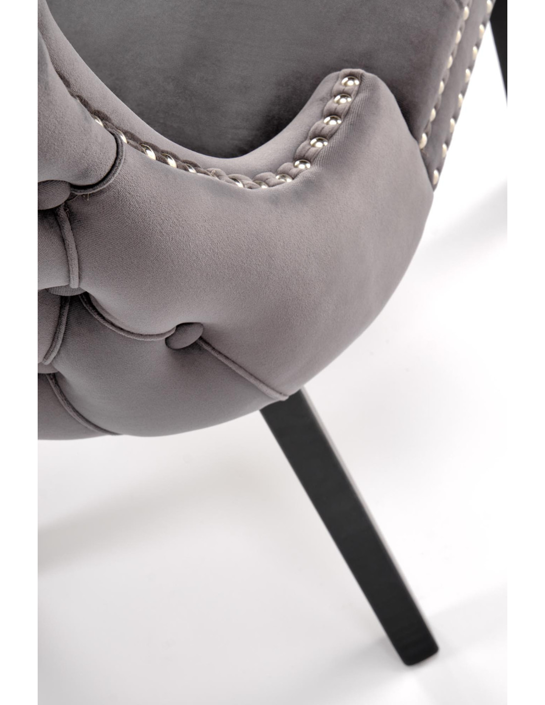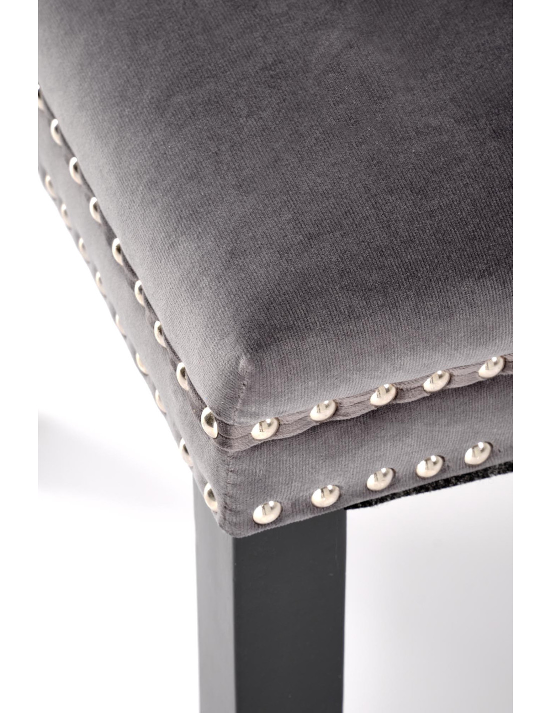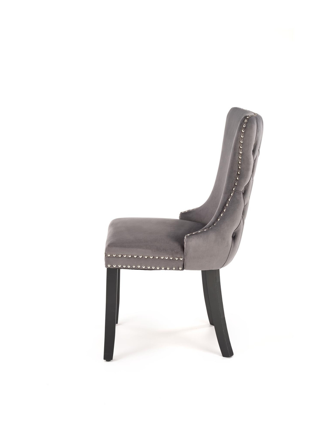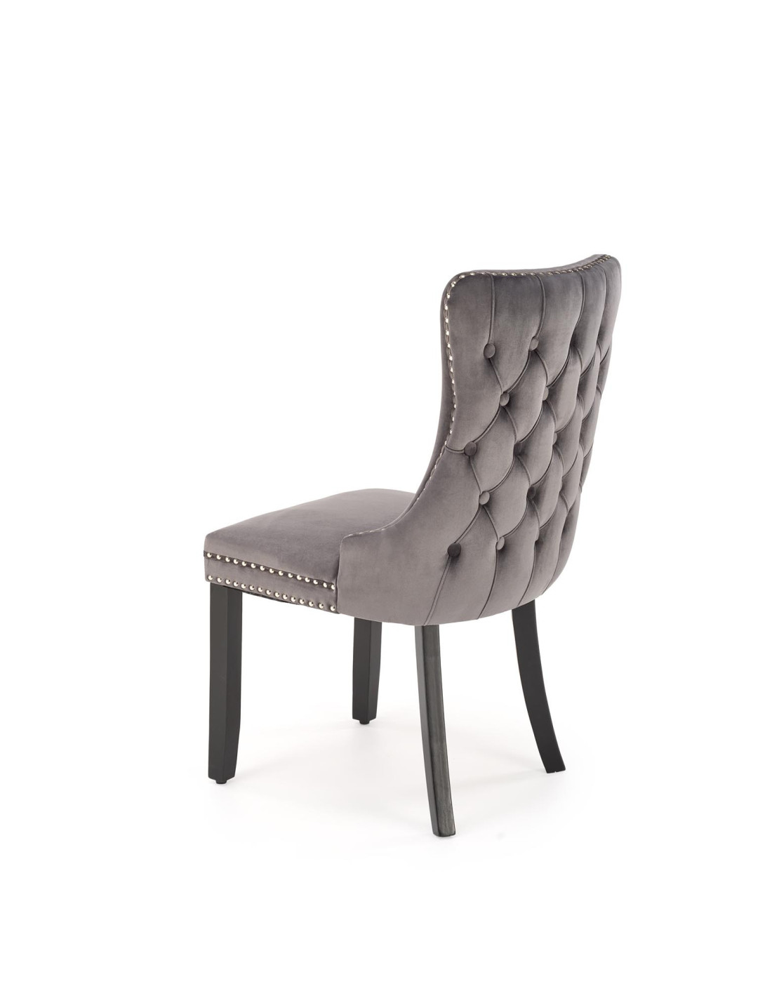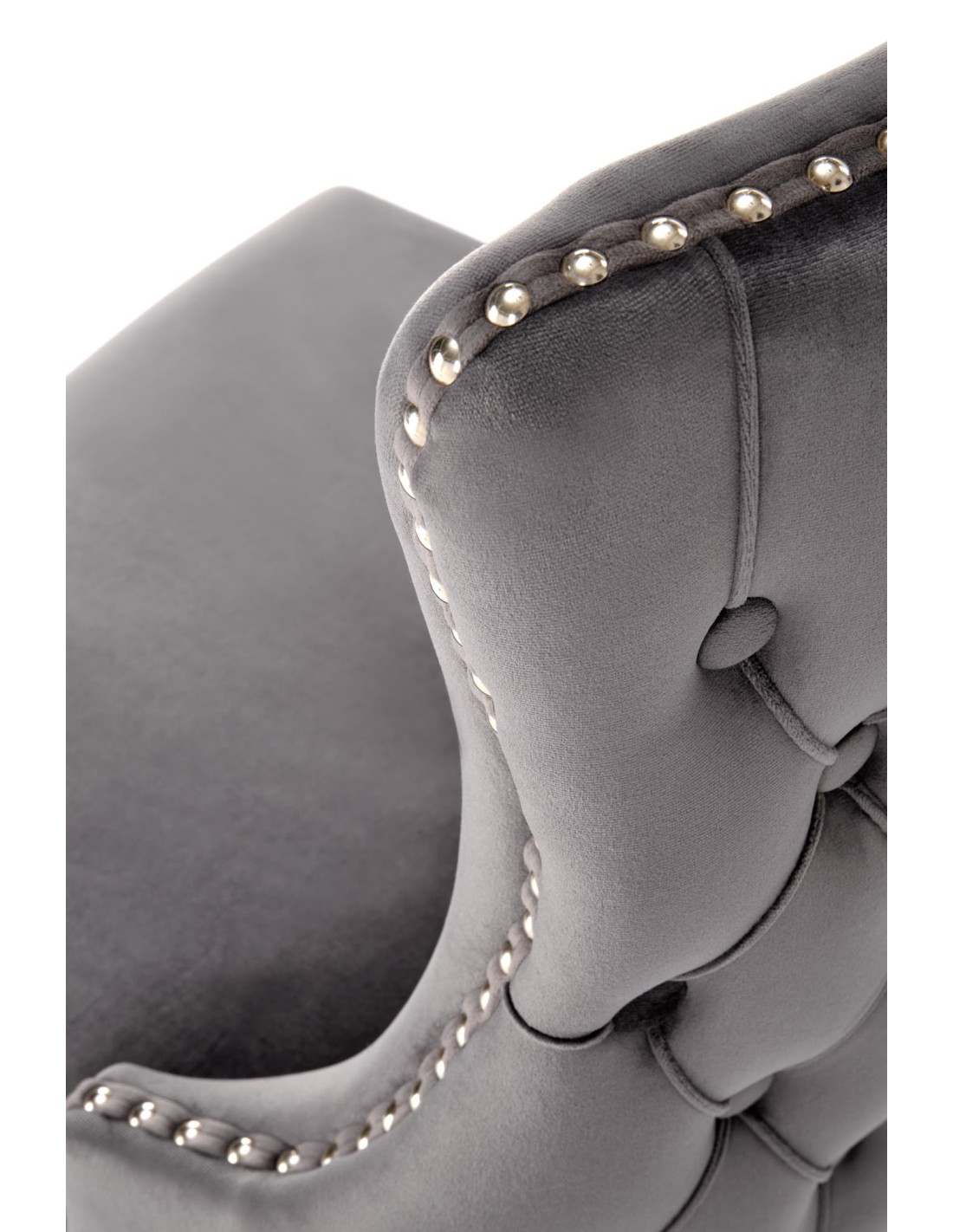 ALDA Krzesło Popielate Pikowane Velvet | Drewno, Złote Ćwieki na Bokach