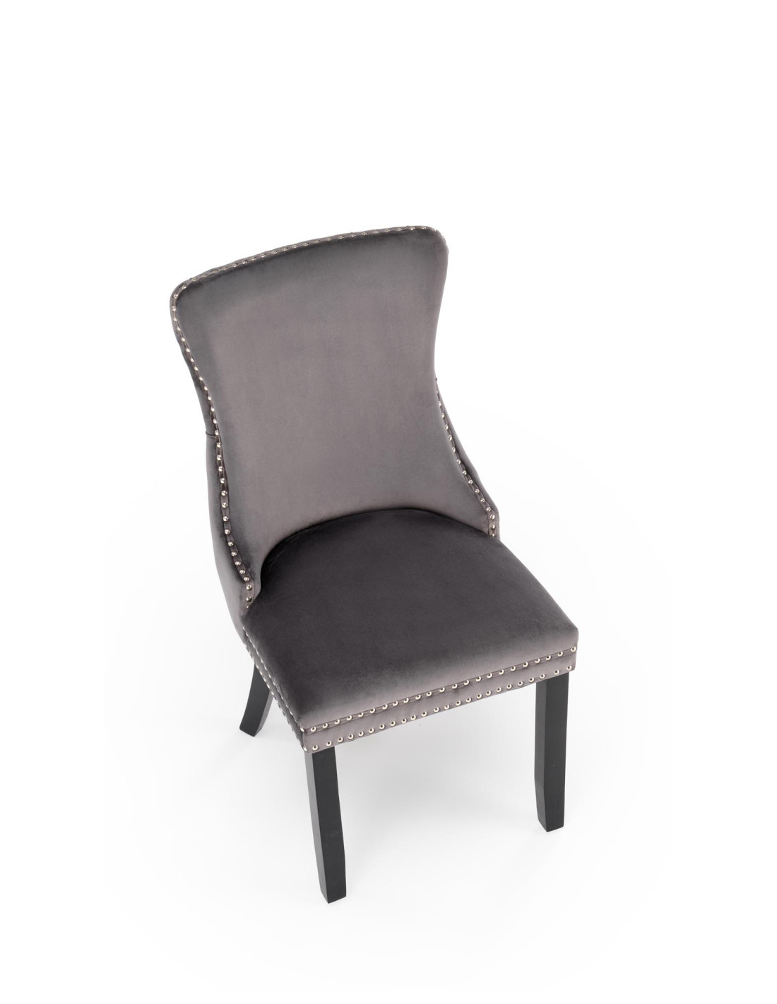 Krzesło ALDA wykonane jest z tkaniny velvet oraz drewna litego w kolorze popielatym.