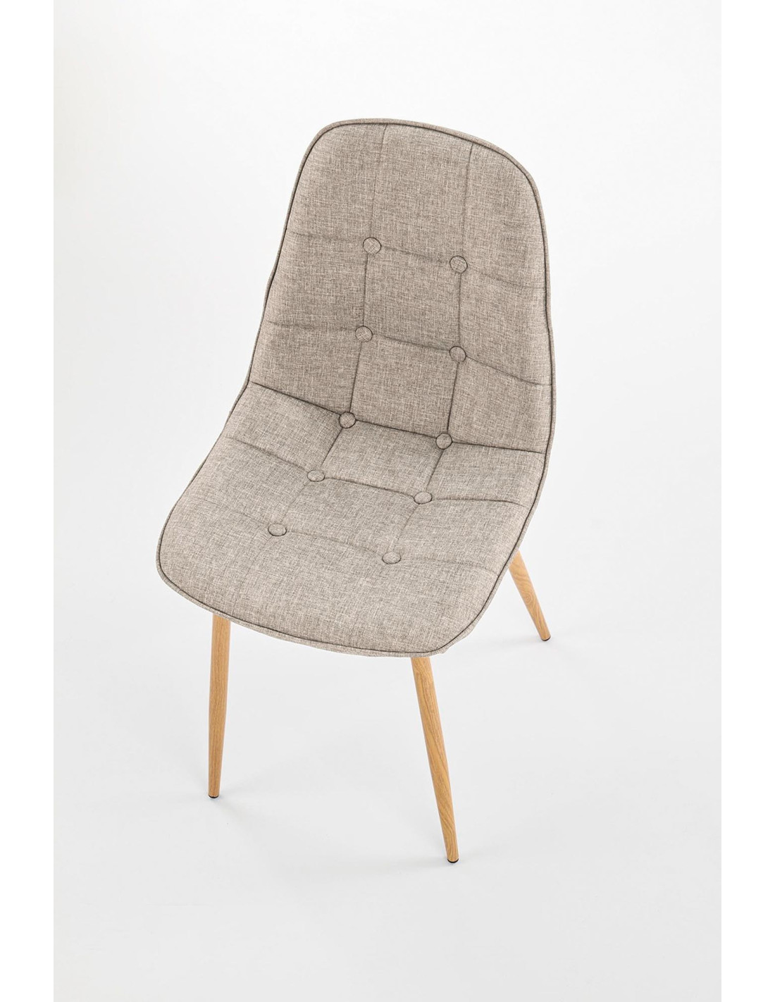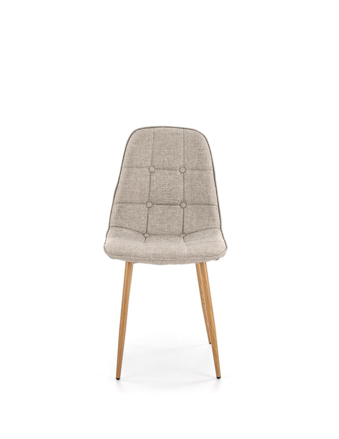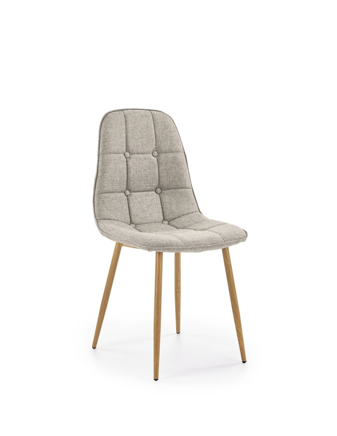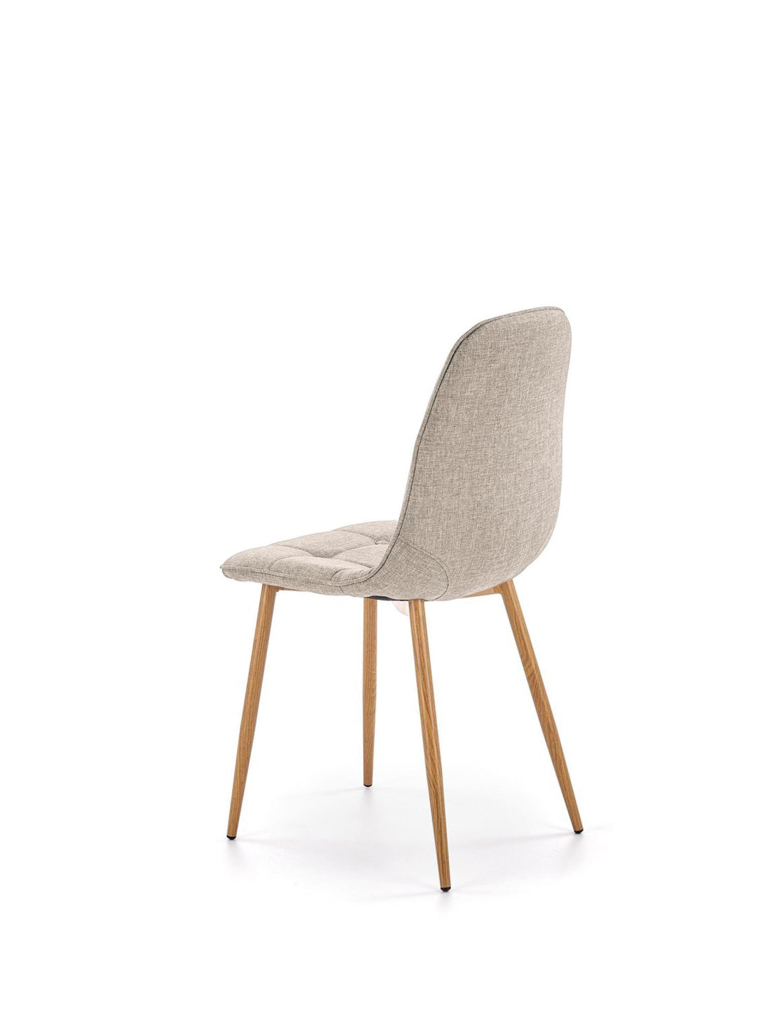 Ciesz się nowym krzesłem tapicerowanym K316, które łączy w sobie nowoczesny design z niezrównanym komfortem. Beżowa tapicerka z pikowaniem oraz subtelne guziki tworzą elegancki wzór kratki, który idealnie wkomponuje się w każdą przestrzeń. Okrągłe rogi, lekko profilowane siedzisko i oparcie zapewniają wygodę, a stalowe nogi w kolorze dębu miodowego dodają stylowego akcentu.