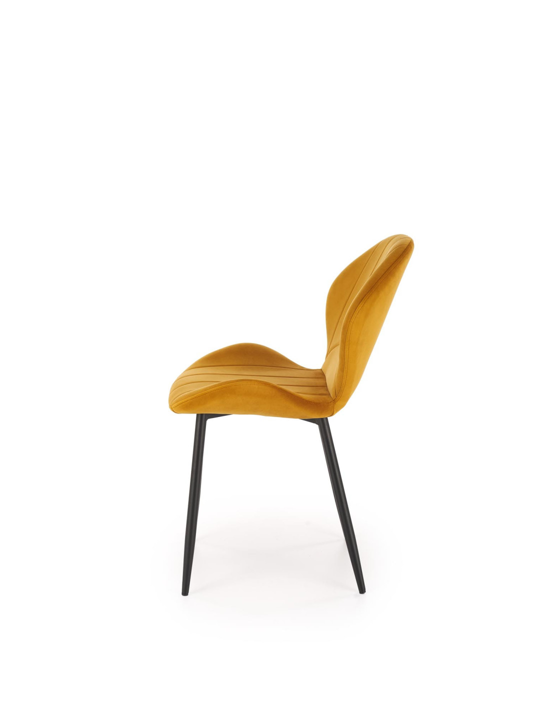 Czarne stalowe nogi lekko rozchylone na zewnątrz dodają całości stabilności oraz nowoczesnego charakteru. Krzesło K538 to doskonały wybór do eleganckich wnętrz, które potrzebują odrobiny koloru i stylu.