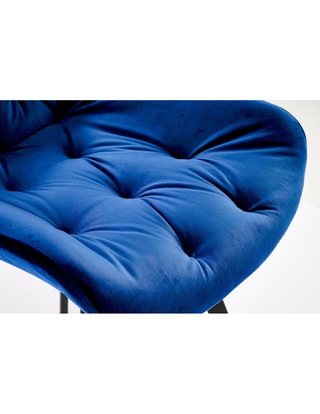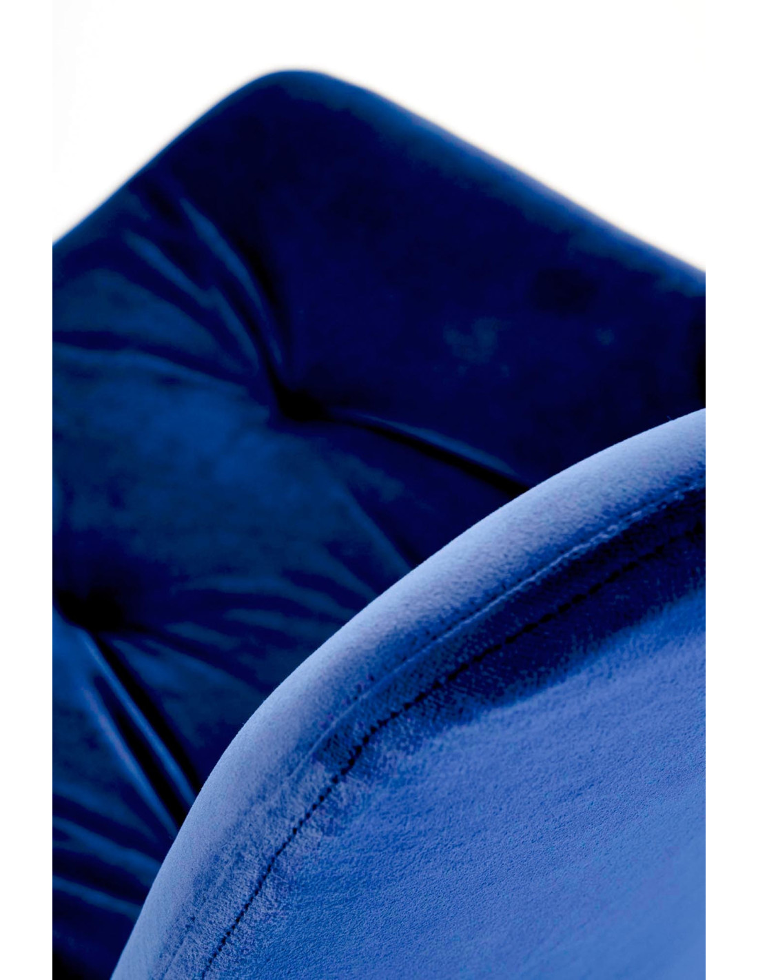 Krzesło wyróżnia się pikowanym oparciem, możliwością obracania oraz nowoczesnym designem w granatowym kolorze.
