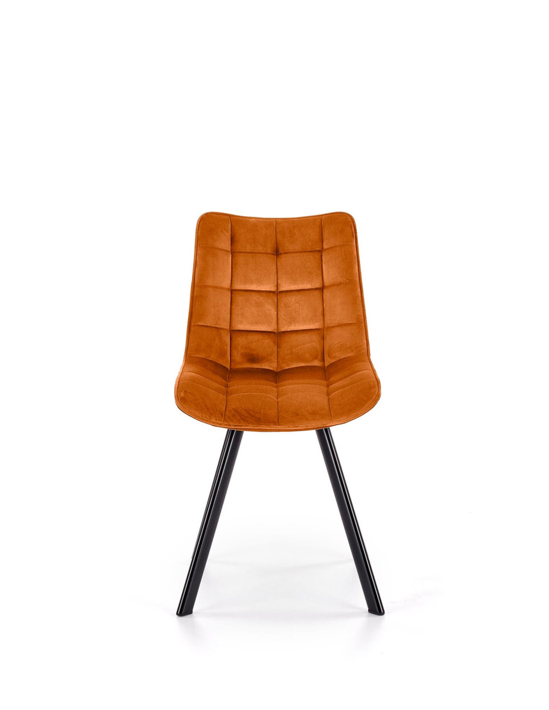 Krzesło K332 wykonane jest z tkaniny velvet oraz stali malowanej proszkowo, co zapewnia estetyczny wygląd i funkcjonalność.