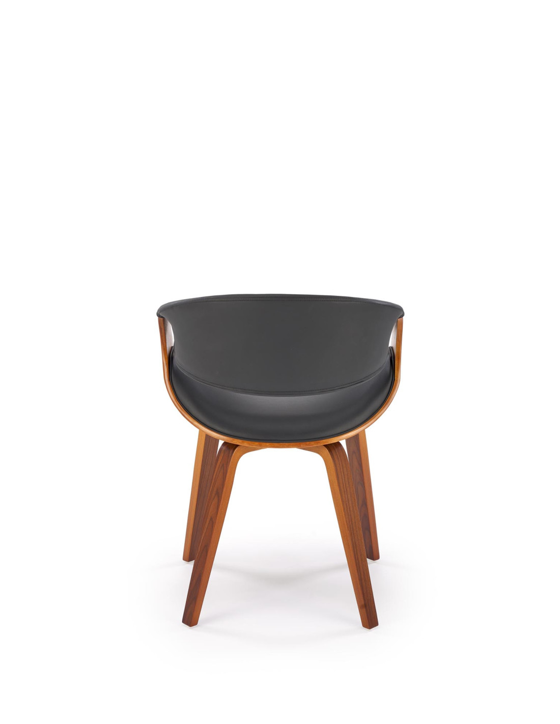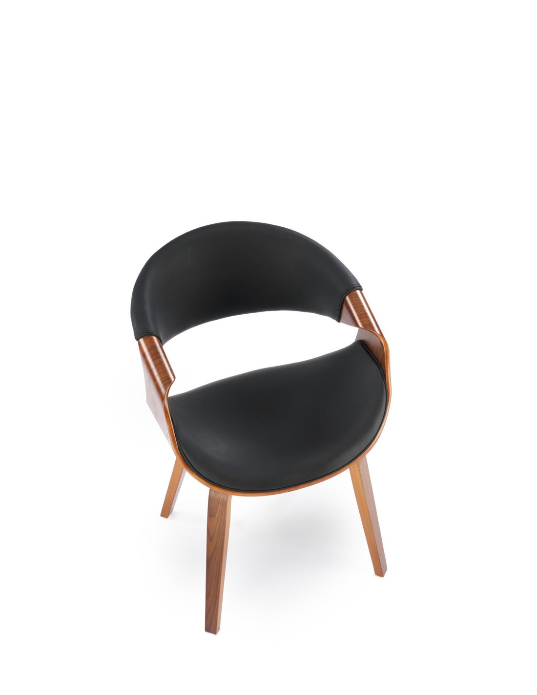 Krzesło K544 wykonane jest z ekologicznej skóry oraz giętej sklejki w kolorze orzechowym.