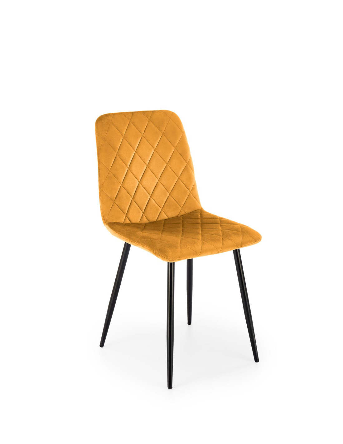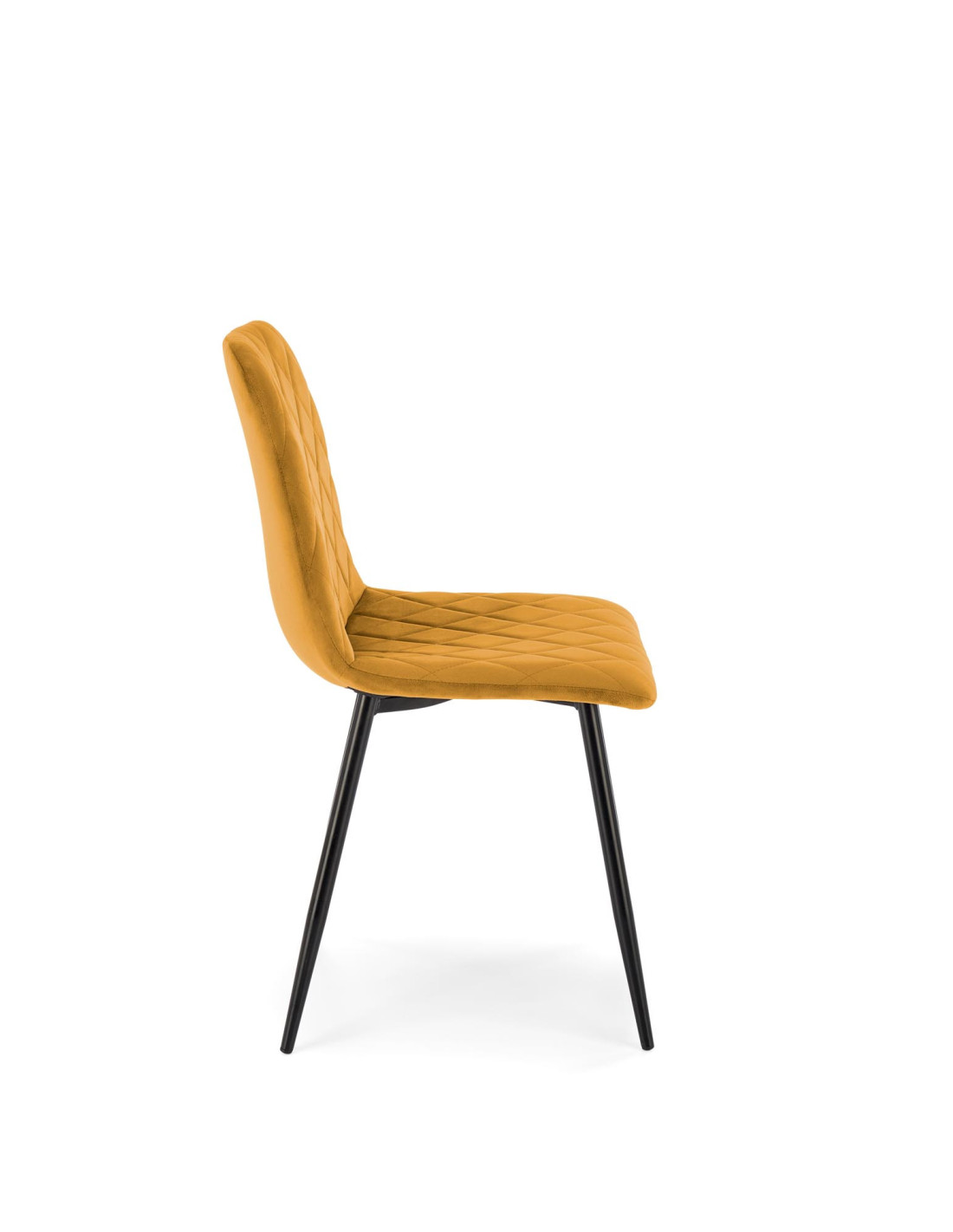 Ożyw swoją przestrzeń z krzesłem K525, które łączy elegancję i nowoczesność. Wykonane z aksamitnego materiału velvet, krzesło w musztardowym kolorze przyciąga wzrok i wprowadza do wnętrza niepowtarzalny klimat. Jego pikowane siedzisko i oparcie w kształcie rombów nie tylko zachwycają, ale także zapewniają niezwykły komfort. Dzięki stalowym czarnym nogom, krzesło jest stabilne i dodaje charakteru każdemu pomieszczeniu.