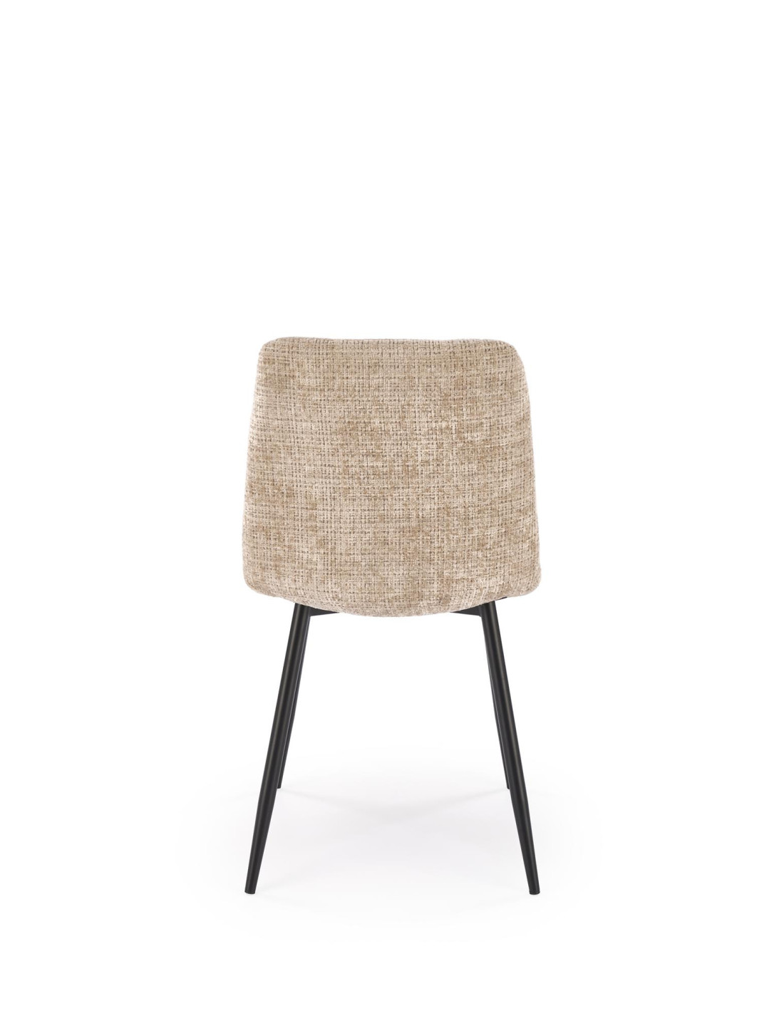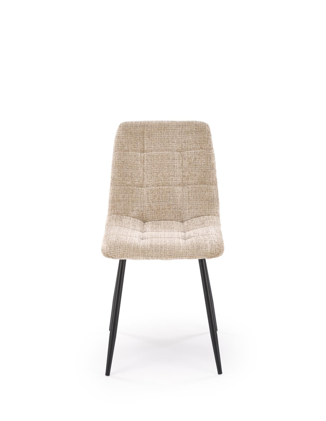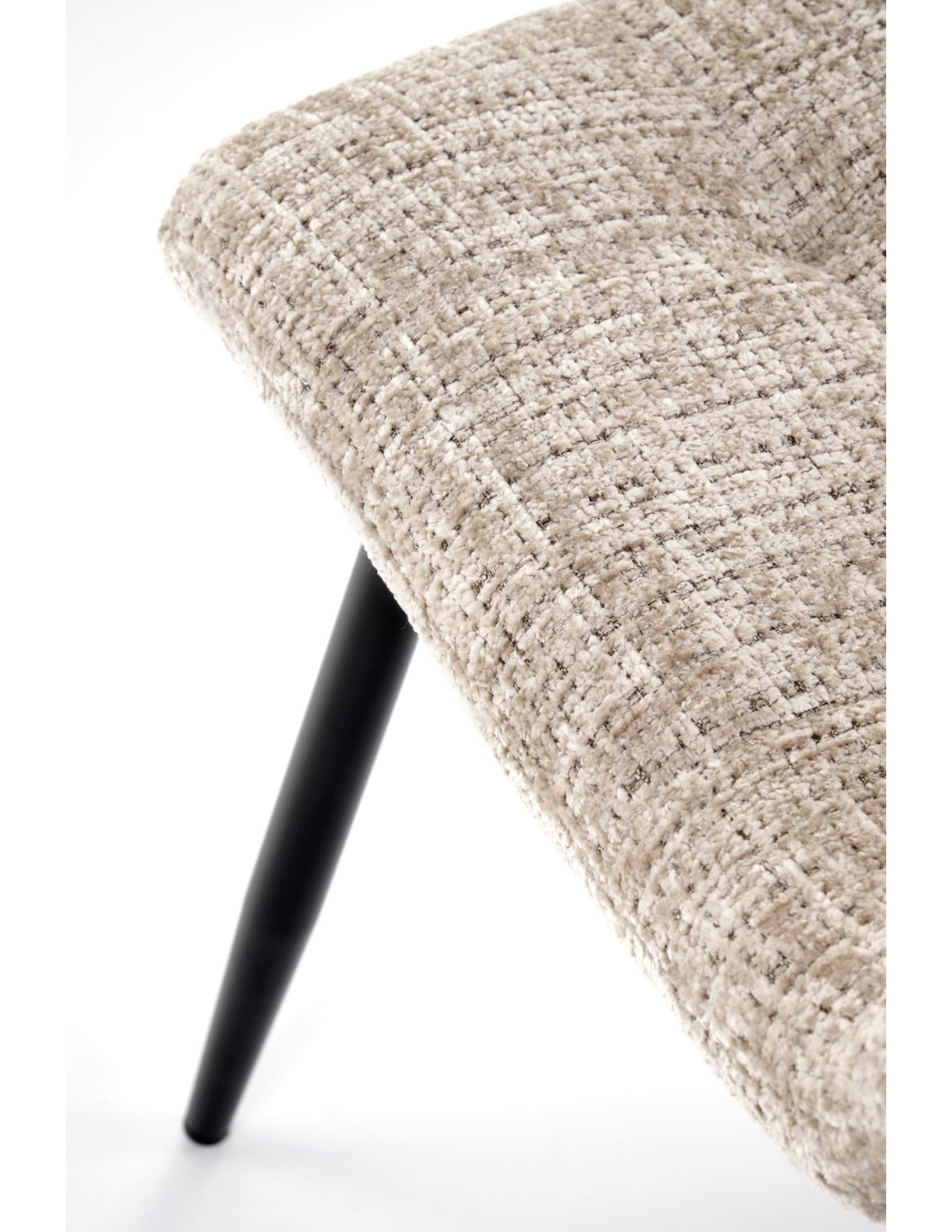 Poznaj krzesło K547, które łączy minimalistyczny styl z wysokim komfortem. Beżowe, pikowane siedzisko i oparcie wykonane z materiału o teksturowanej powierzchni zachwycą Cię swoją elegancją. Smukłe, czarne nogi dodają nowoczesności i stabilności, sprawiając, że krzesło doskonale wpisuje się w różnorodne aranżacje wnętrz.
