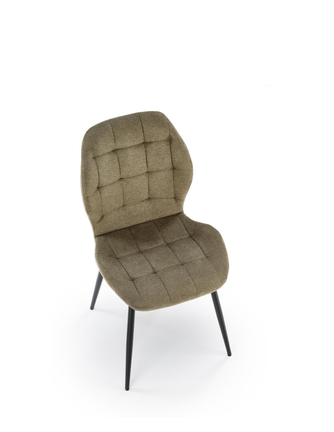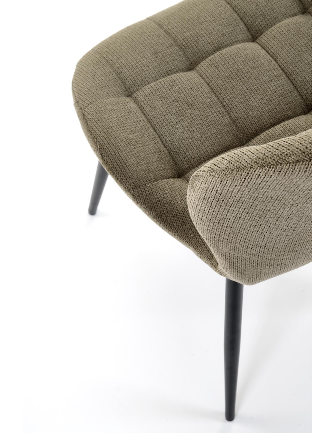 Dodaj odrobinę luksusu do swojej przestrzeni dzięki krzesłu oliwkowemu K548. To wyjątkowe krzesło, wykonane z pikowanej tkaniny Vardo, łączy w sobie nowoczesny design z funkcjonalnością. Jego zaokrąglone kształty i czarne stalowe nogi sprawiają, że prezentuje się zjawiskowo, a jednocześnie jest wygodne w codziennym użytkowaniu.