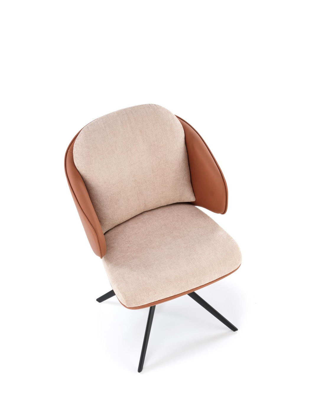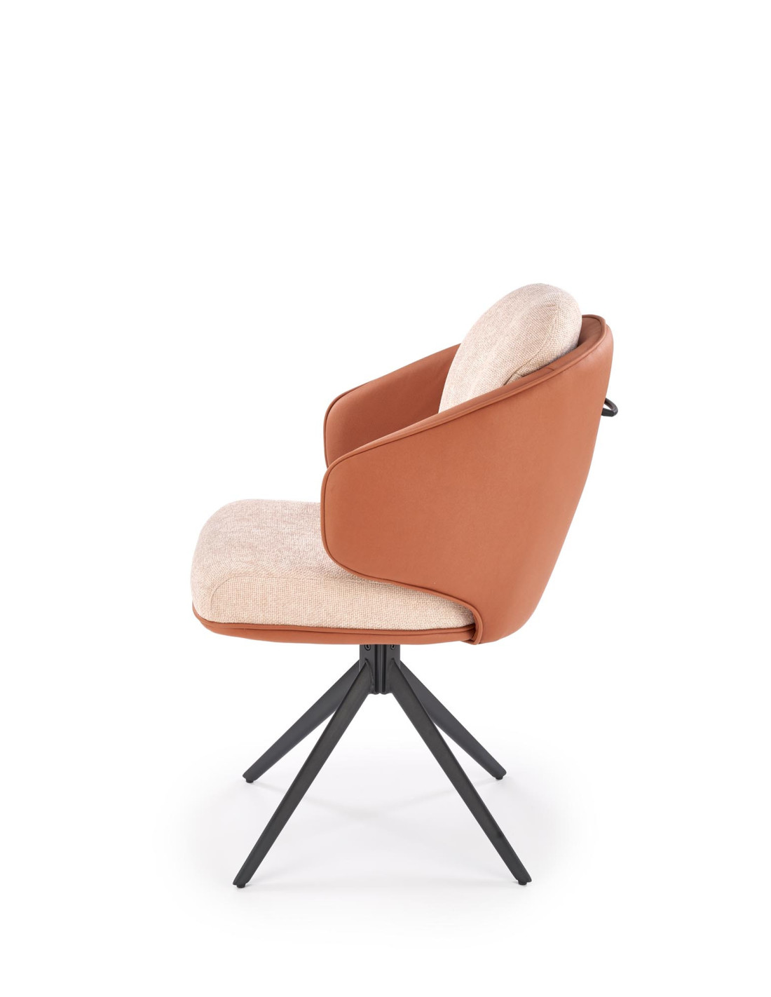 K554 Krzesło Obracane 180° Kubełkowe Brązowo/Beżowe | Tkanina/Eco Skóra