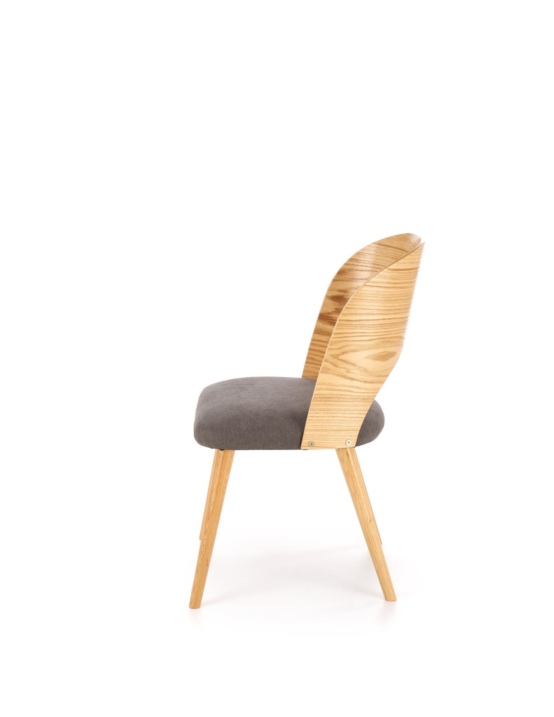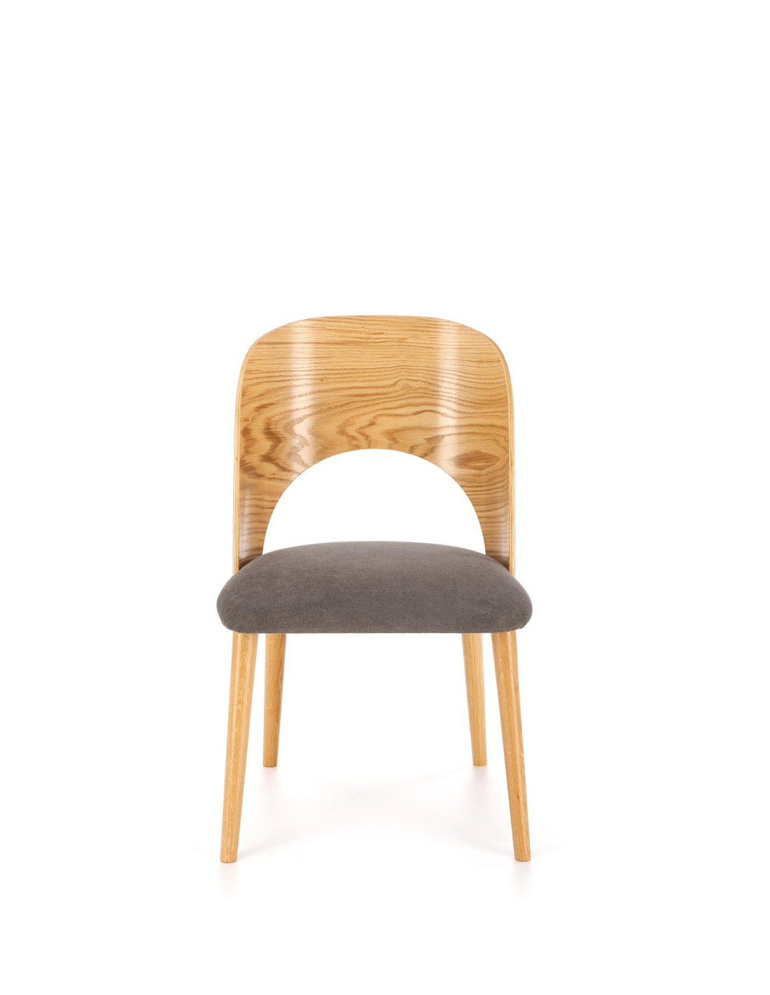 Ciesz się nowym krzesłem CADIZ, które harmonijnie łączy skandynawski styl z wyrafinowanym designem. Jego kubełkowe oparcie wykonane ze sklejki giętej w naturalnym odcieniu drewna, z widocznym usłojeniem, nadaje mu niepowtarzalny charakter. Siedzisko tapicerowane ciemnoszarym materiałem zapewnia komfort na każdym etapie użytkowania, a proste, drewniane nogi dopełniają całości, tworząc elegancką całość.