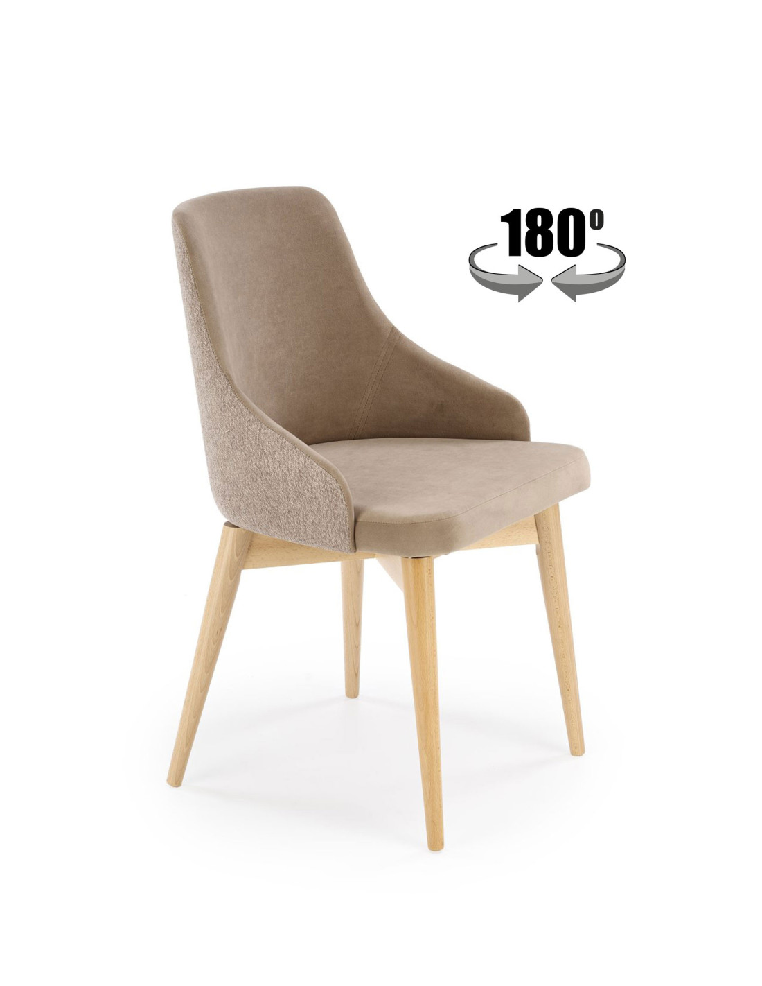 MALAGA Krzesło Beżowe, Obracane 180°, Drewniane Nogi | Wygodne i Stylowe