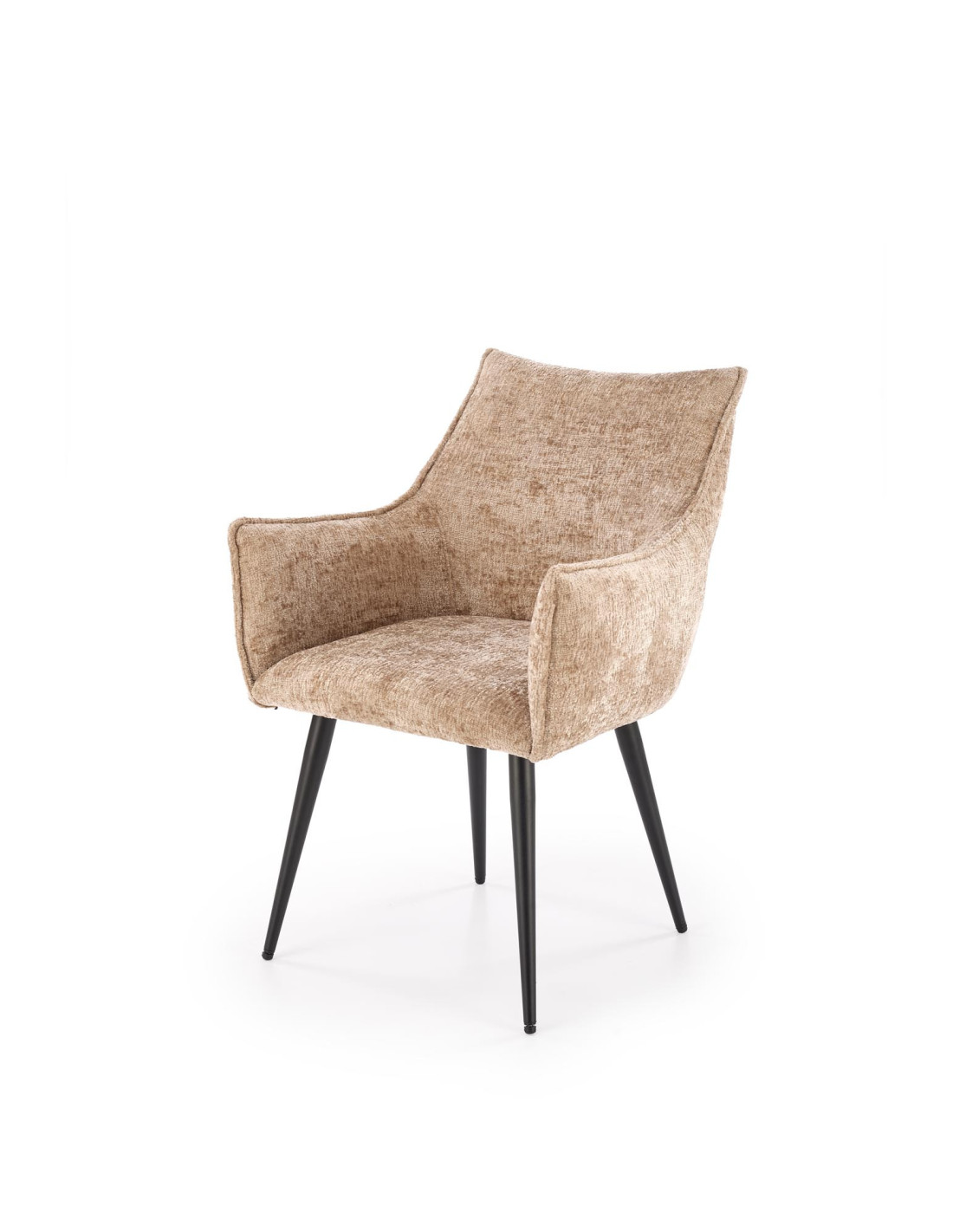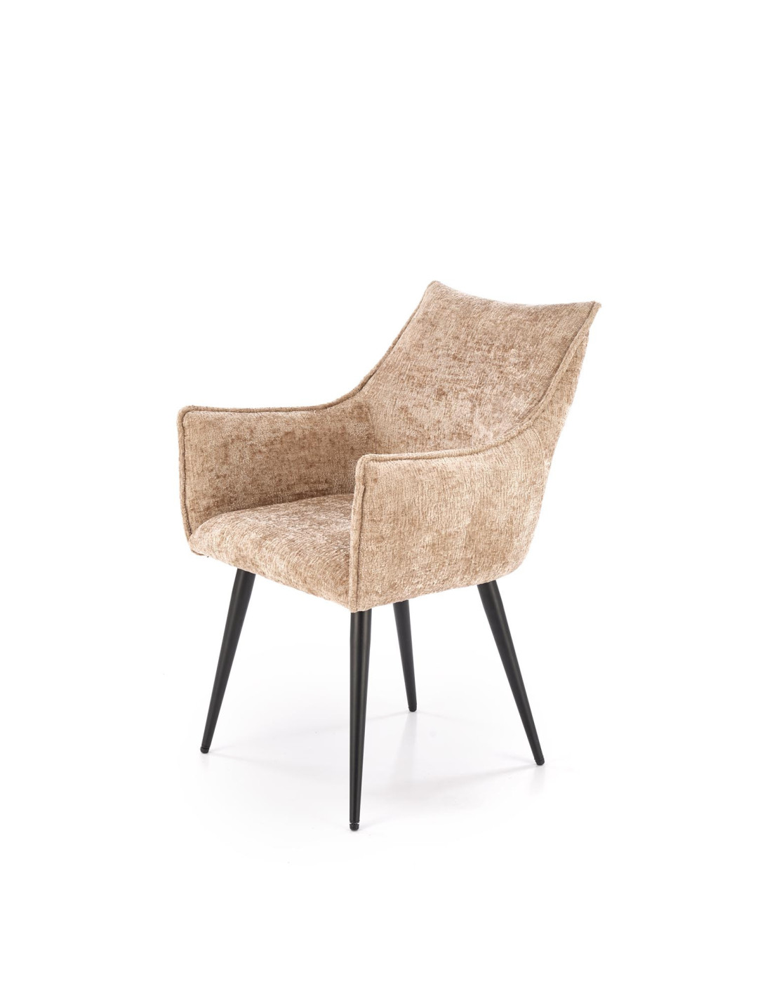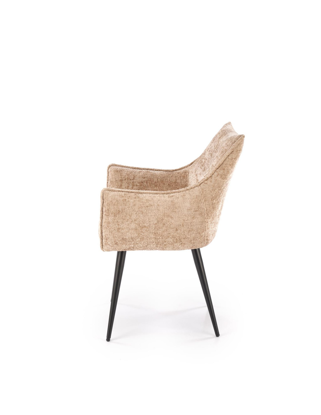 Stwórz doskonałe wnętrze z krzesłem K559, które łączy w sobie nowoczesny design oraz komfort użytkowania. Jego elegancka, beżowa tapicerka o delikatnej fakturze to nie tylko estetyka, ale i przyjemność w użytkowaniu. Smukłe, czarne nogi ze stali malowanej proszkowo dodają lekkości i nowoczesnego charakteru, a lekko wygięte podłokietniki oraz zaokrąglone oparcie zapewniają wygodę podczas długich chwil spędzonych przy stole.
