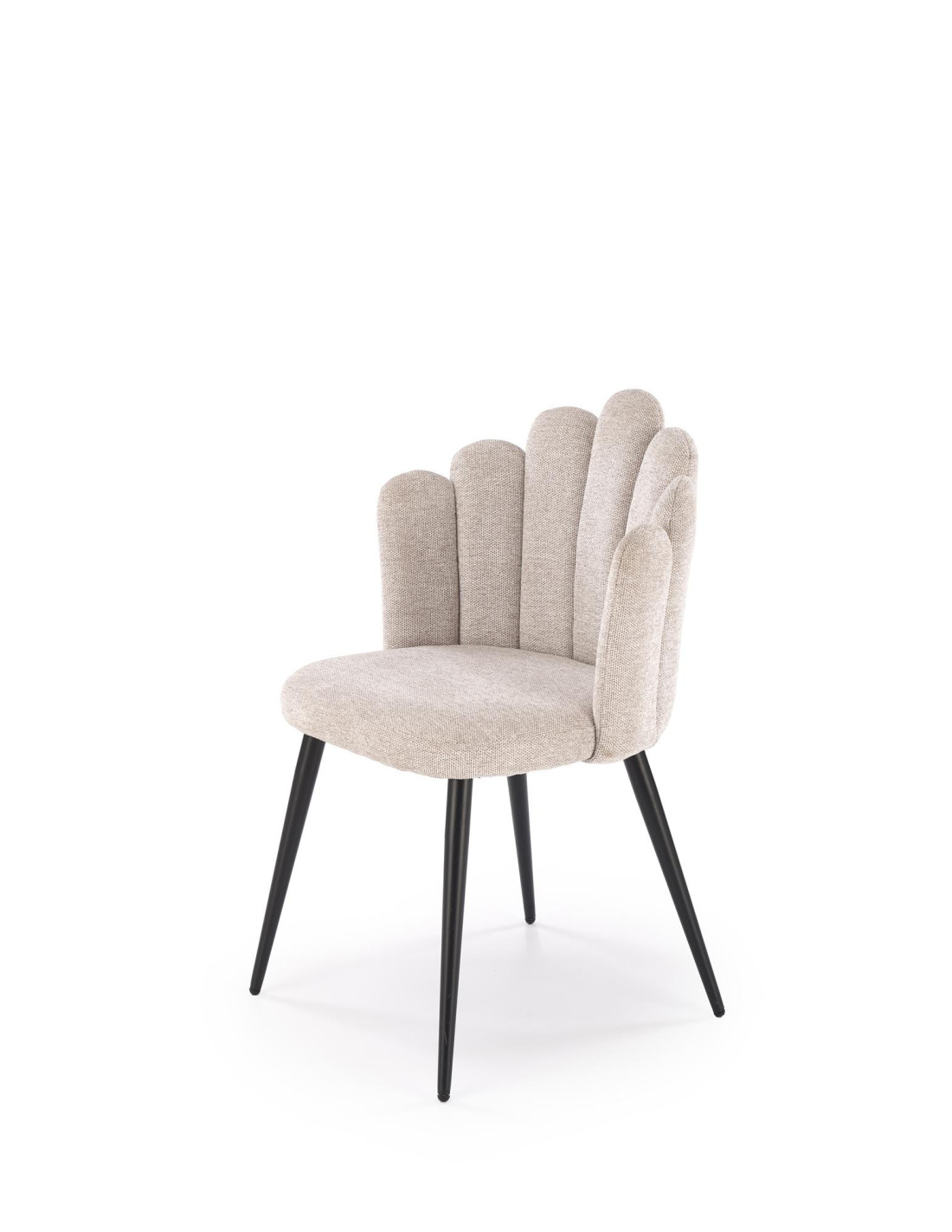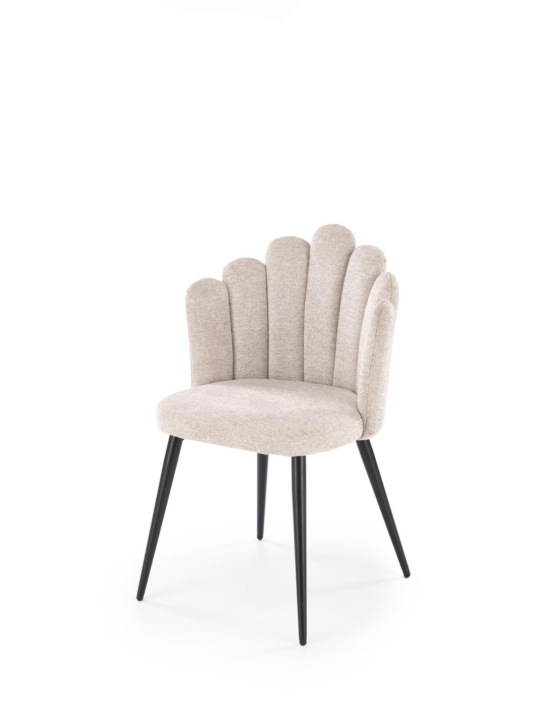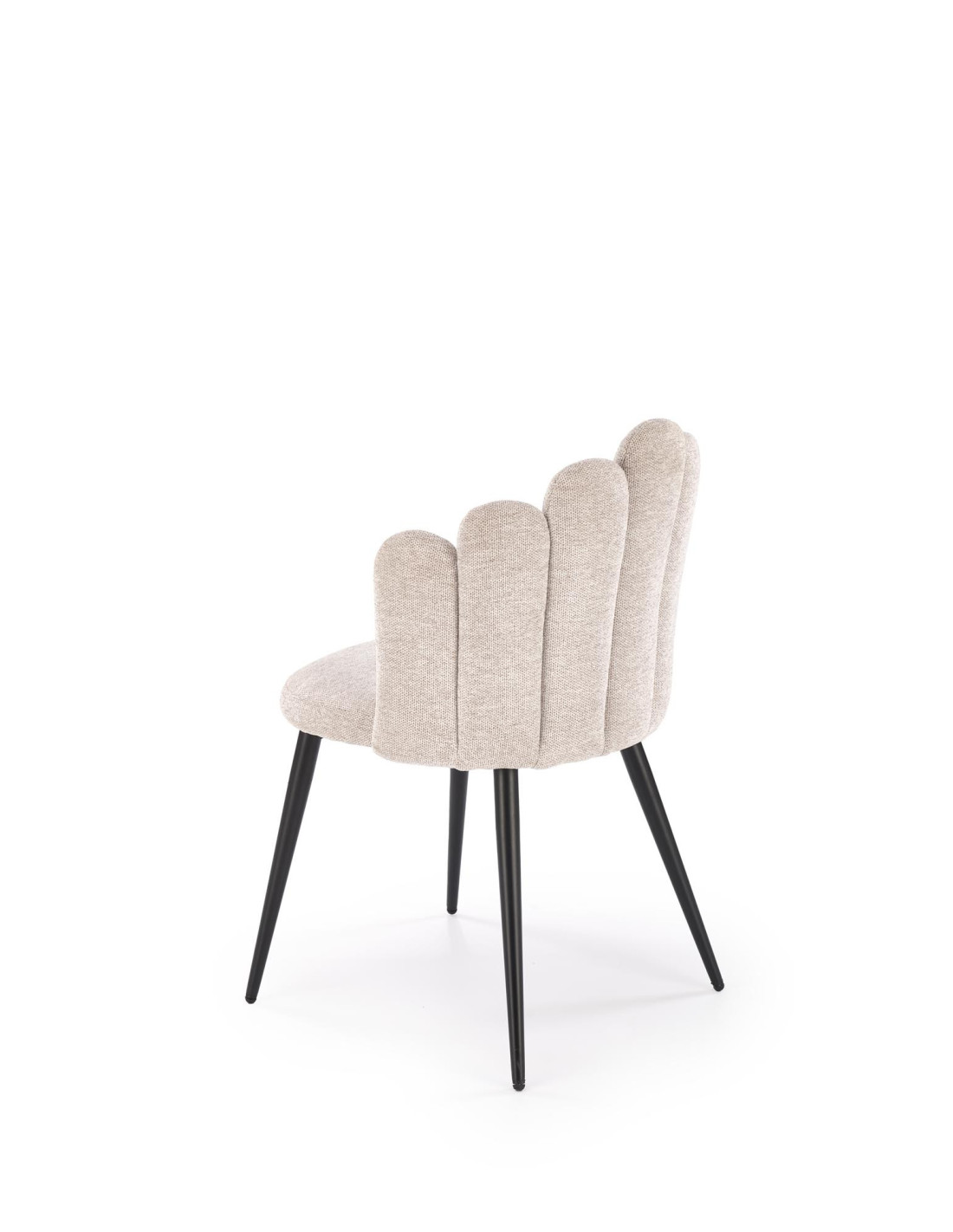 Poznaj krzesło K552, które zachwyca swoim nowoczesnym designem i eleganckim wykończeniem. Wykonane z tkaniny Diosa, krzesło posiada kubełkowe oparcie z segmentami przypominającymi muszlę, co dodaje mu unikalnego charakteru. Dzięki czterem smukłym nogom w kolorze czarnym, krzesło prezentuje się lekko i nowocześnie, idealnie wkomponowując się w aranżacje w stylu glamour oraz nowoczesnym.