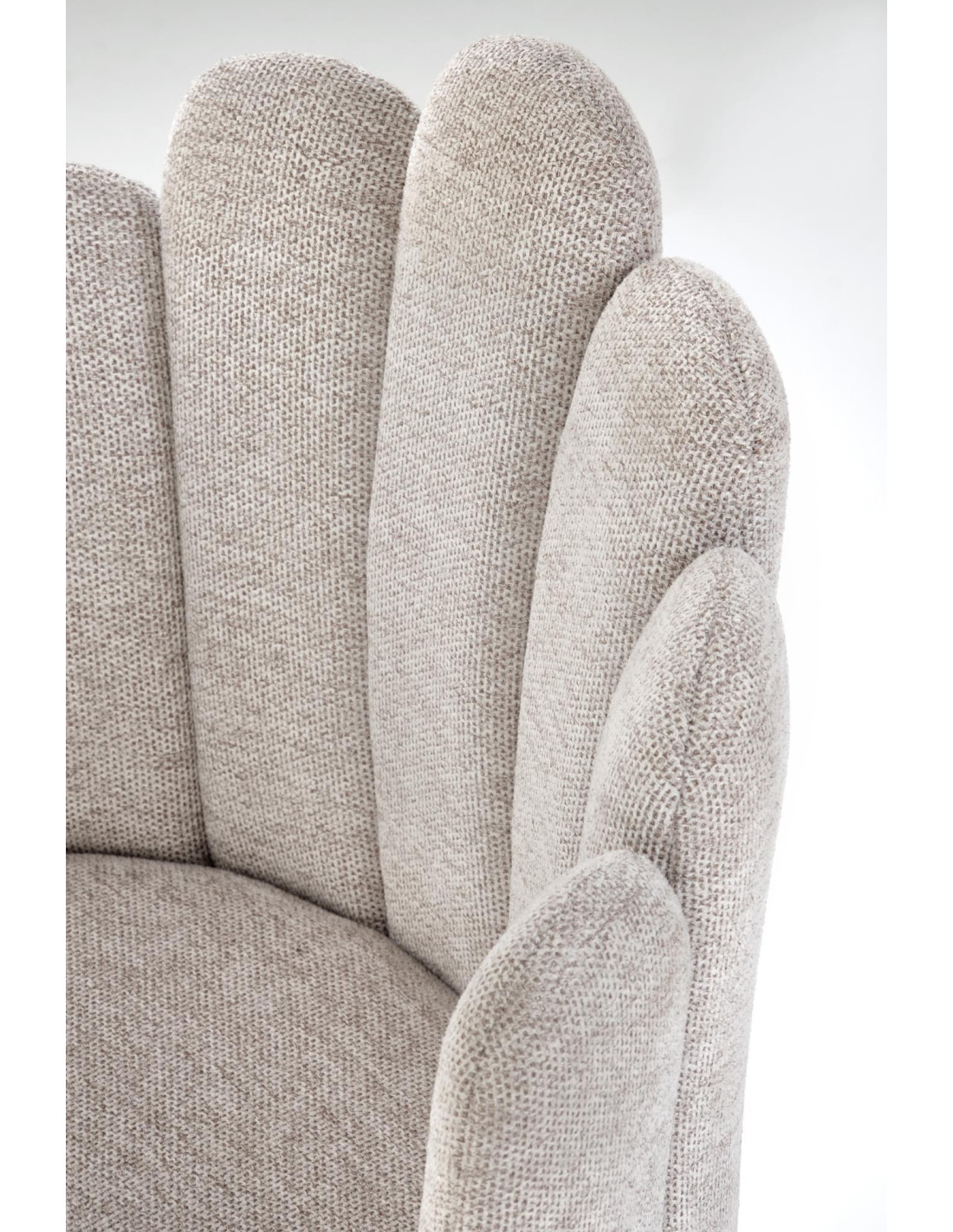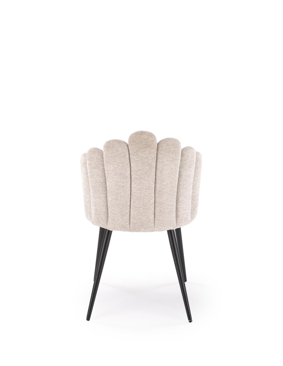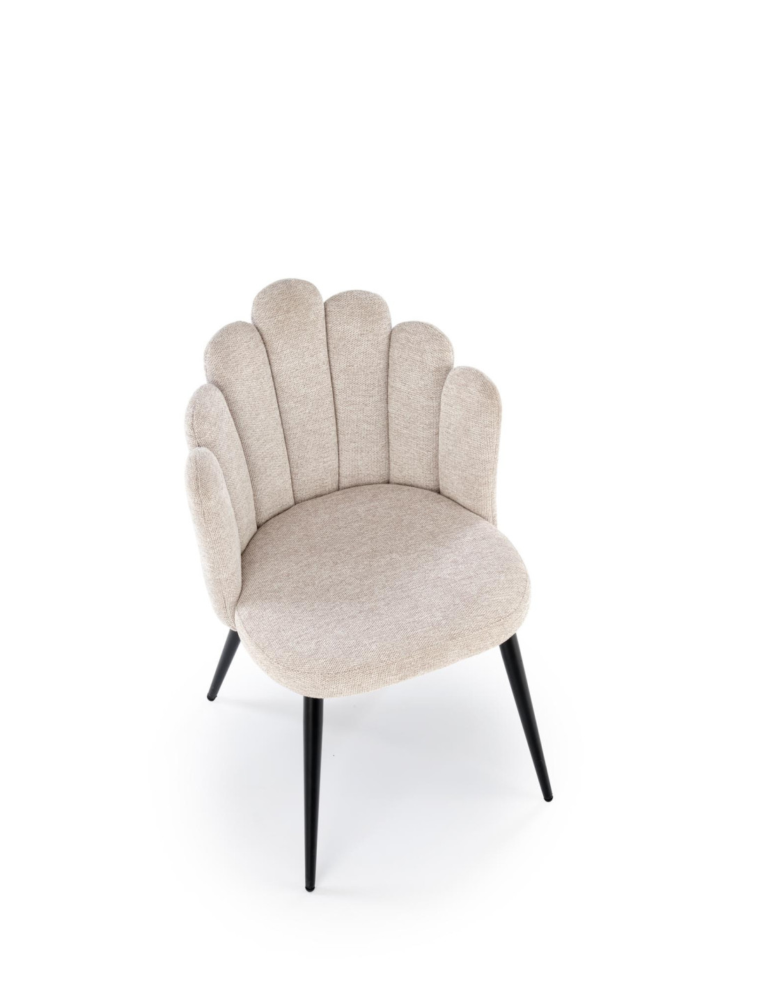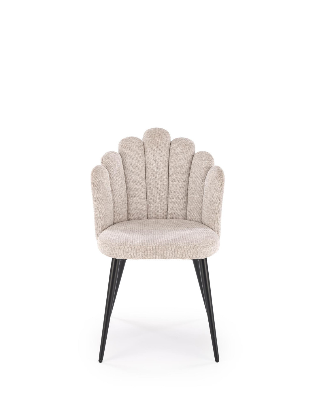 Poznaj krzesło K552, które zachwyca swoim nowoczesnym designem i eleganckim wykończeniem. Wykonane z tkaniny Diosa, krzesło posiada kubełkowe oparcie z segmentami przypominającymi muszlę, co dodaje mu unikalnego charakteru. Dzięki czterem smukłym nogom w kolorze czarnym, krzesło prezentuje się lekko i nowocześnie, idealnie wkomponowując się w aranżacje w stylu glamour oraz nowoczesnym.