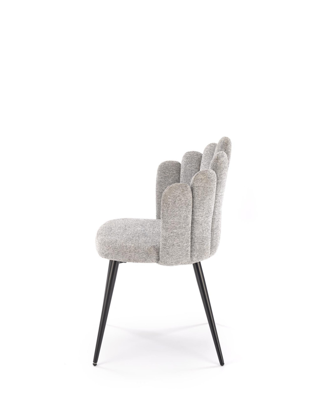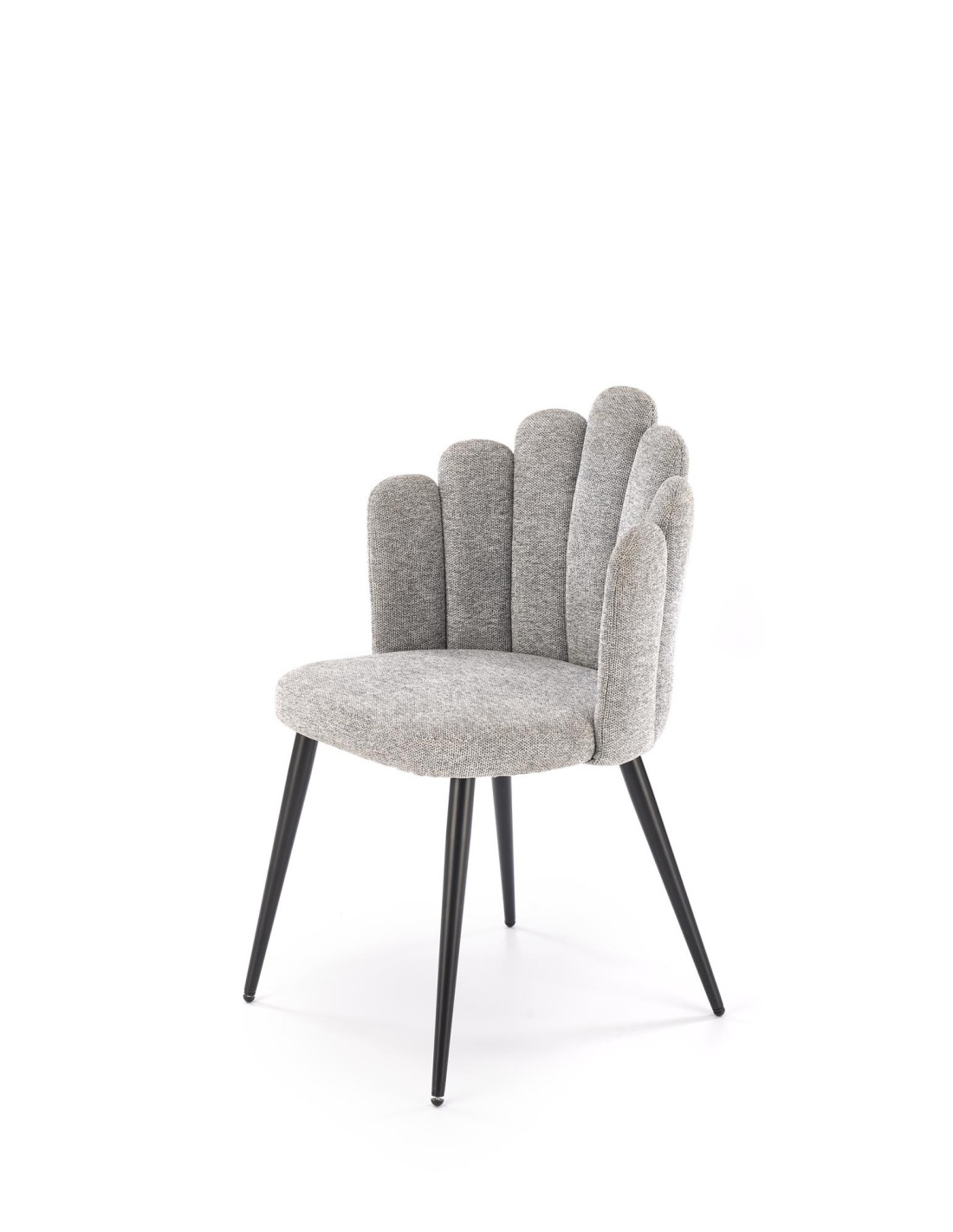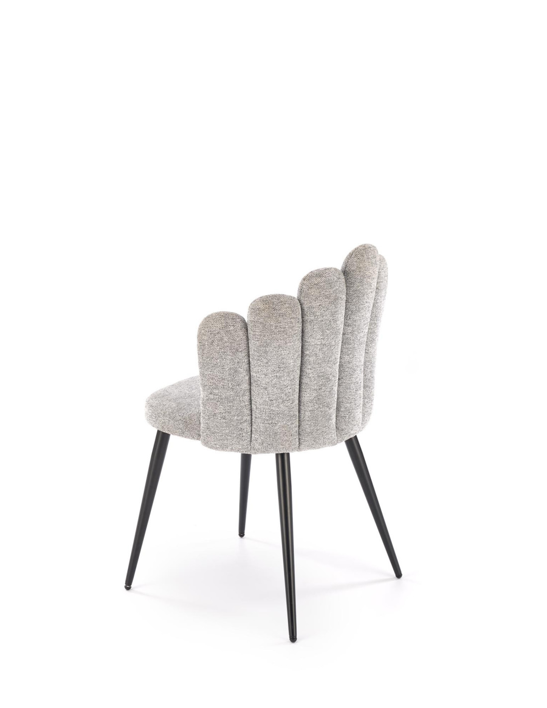 Poznaj krzesło K552, które łączy w sobie nowoczesny design z praktycznością. Wykonane z tkaniny DIOSA w pięknym popielatym kolorze, krzesło zachwyca kubełkowym oparciem, podzielonym na segmenty, które przypominają kształtem muszlę. Jego czarne, smukłe nogi lekko rozszerzają się ku dołowi, co nadaje mu elegancji oraz stabilności.