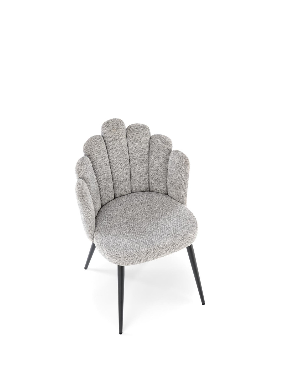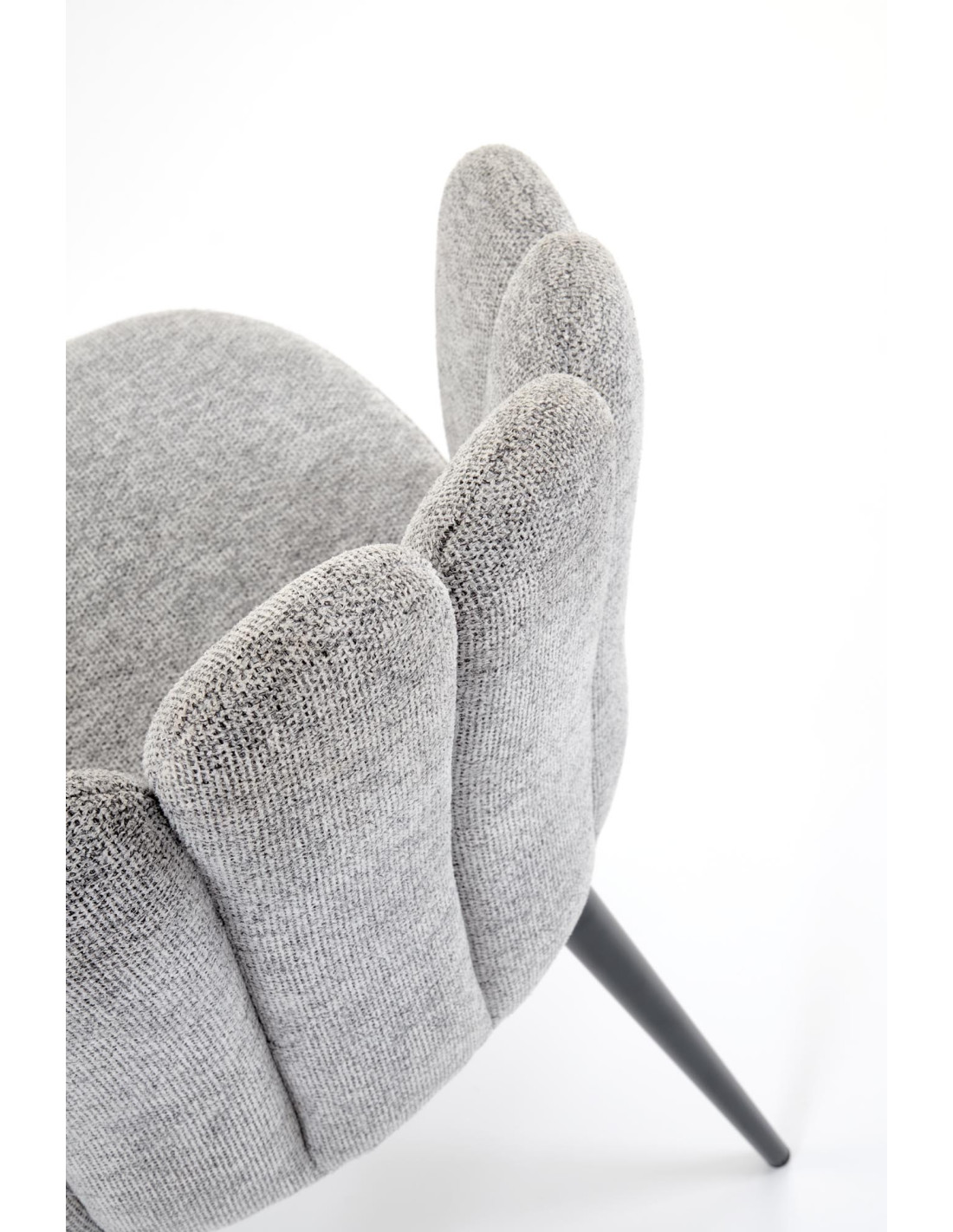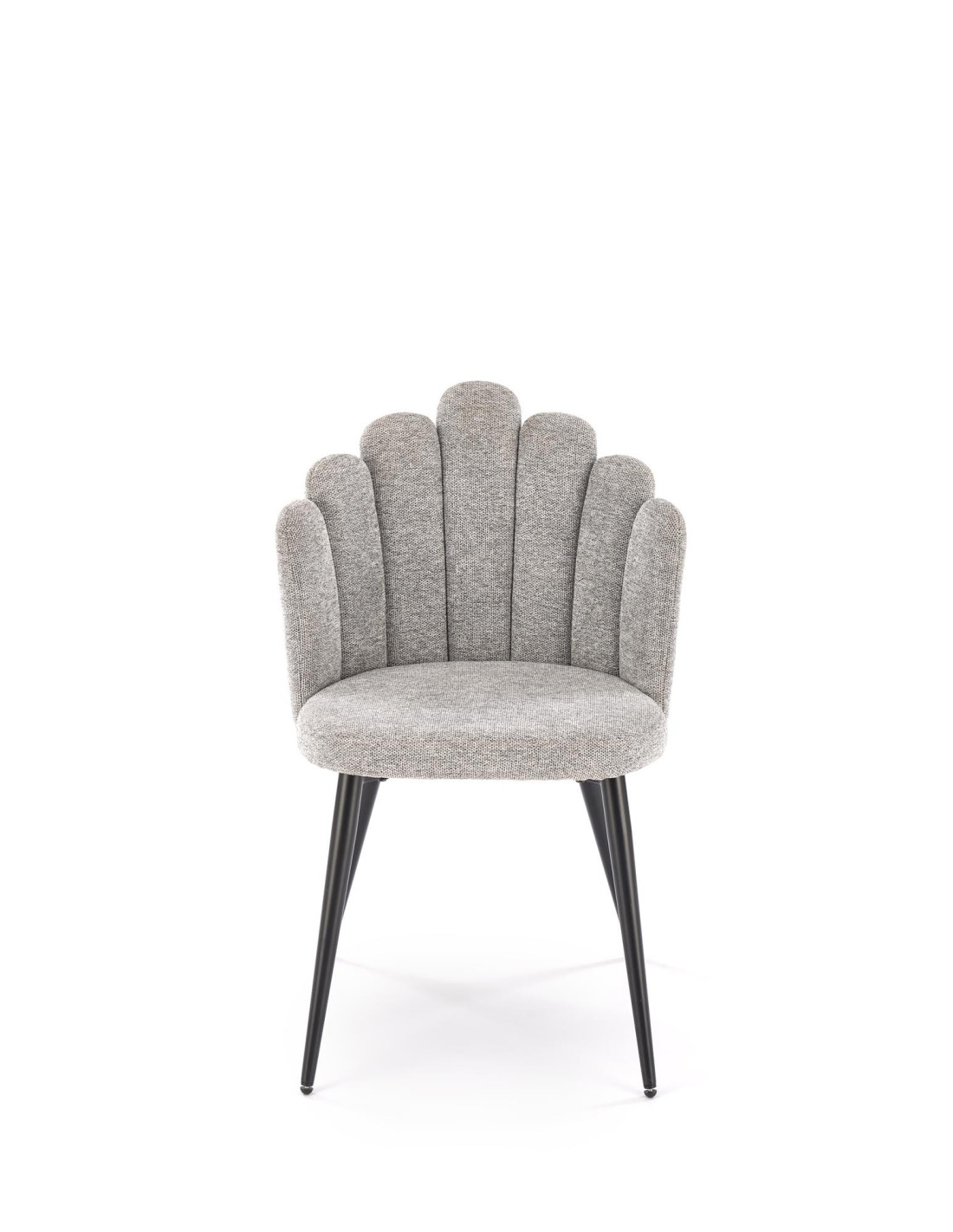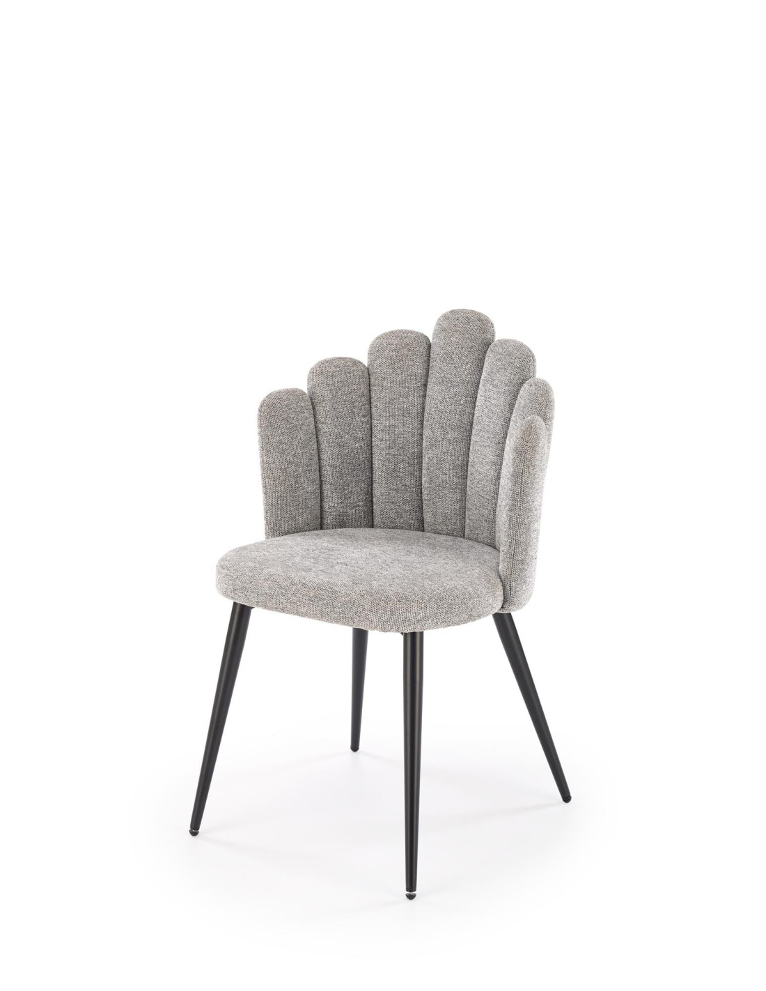 Poznaj krzesło K552, które łączy w sobie nowoczesny design z praktycznością. Wykonane z tkaniny DIOSA w pięknym popielatym kolorze, krzesło zachwyca kubełkowym oparciem, podzielonym na segmenty, które przypominają kształtem muszlę. Jego czarne, smukłe nogi lekko rozszerzają się ku dołowi, co nadaje mu elegancji oraz stabilności.