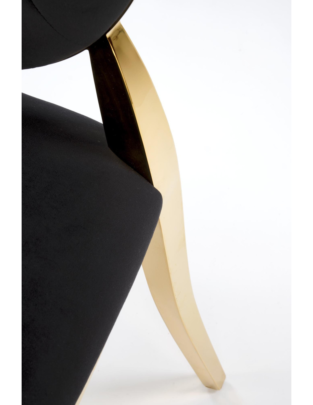 Wybierz krzesło K556, które łączy elegancki design z wysokim komfortem. Jego czarne, pikowane siedzisko i oparcie z weluru wprowadzą do Twojego wnętrza niepowtarzalny styl glamour. Stelaż wykonany z chromowanej stali w kolorze złotym dodaje mu luksusowego charakteru, a okrągłe oparcie z guzikami tworzącymi efektowne pikowanie przyciąga wzrok i zapewnia wygodę.