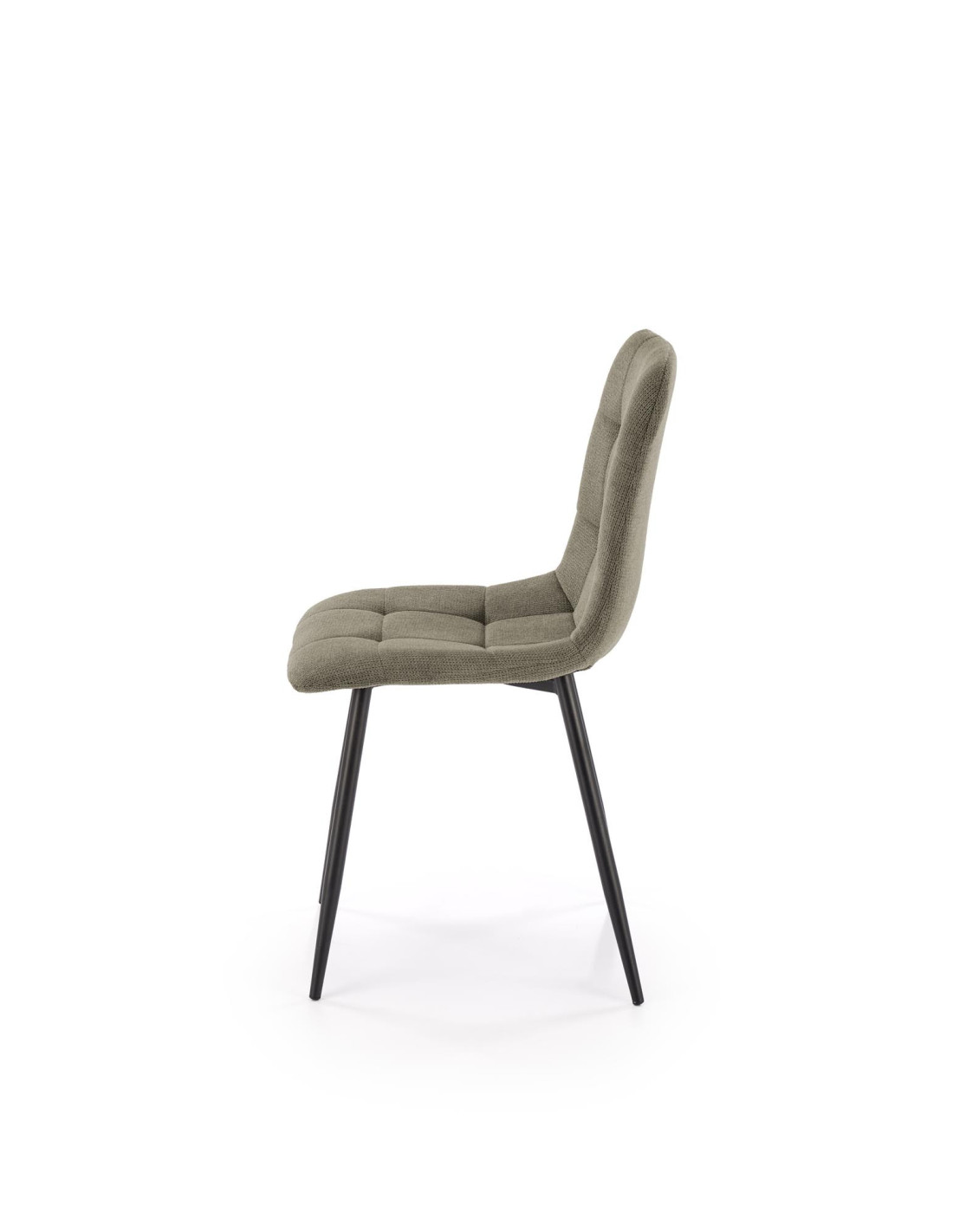 K560 Krzesło Oliwkowe Pikowane, Tkanina, Nogi Stalowe Czarne - Stylowa Forma