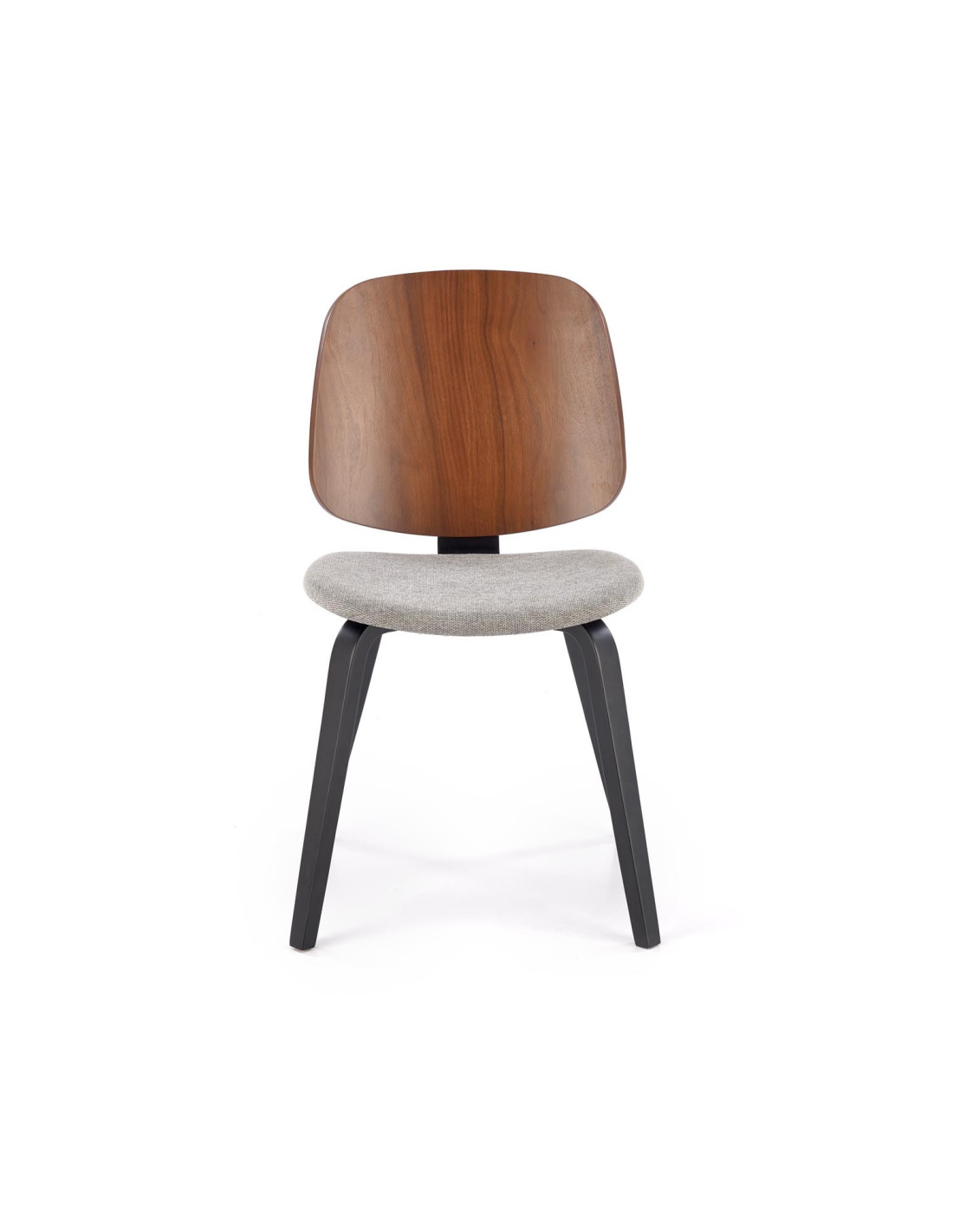 Zainspiruj się krzesłem K563, które doskonale łączy skandynawski styl z praktycznością. Oparcie wykonane ze sklejki giętej w kolorze orzechowym, w połączeniu z popielatym siedziskiem, tworzy harmonijną całość. Czarne, metalowe nogi dodają mu nowoczesnego charakteru oraz stabilności, co sprawia, że jest idealnym rozwiązaniem do jadalni czy biura.