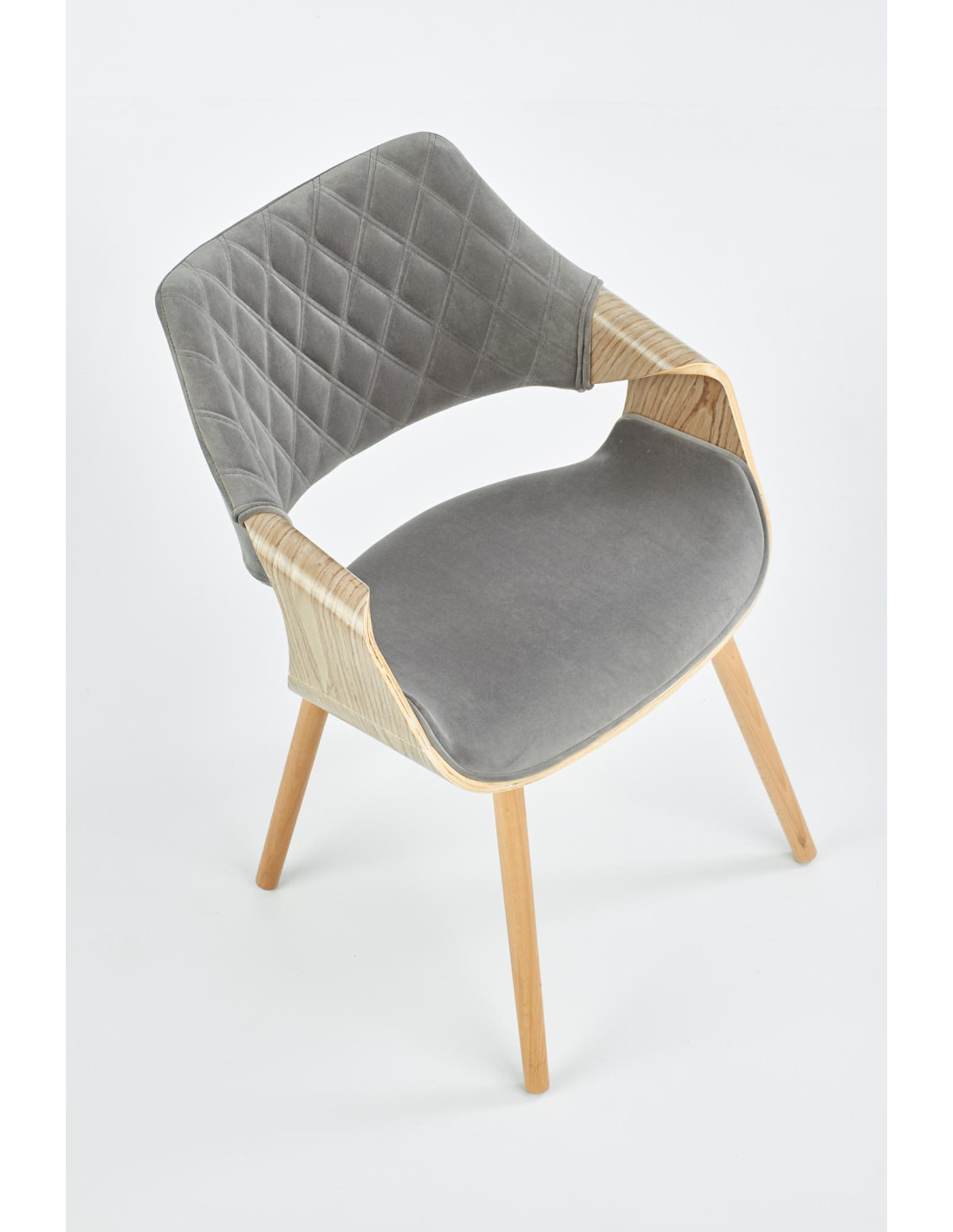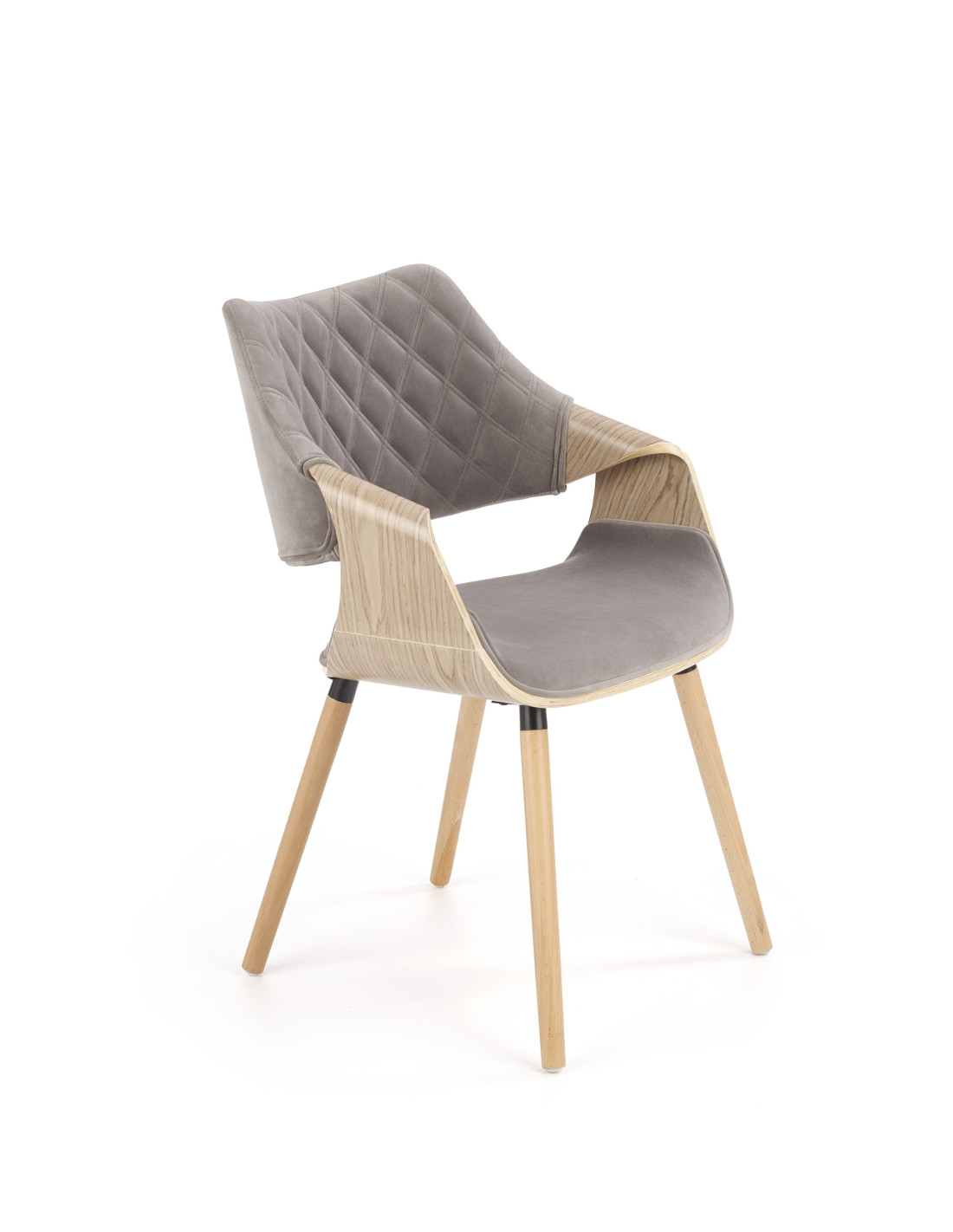 K396 Krzesło Pikowane Popiel VELVET/Jasny Dąb - Nowoczesny Akcent w Jadalni