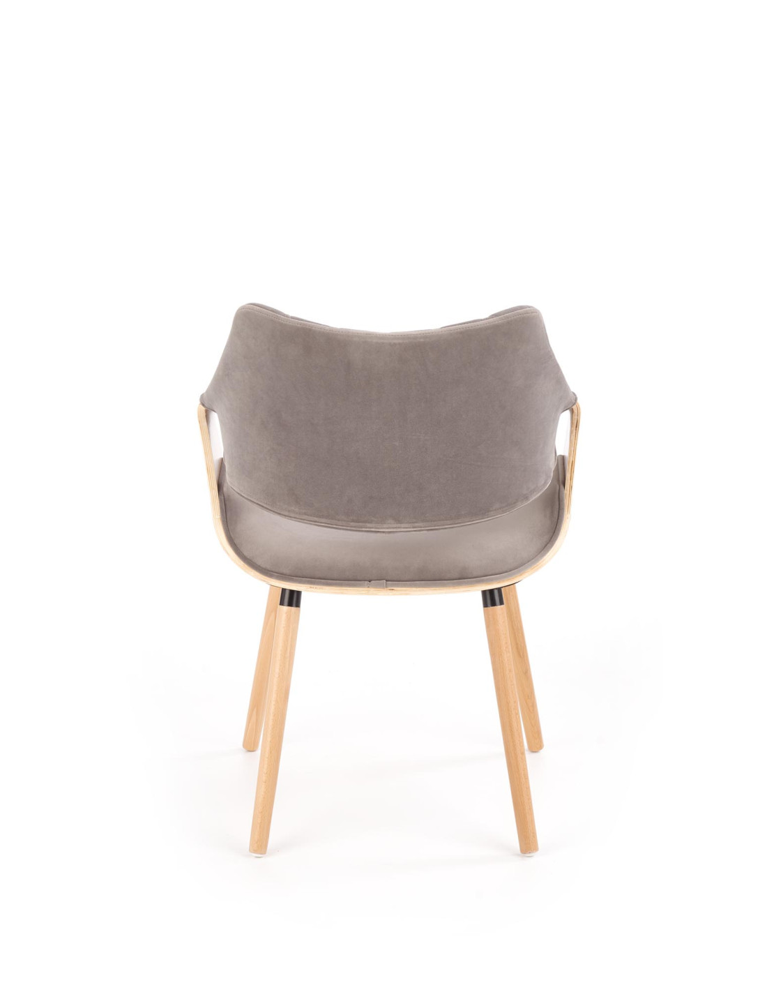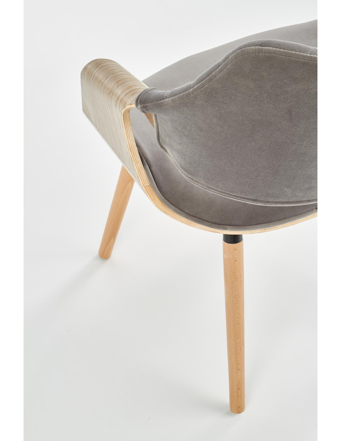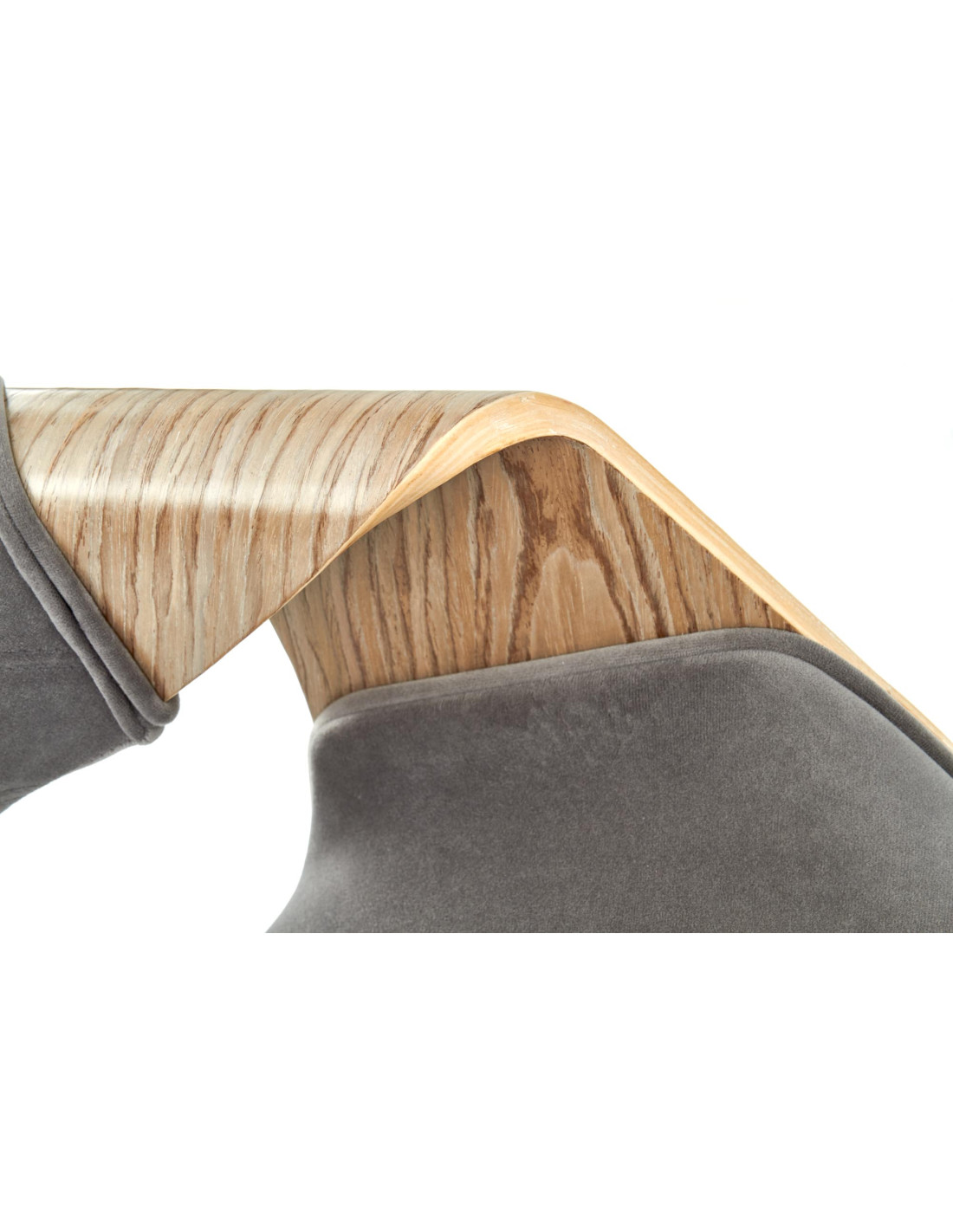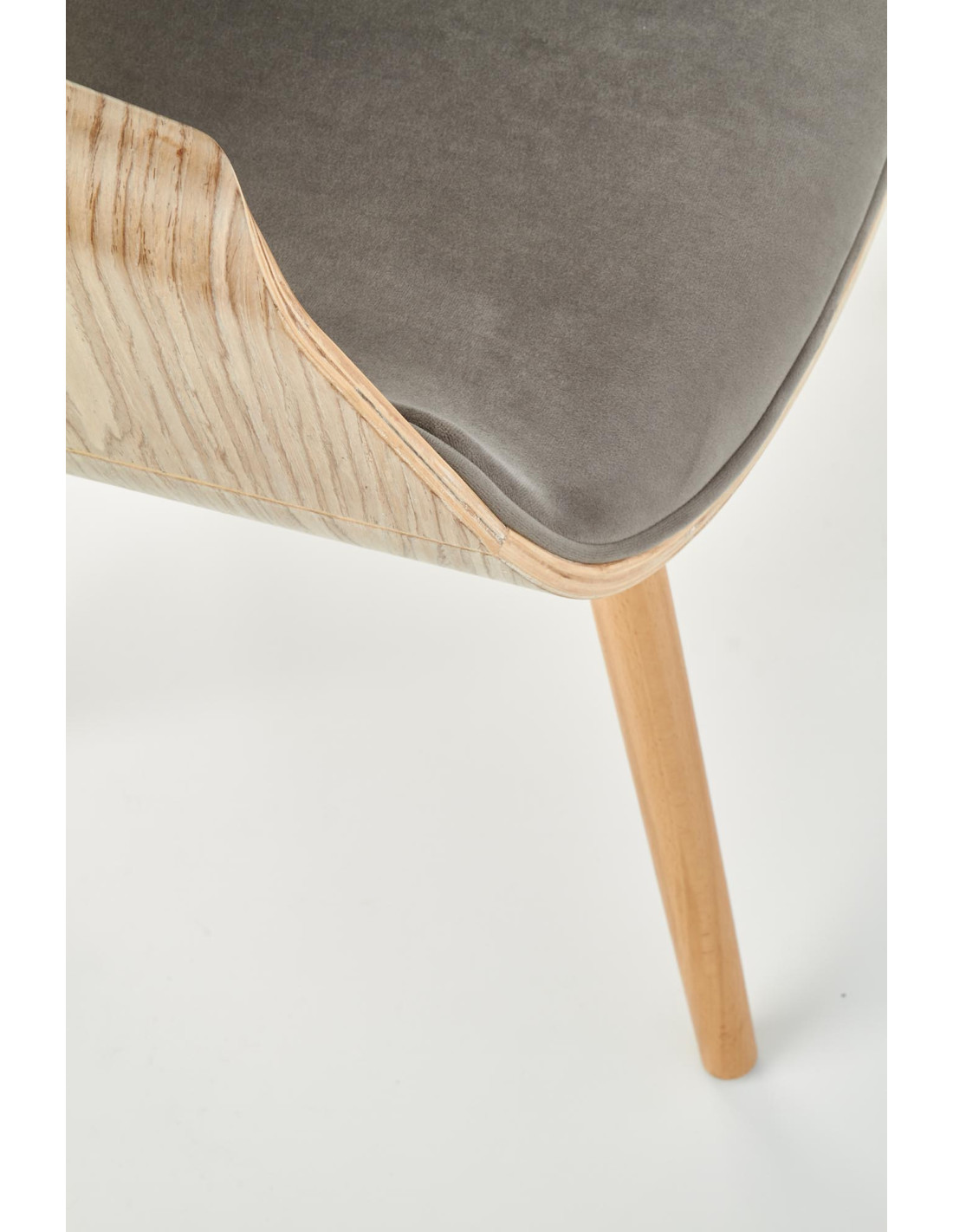 Krzesło wykonane jest z tkaniny velvet, sklejki giętej oraz drewna litego, co zapewnia mu estetyczny wygląd oraz wygodę użytkowania.