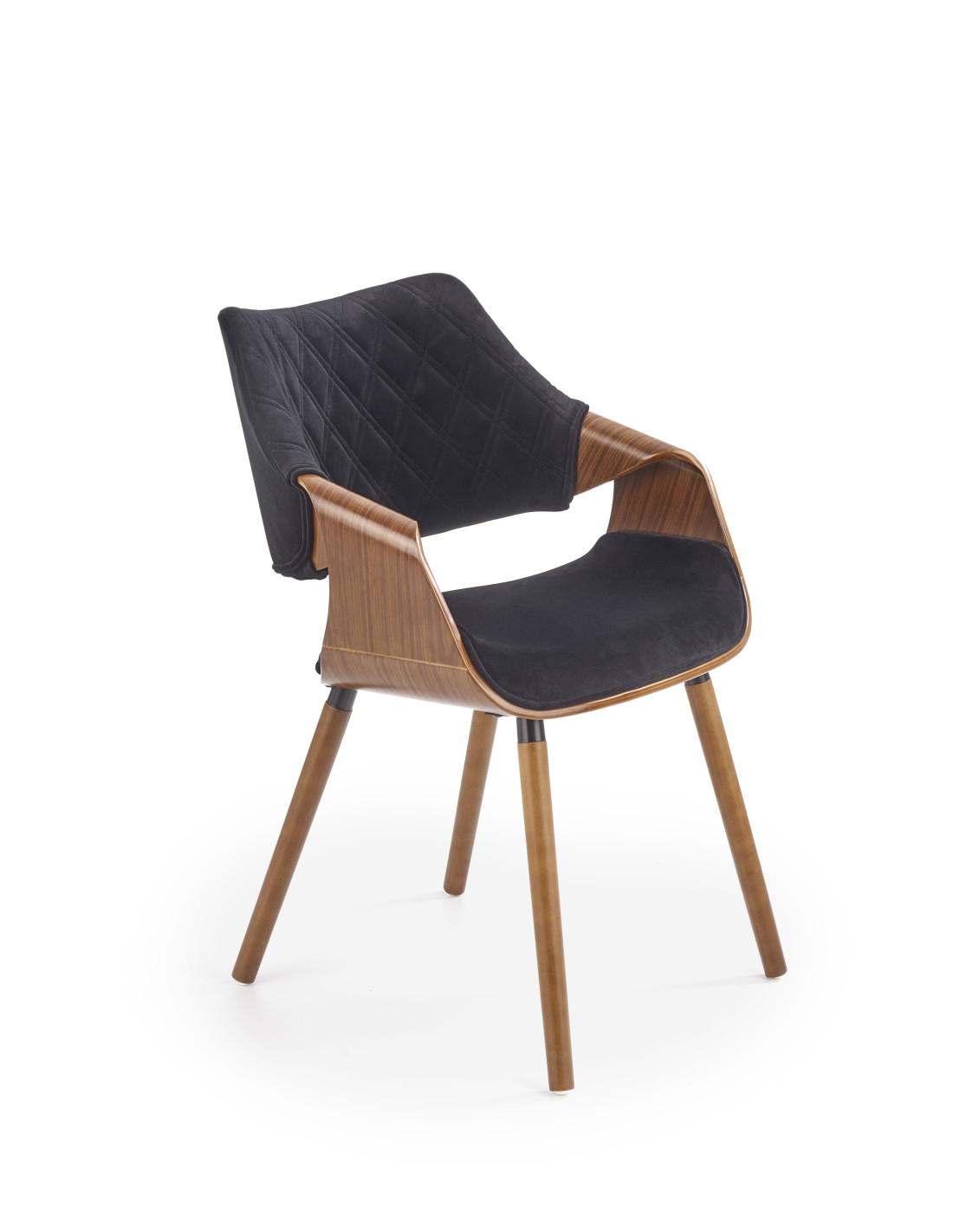 K396 Krzesło Pikowane Czarny VELVET/Orzech - Nowoczesny Styl w Salonie