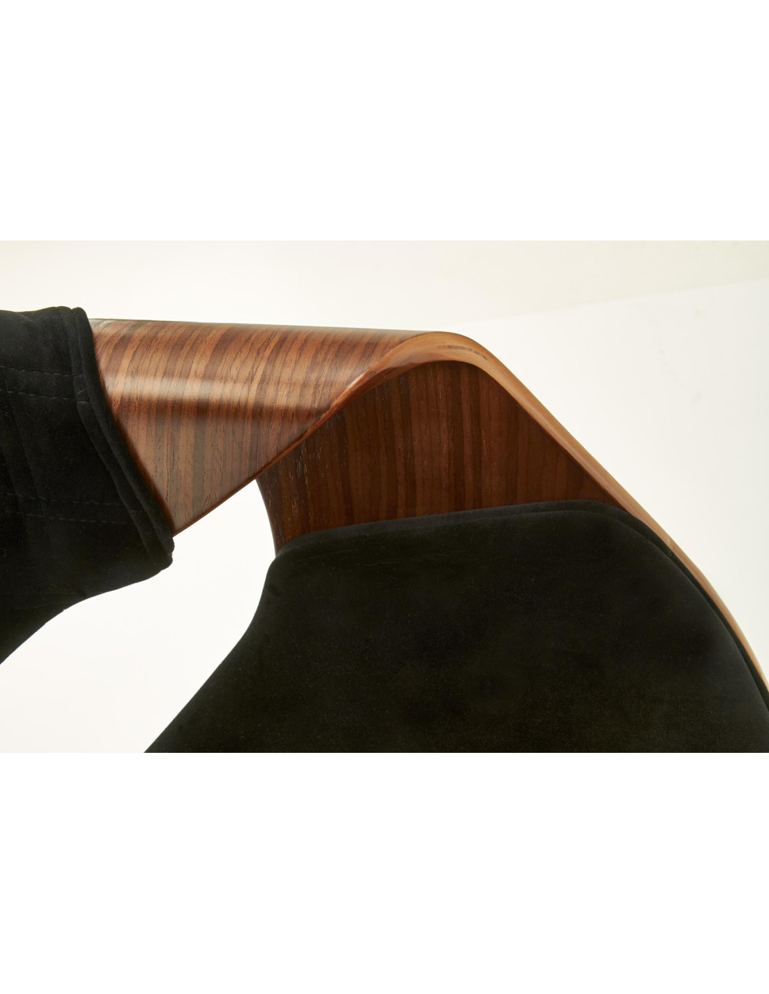 Krzesło wykonane jest z tkaniny velvet, drewna litego oraz sklejki giętej, co zapewnia mu nowoczesny wygląd.