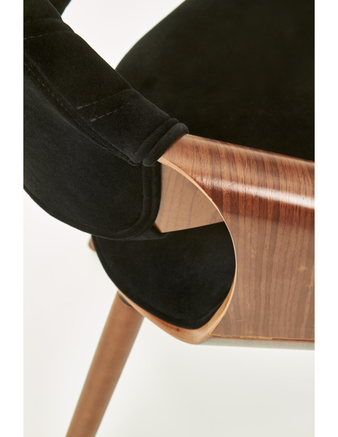 K396 Krzesło Pikowane Czarny VELVET/Orzech | Nowoczesny Styl w Salonie
