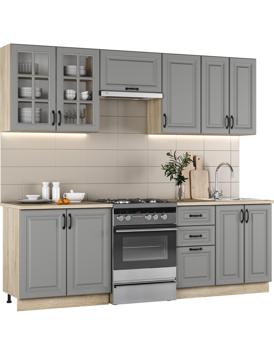 ELIZABETH Zestaw Kuchenny 240 cm Popielaty/Dąb Sonoma | Nowoczesny Styl z Klasycznym Akcentem