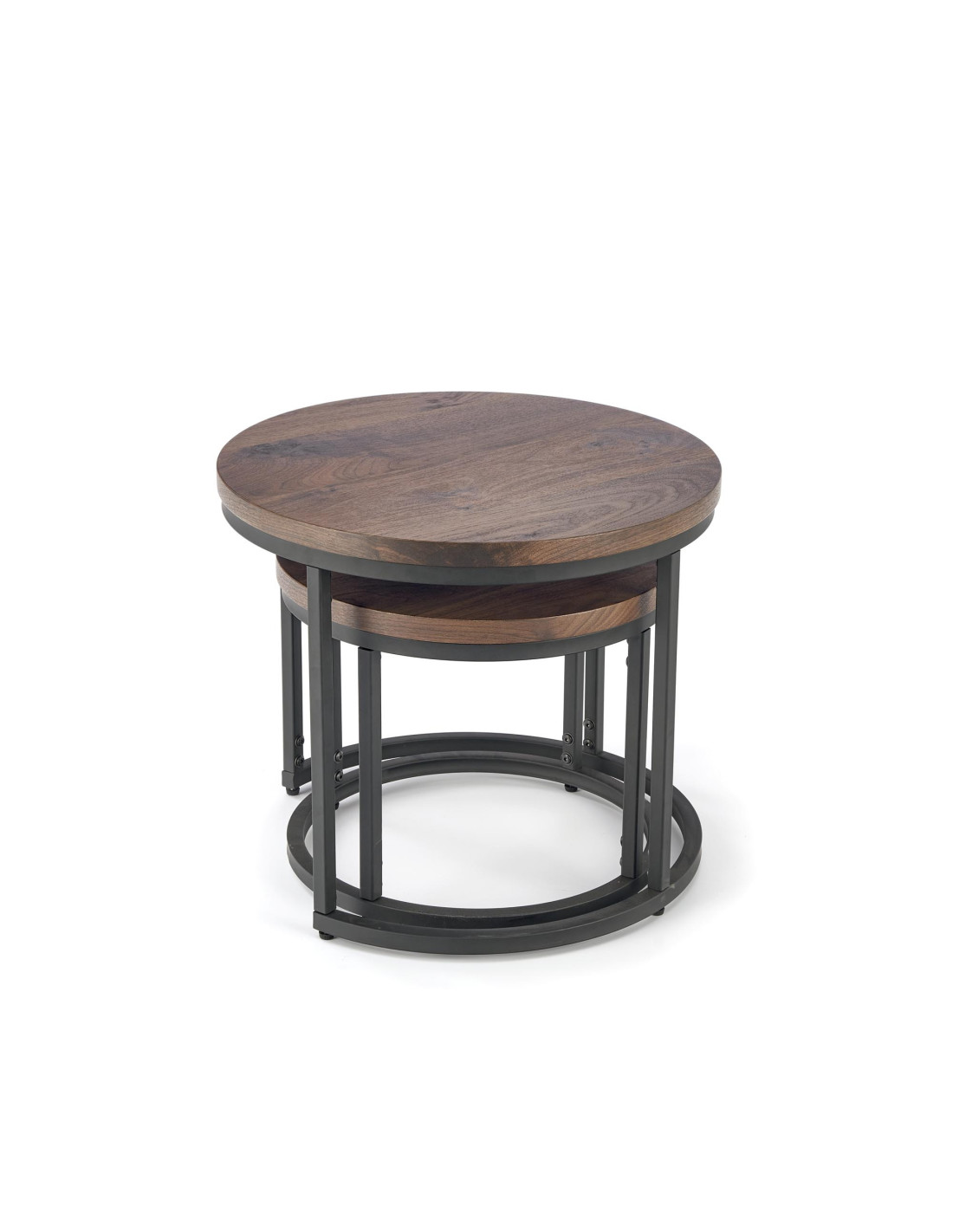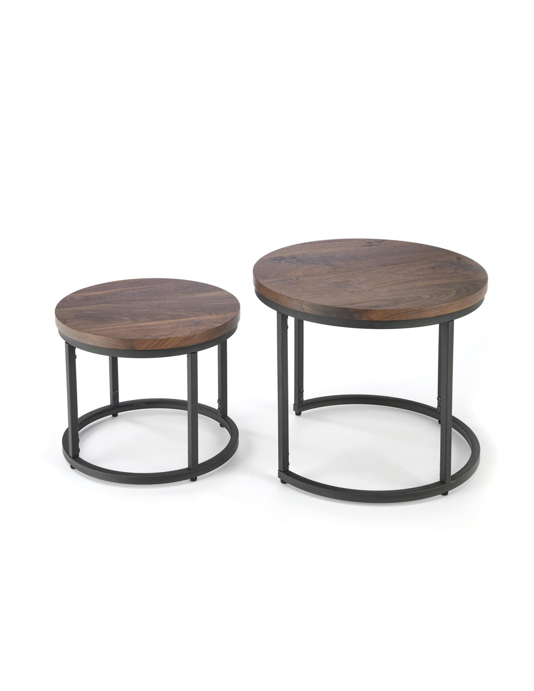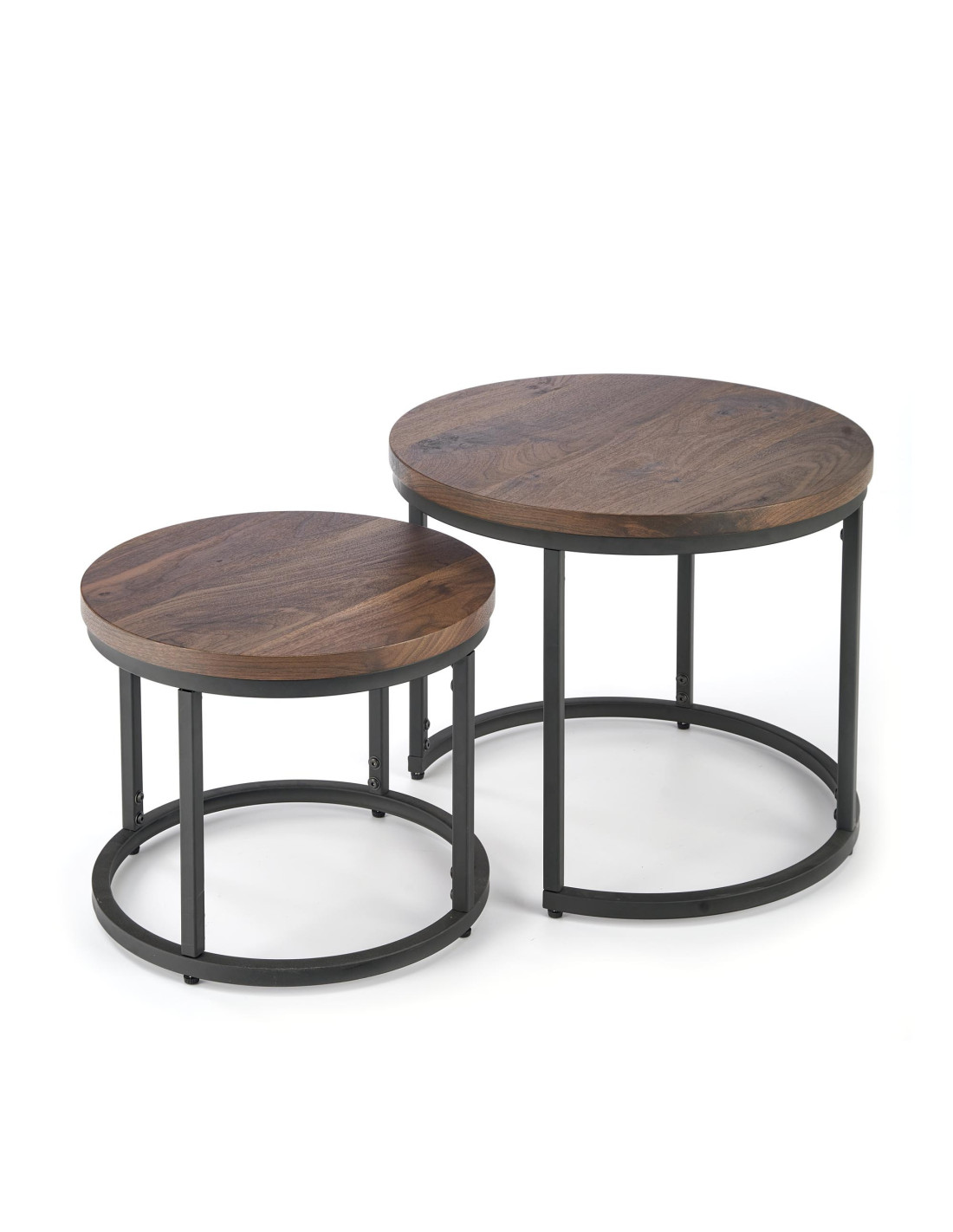 OREO Zestaw 2 Ław Okrągłych Fi53/Fi43 cm Orzechowy/Czarny - Stylowe