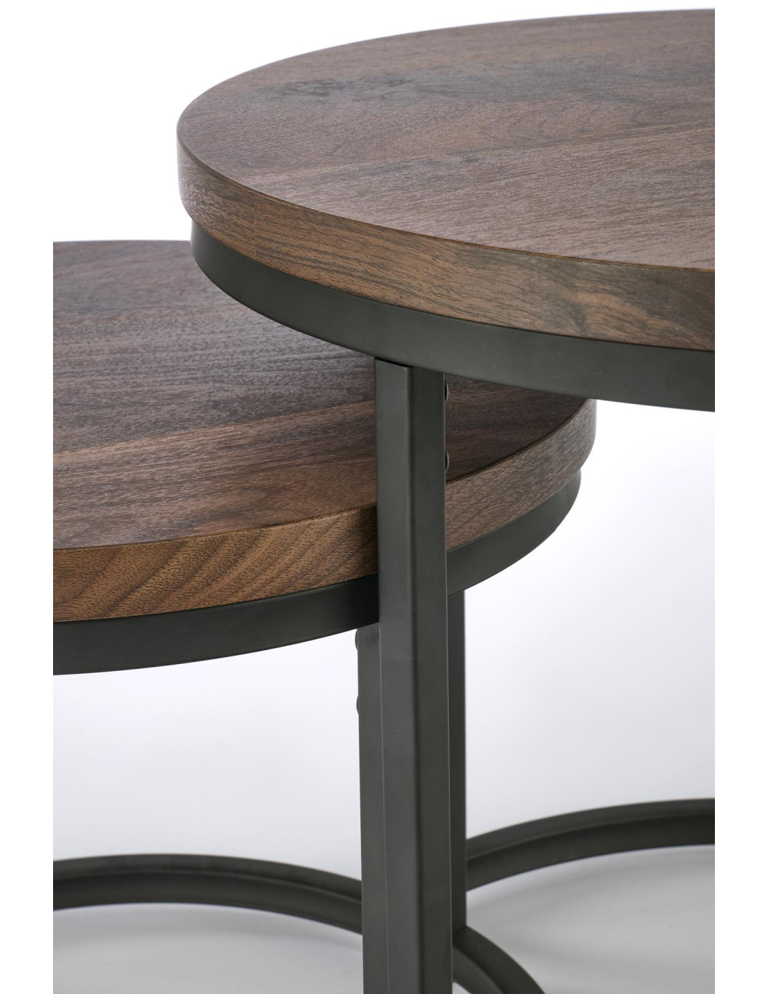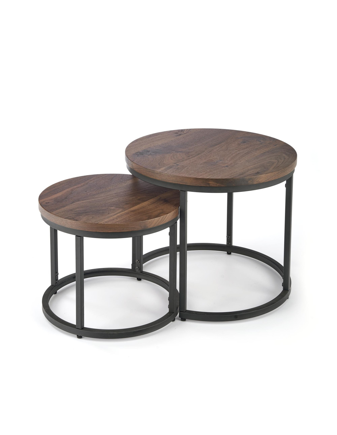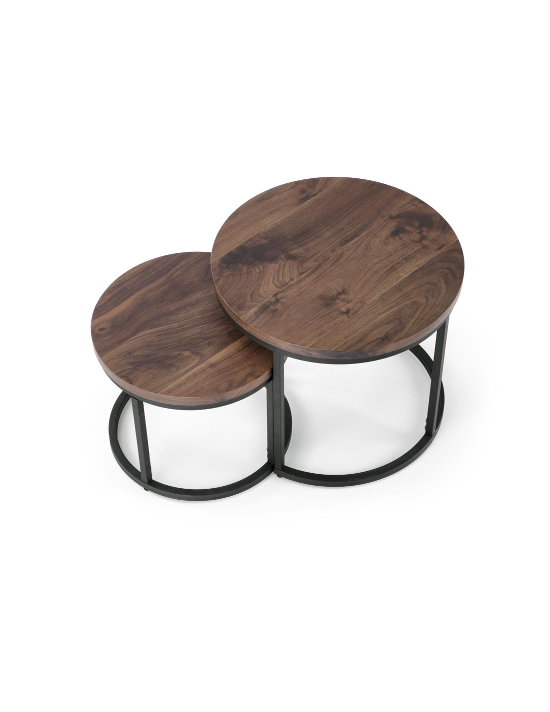 OREO Zestaw 2 Ław Okrągłych Fi53/Fi43 cm Orzechowy/Czarny - Stylowe