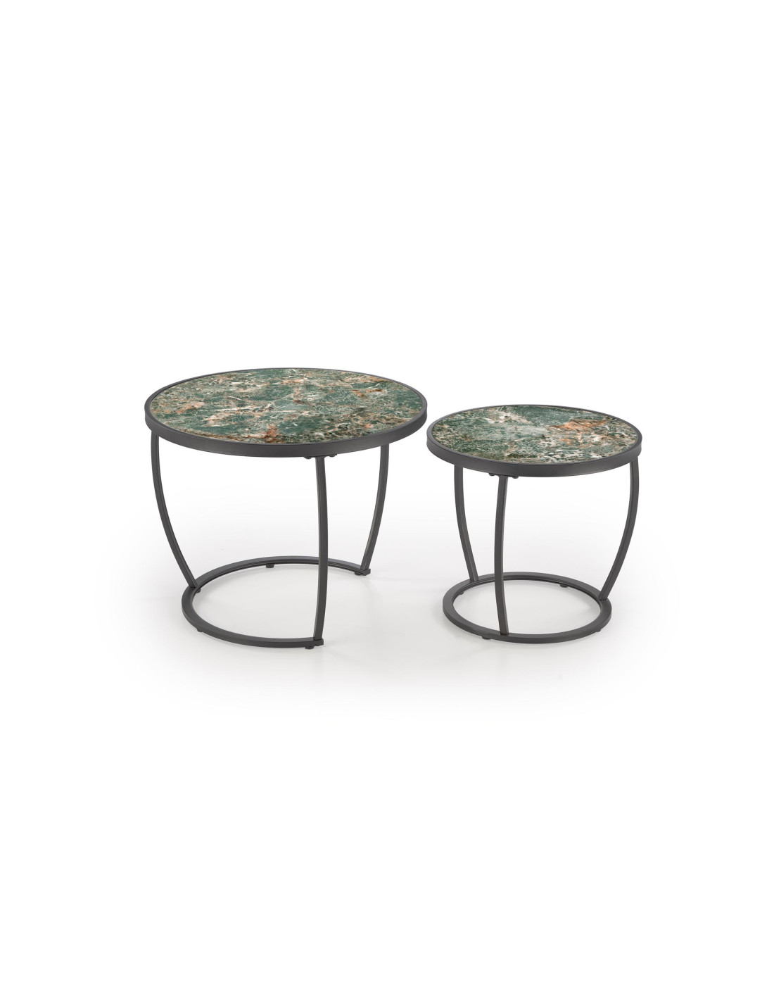 INES Zestaw 2 Ław fi62/50 cm, fi47/43 cm | Spiek Zielony Marmur - Stylowe