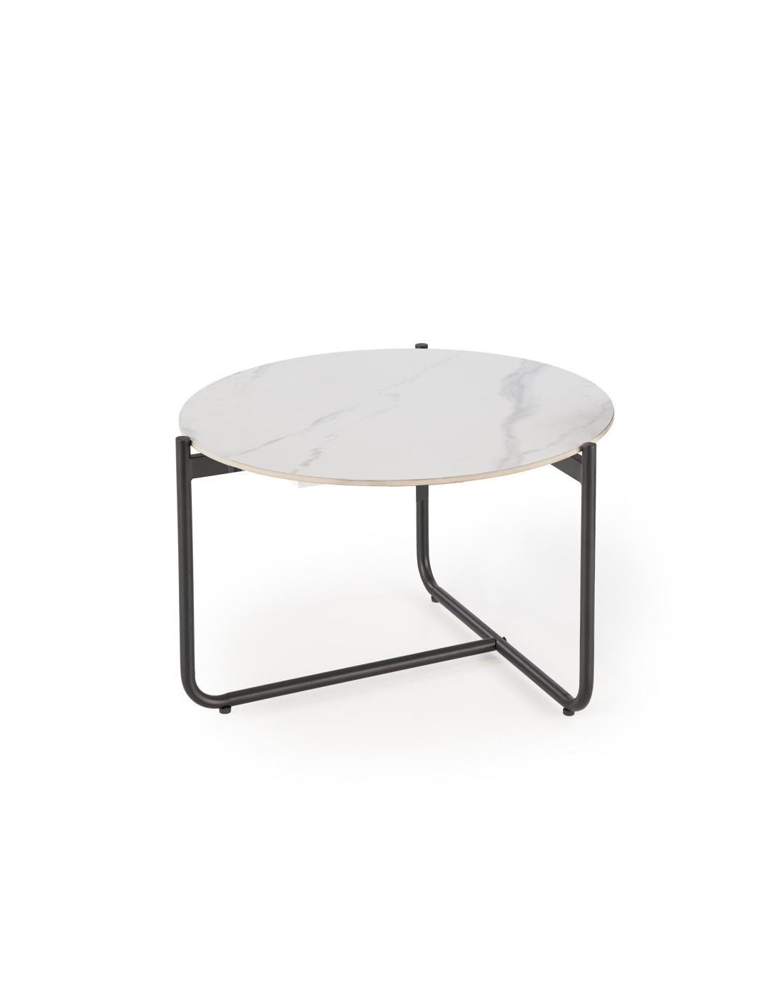 ACUNA Ława Okrągła Spiek Biały Marmur Fi60cm Czarna Podstawa - Modna Forma