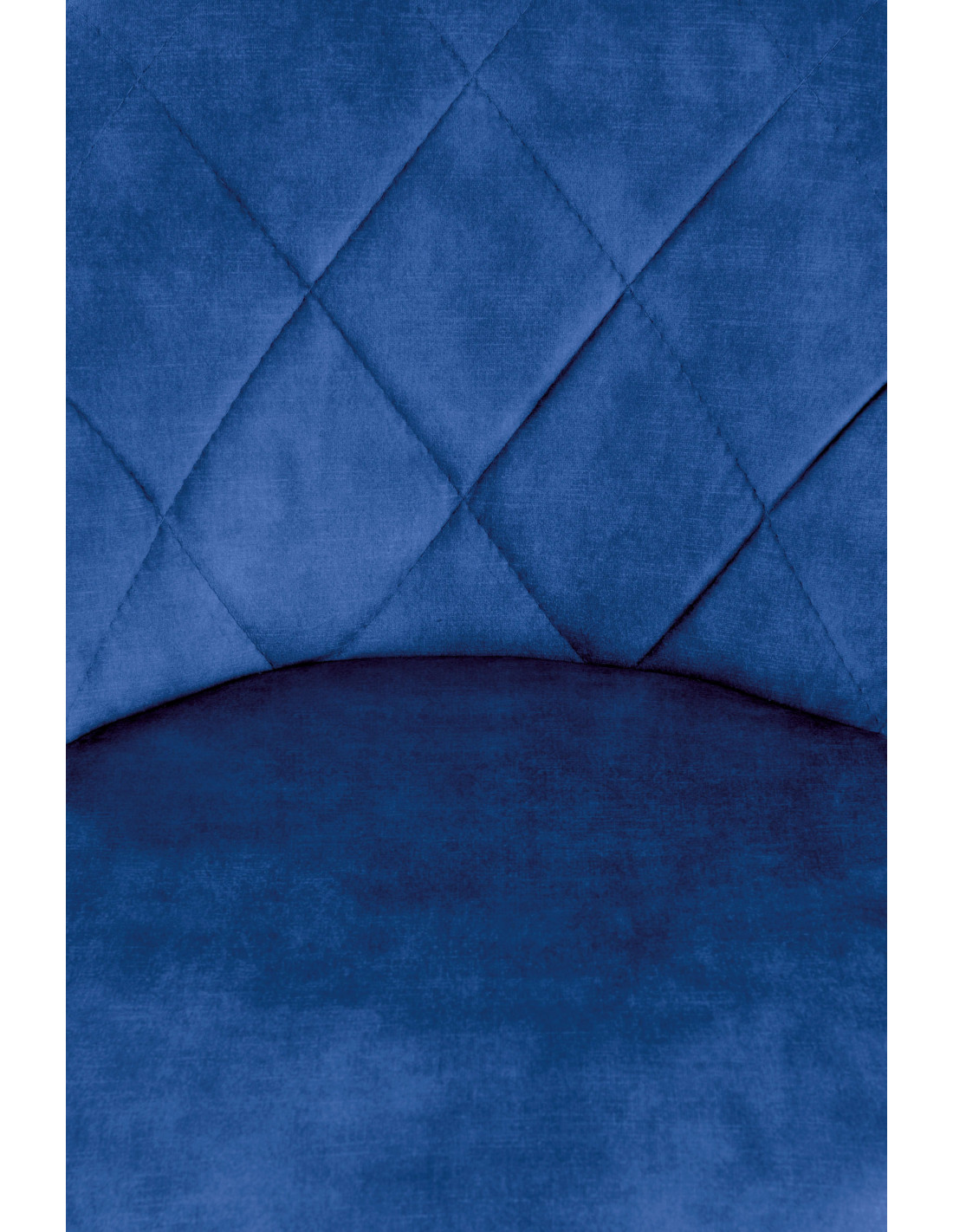 Ciesz się nowym hokerem H101, który łączy w sobie nowoczesny design z eleganckim wykończeniem. Tapicerka w głębokim granatowym kolorze wykonana z aksamitu dodaje mu wyjątkowego charakteru, który przyciągnie wzrok każdego gościa. Oparcie z dekoracyjnymi przeszyciami tworzy niepowtarzalny wzór, który wyróżnia ten hoker na tle innych mebli. Brak podłokietników sprawia, że jest to idealne rozwiązanie do mniejszych przestrzeni, gdzie liczy się każdy centymetr.