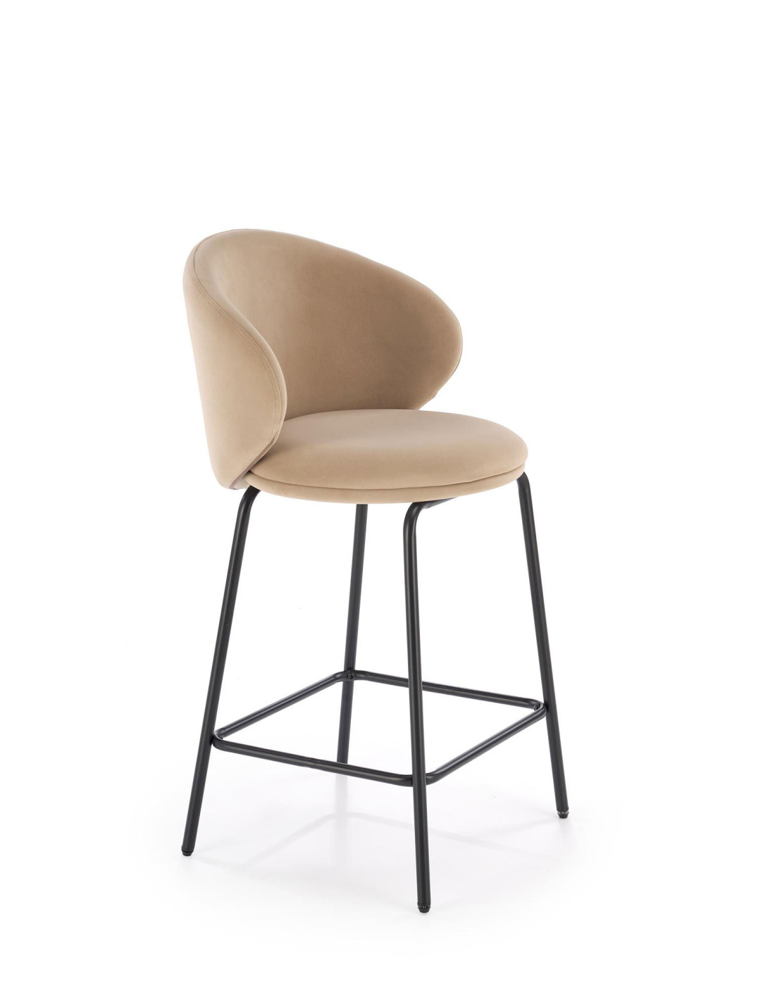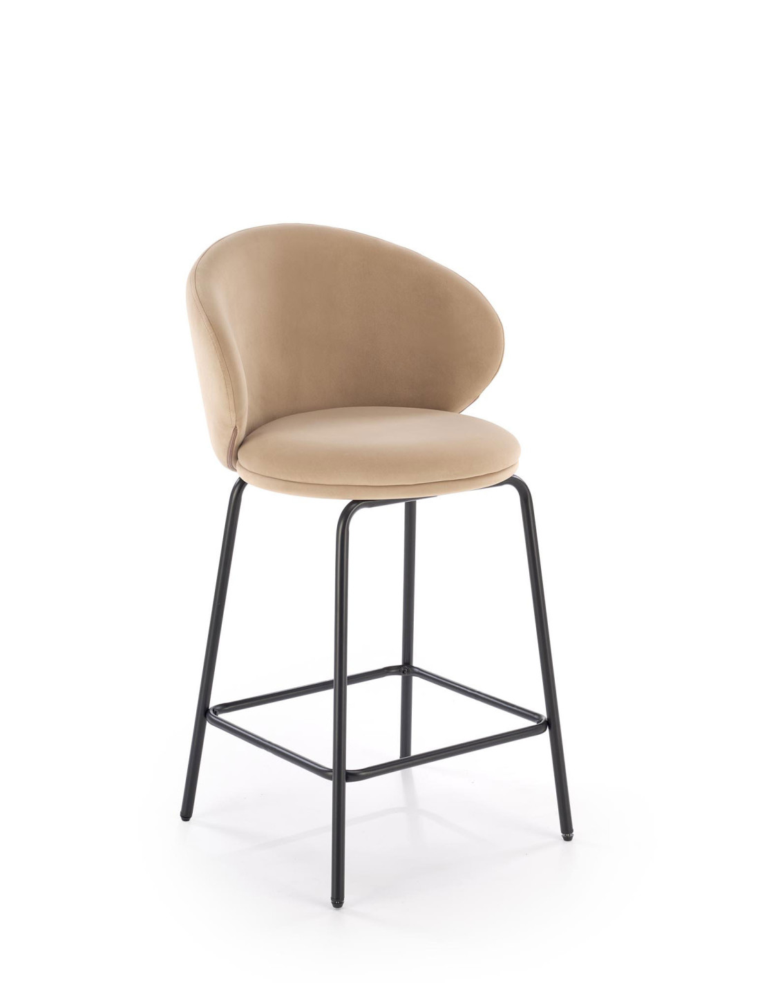 H121 Hoker Czarny | Welur Beżowy, Nogi Stalowe Czarne, Kubełkowe Oparcie