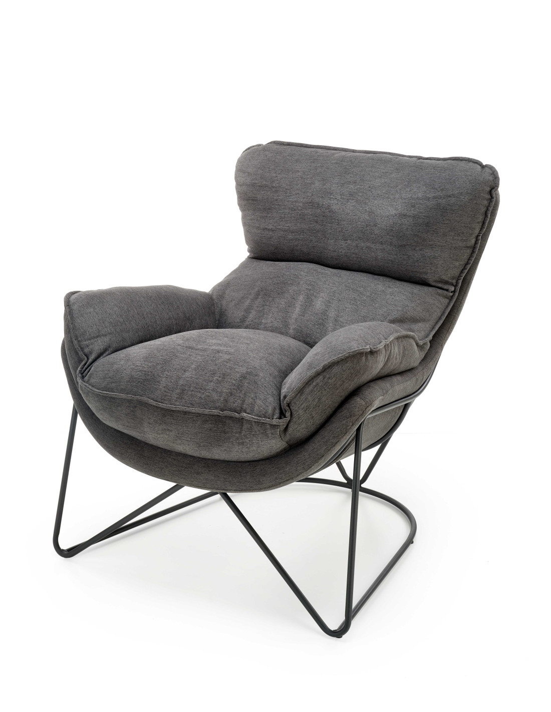 Zaprojektowany z myślą o Tobie fotel NERVAL to połączenie minimalistycznego stylu z niezrównanym komfortem. Jego miękkie, obszerne poduszki na siedzisku i oparciu sprawiają, że każda chwila spędzona w nim to prawdziwa przyjemność. Cienkie, metalowe nogi w kolorze czarnym tworzą geometryczny, krzyżujący się wzór, co dodaje mu nowoczesnego charakteru, idealnego do wnętrz w stylu skandynawskim, industrialnym lub nowoczesnym.
