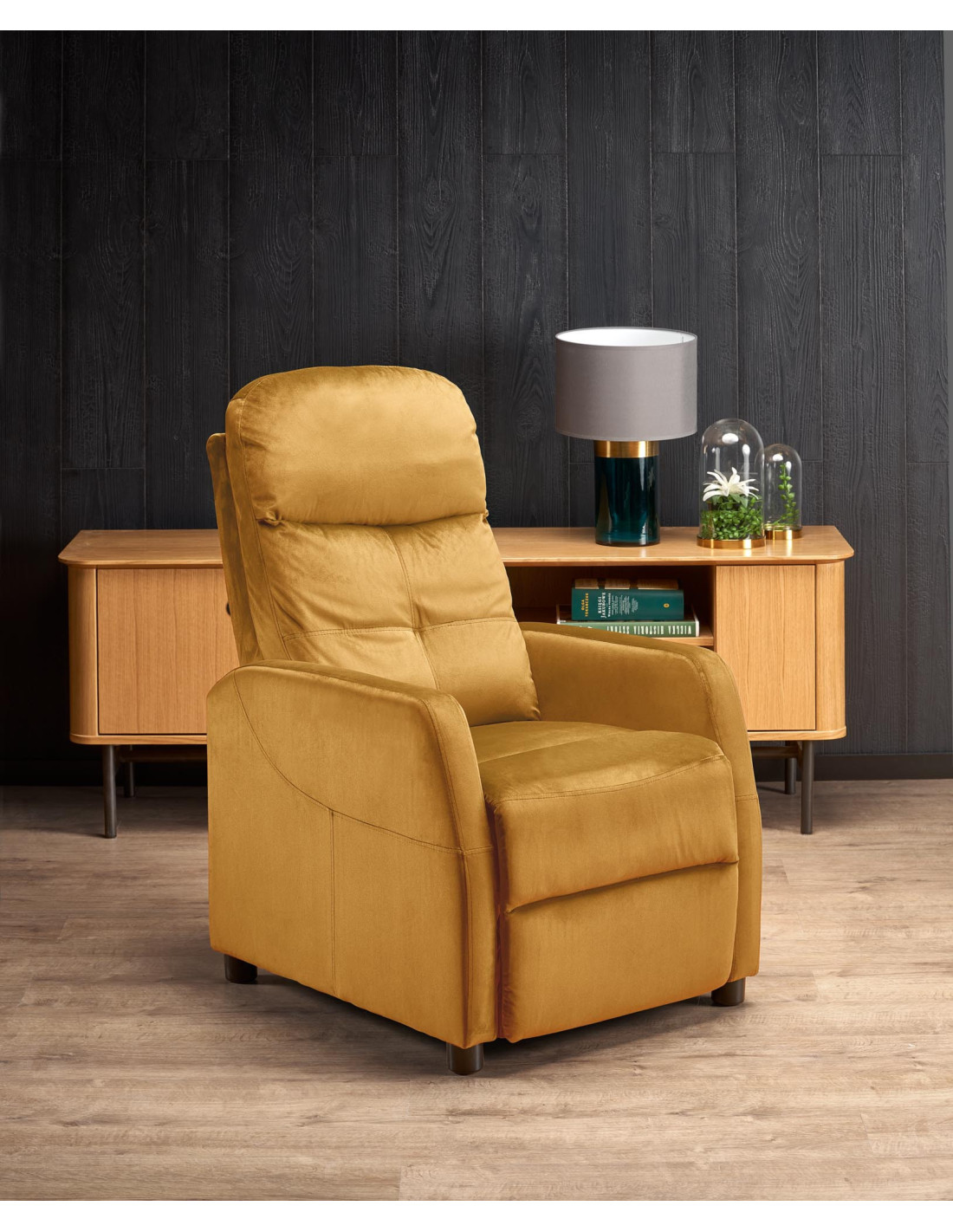 AURELIO2 Fotel Rozkładany Velvet Musztardowy – Barwy Komfortu