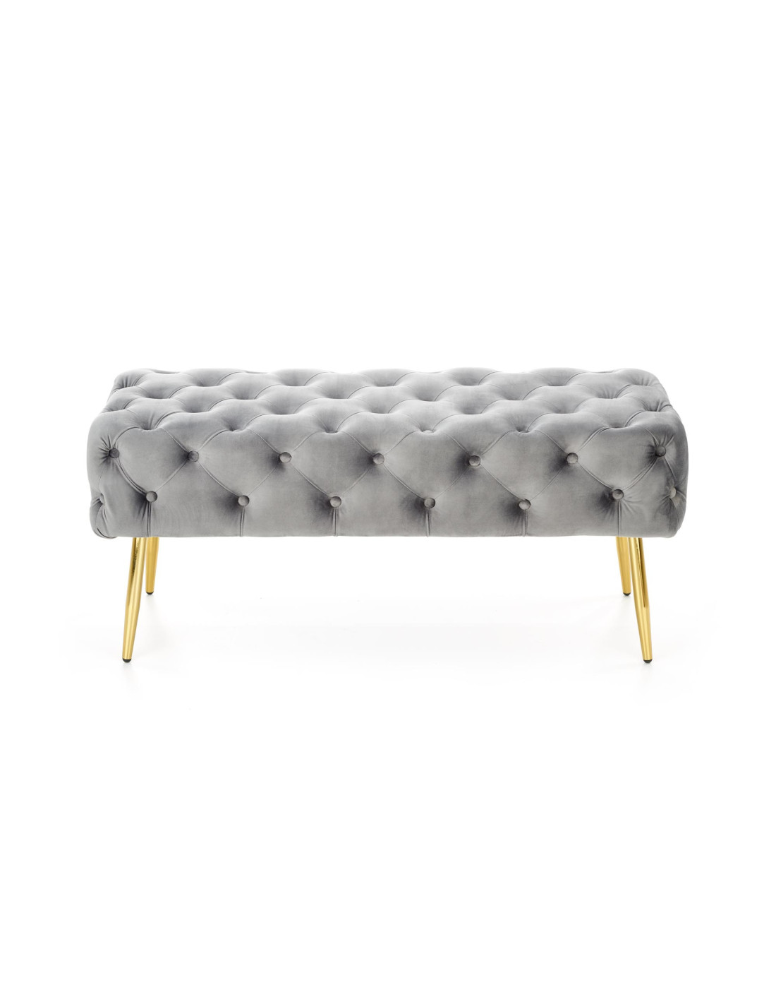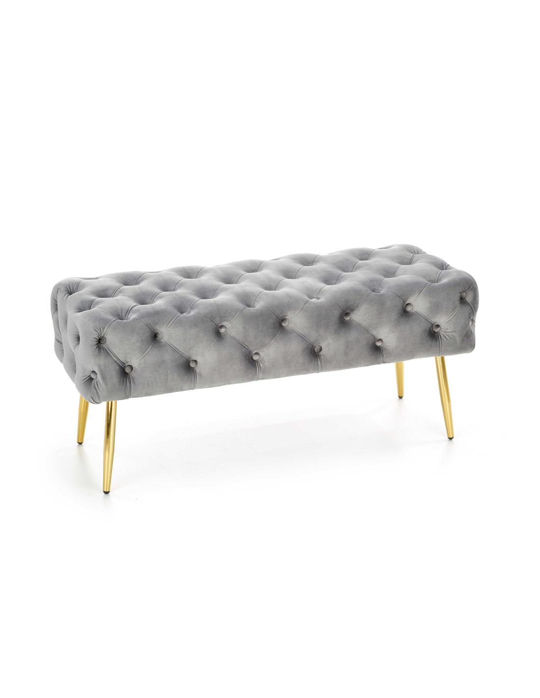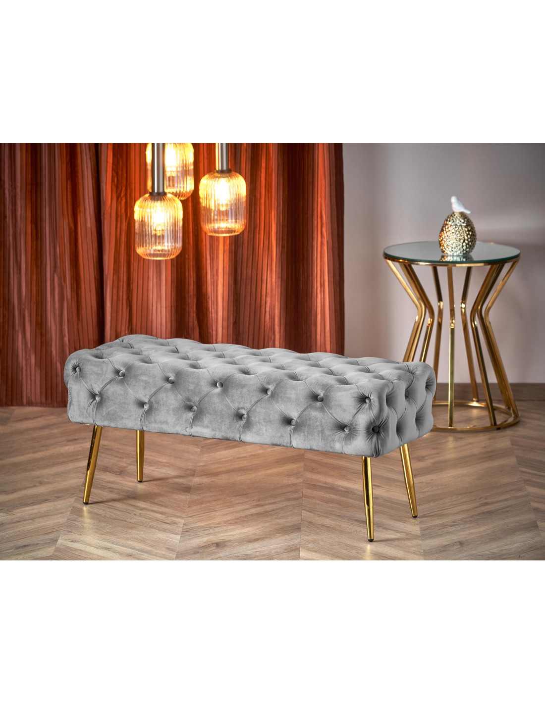 ATHENA Ławka Pikowana / Popielaty Velvet - Luksusowa ze Złotymi Nogami