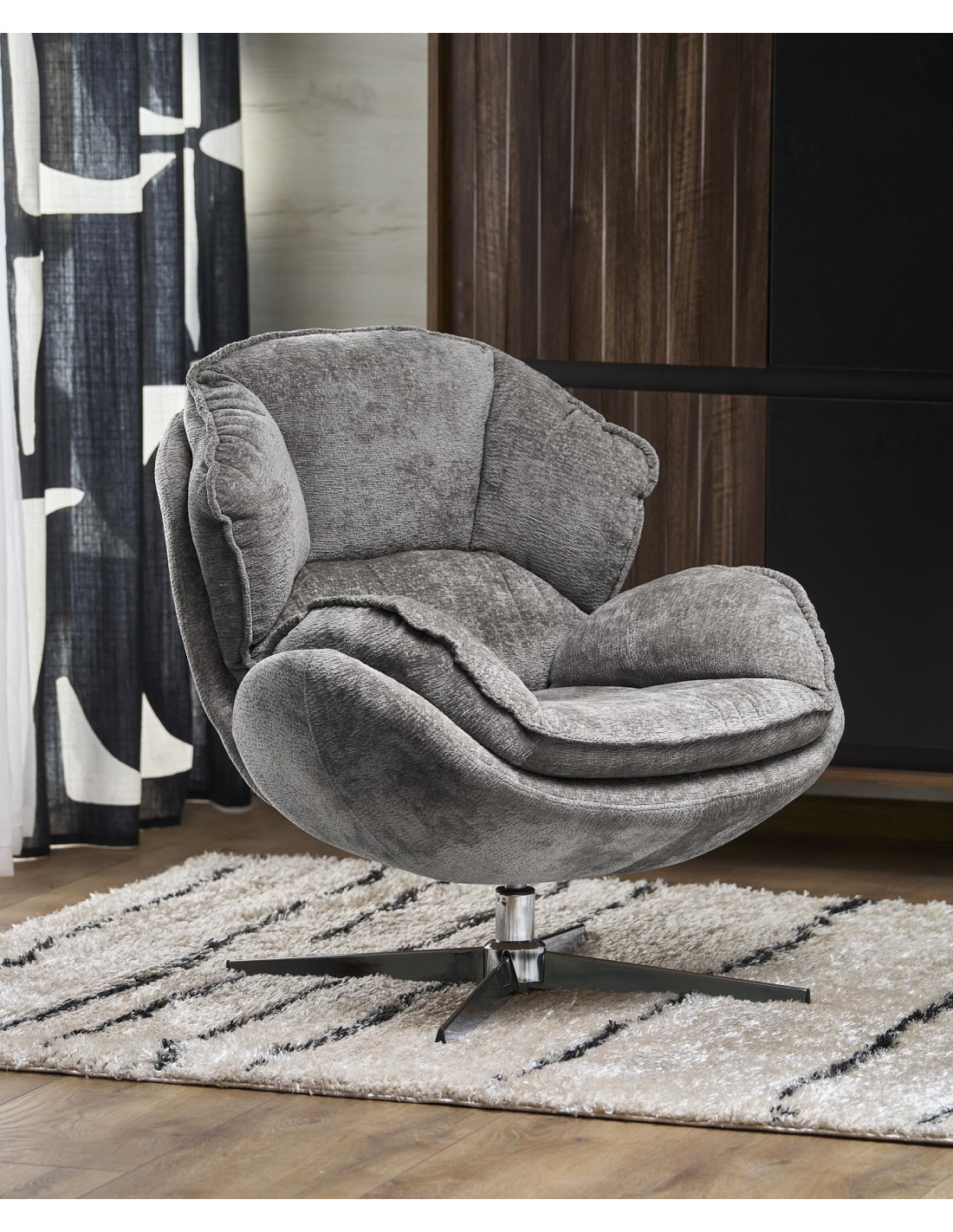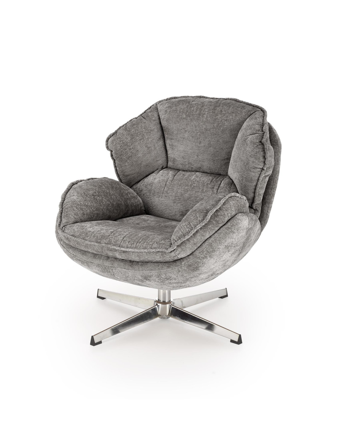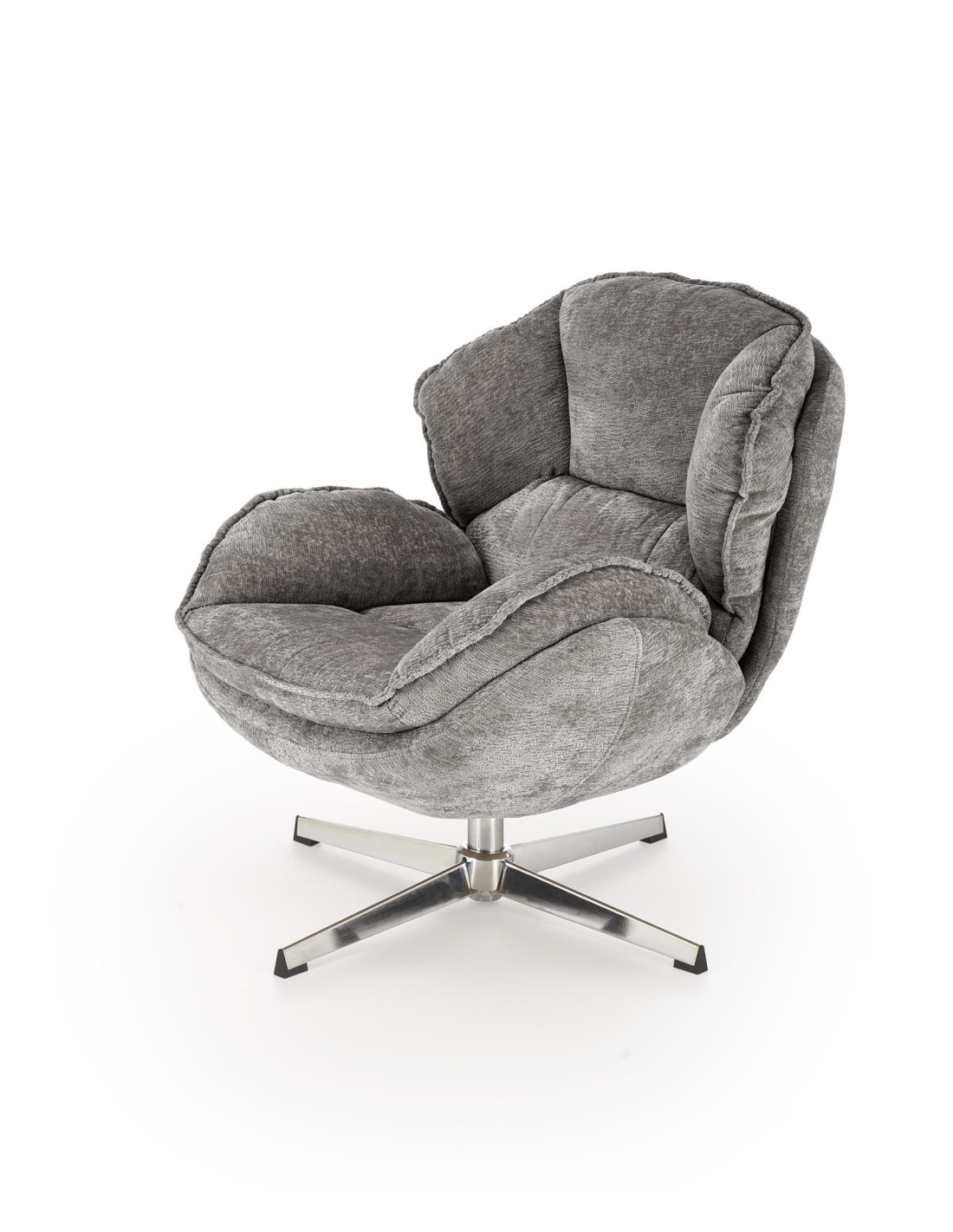 GUIDO Fotel Wypoczynkowy Popielaty Obrotowy – Komfortowy, Podstawa Chrom