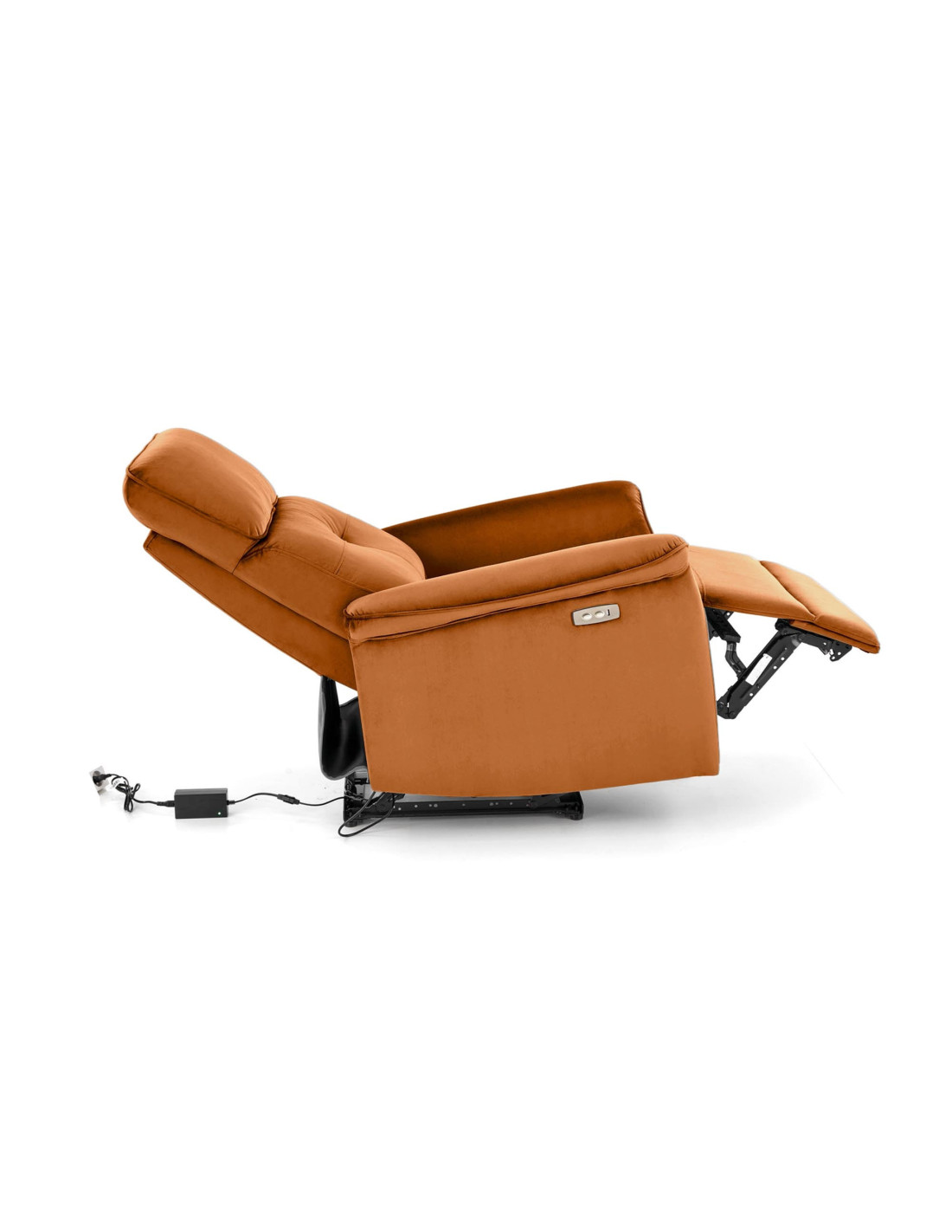 SEMIR Fotel Rozkładany Elektrycznie Cynamonowy | Velvet | Gniazdo USB
