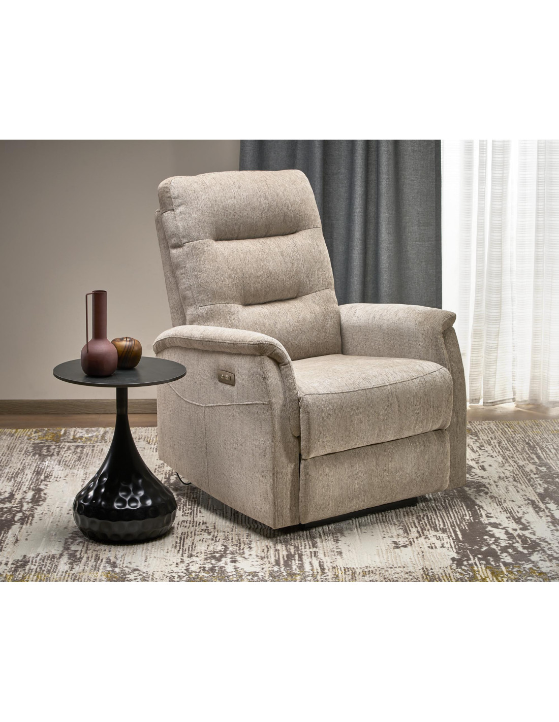JAMAL Fotel Wypoczynkowy Beżowy – Elektrycznie Rozkładany z Portem USB