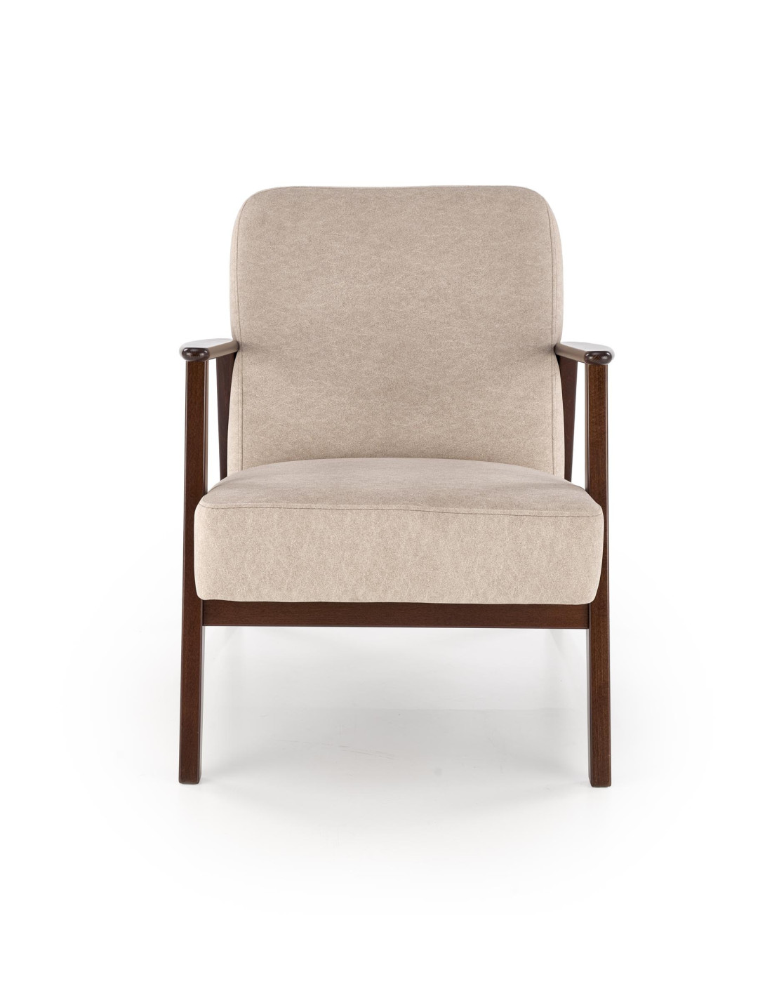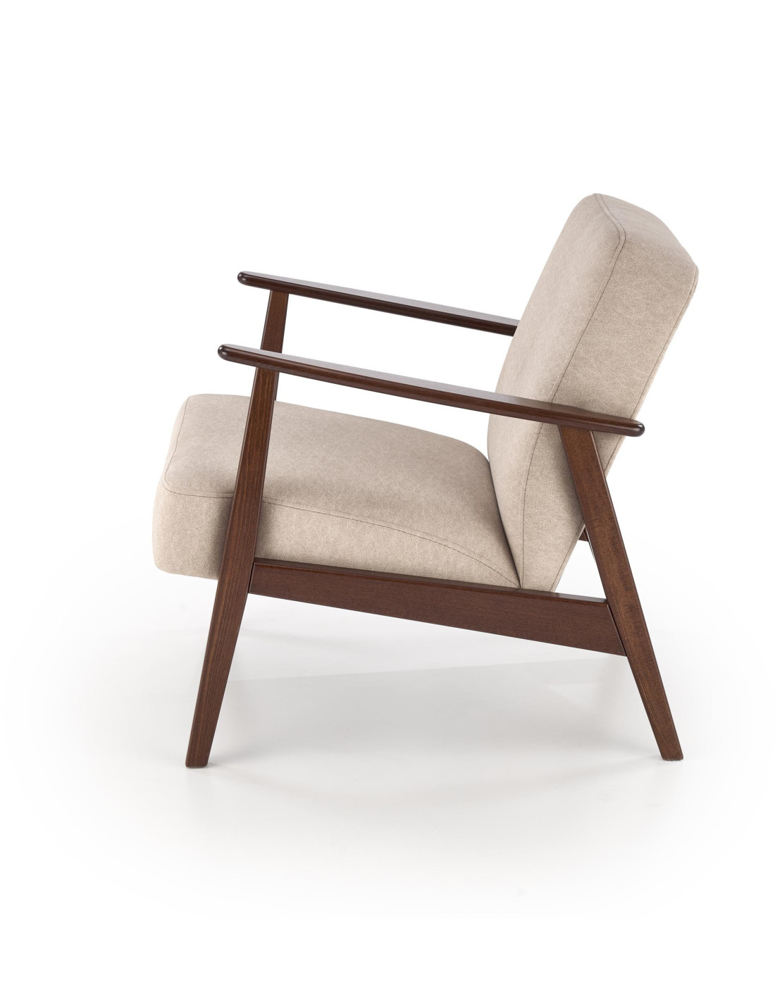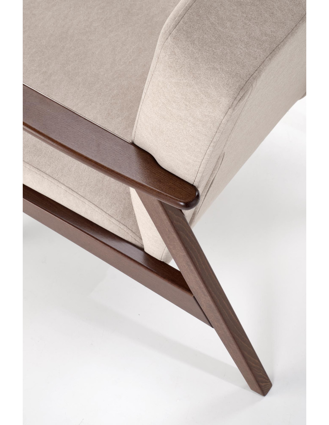 MILANO 1S Fotel Beżowy | Nogi Drewniane Bukowe Kolor Ciemny Orzech