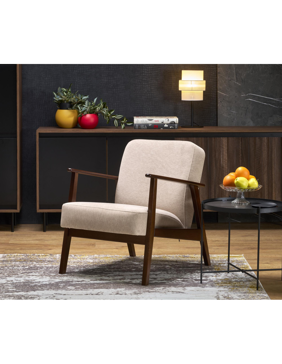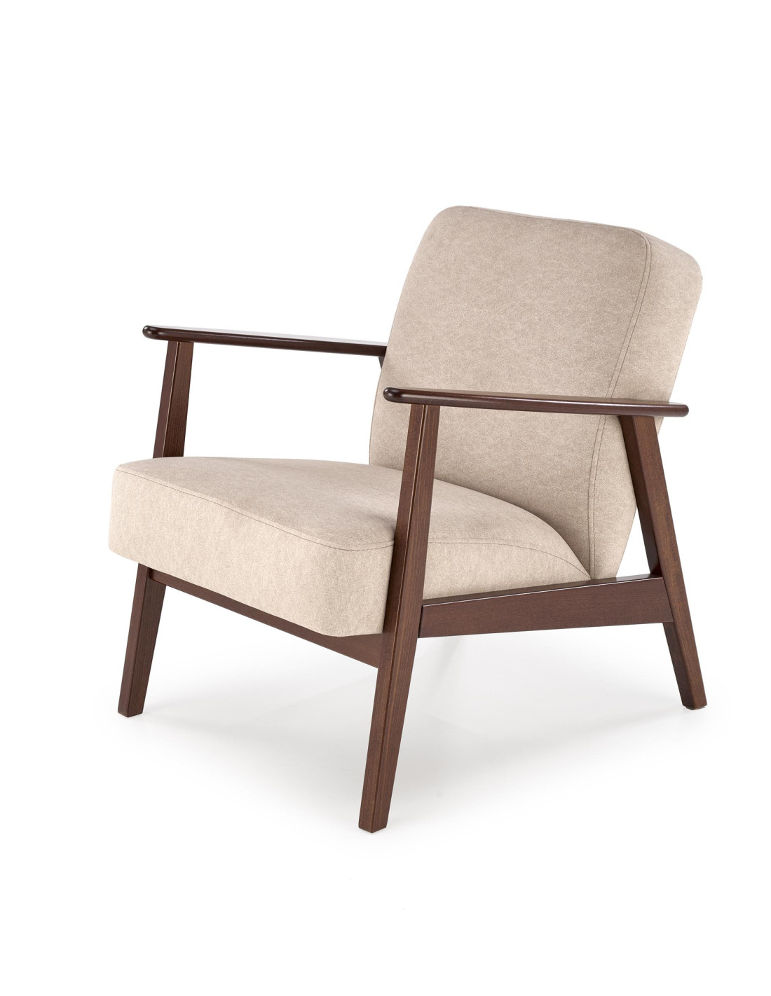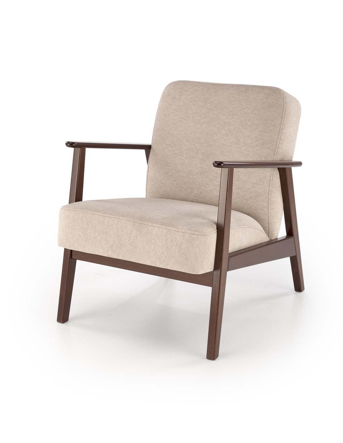 MILANO 1S Fotel Beżowy | Nogi Drewniane Bukowe Kolor Ciemny Orzech