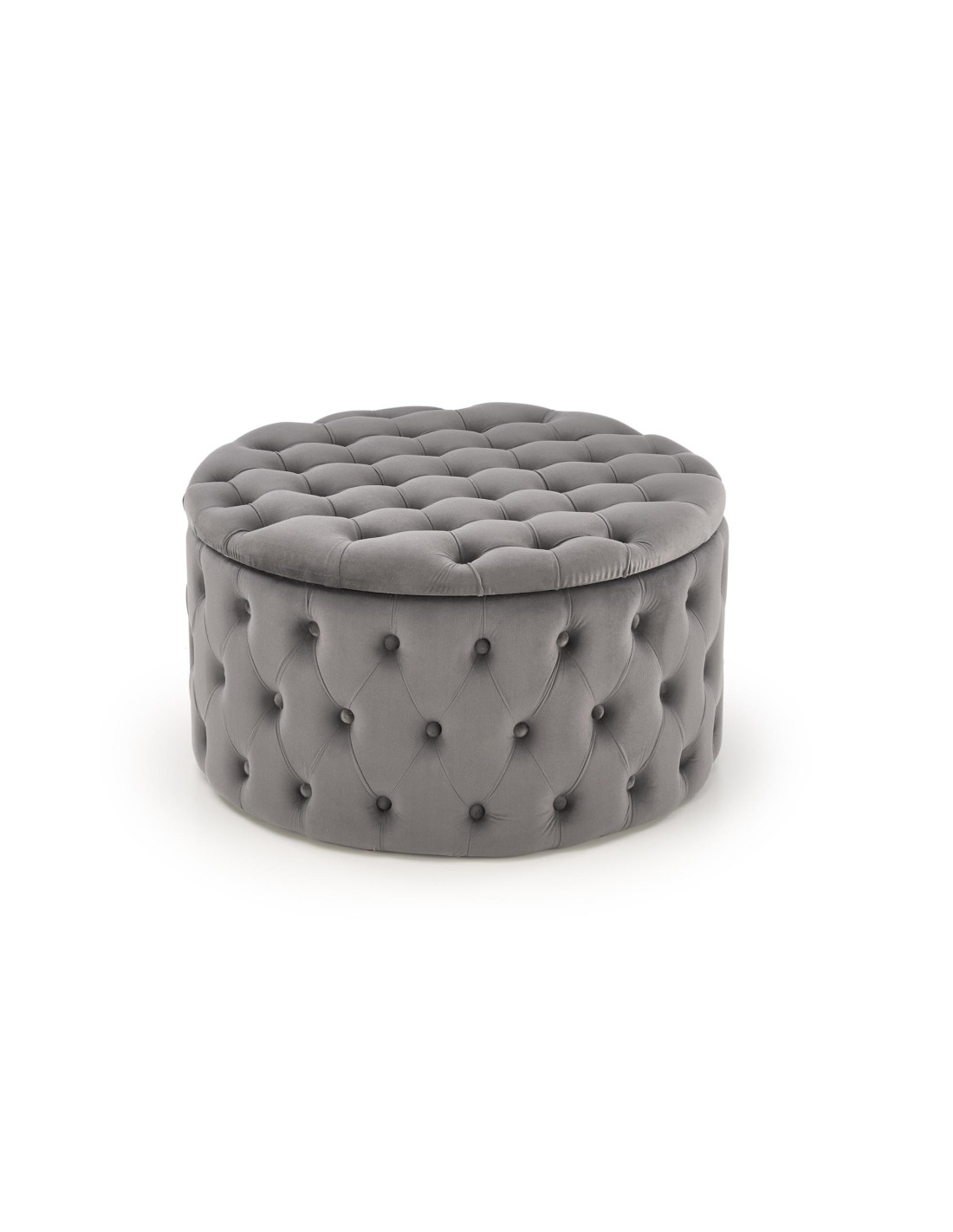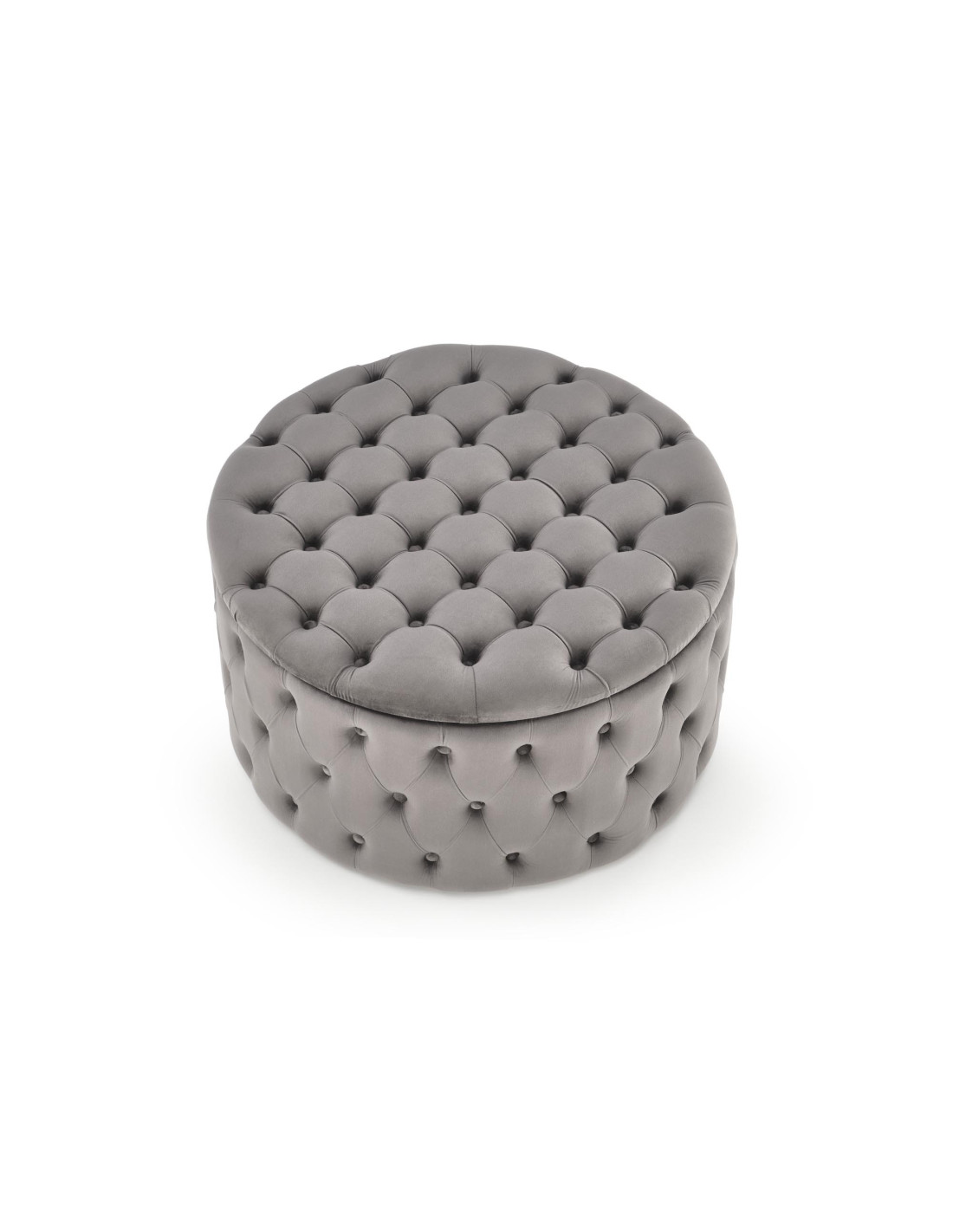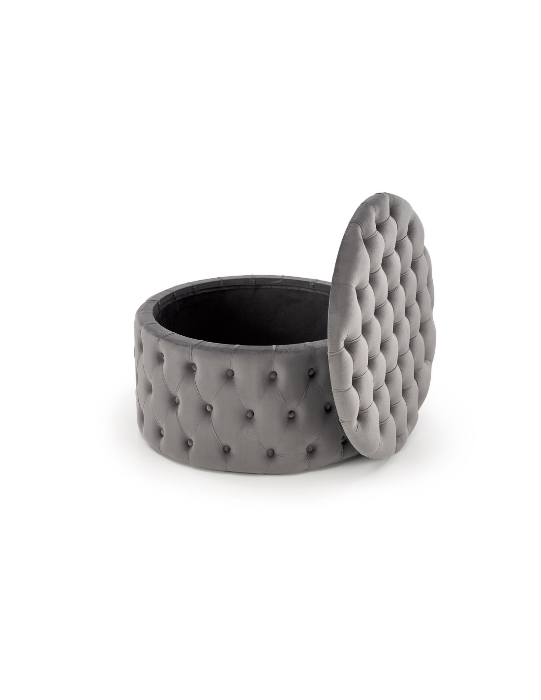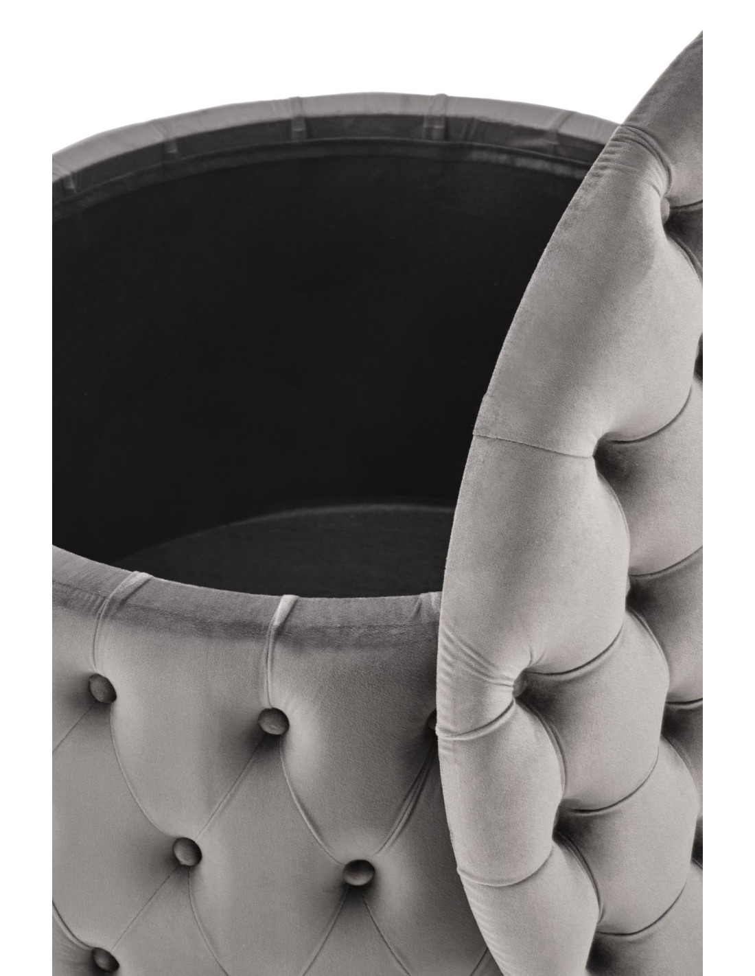 NUNEZ Pufa Okrągła Popielata Pikowana Fi70/40 cm Velvet z Funkcją Pojemnika