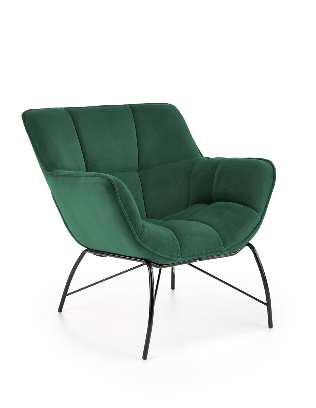 Poznaj fotel wypoczynkowy BELTON, który zachwyca swoim głębokim, intensywnym kolorem oraz eleganckim designem. Miękkie obicie w kolorze ciemnozielonym oraz wyprofilowane oparcie sprawiają, że każde siedzenie w nim to prawdziwa przyjemność. Dzięki szerokiemu siedzisku oraz podłokietnikom, fotel zapewnia komfort w każdej chwili relaksu. Stojak wykonany z malowanej proszkowo stali dodaje mu nowoczesnego wyglądu, a zaokrąglony kształt sprawia, że całość prezentuje się stylowo i elegancko.