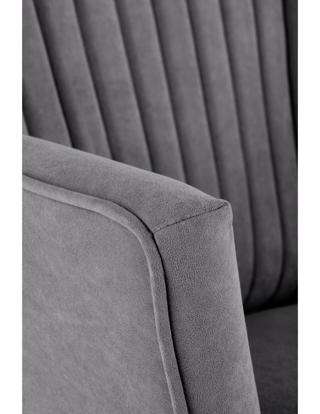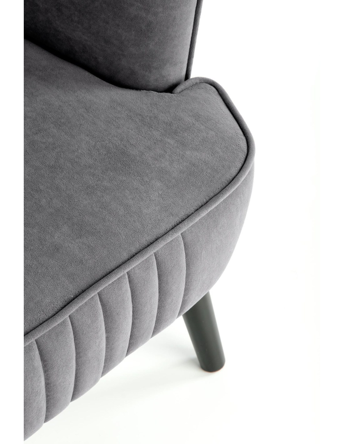 Wybierz fotel wypoczynkowy DELGADO, który łączy w sobie nowoczesny design z subtelnym stylem. Jego elegancka, popielata tapicerka z weluru oraz pionowe przeszycia na oparciu i siedzisku nadają mu wyjątkowego charakteru. Lekko zaokrąglone kształty sprawiają, że każdy moment spędzony w tym fotelu to prawdziwa przyjemność.