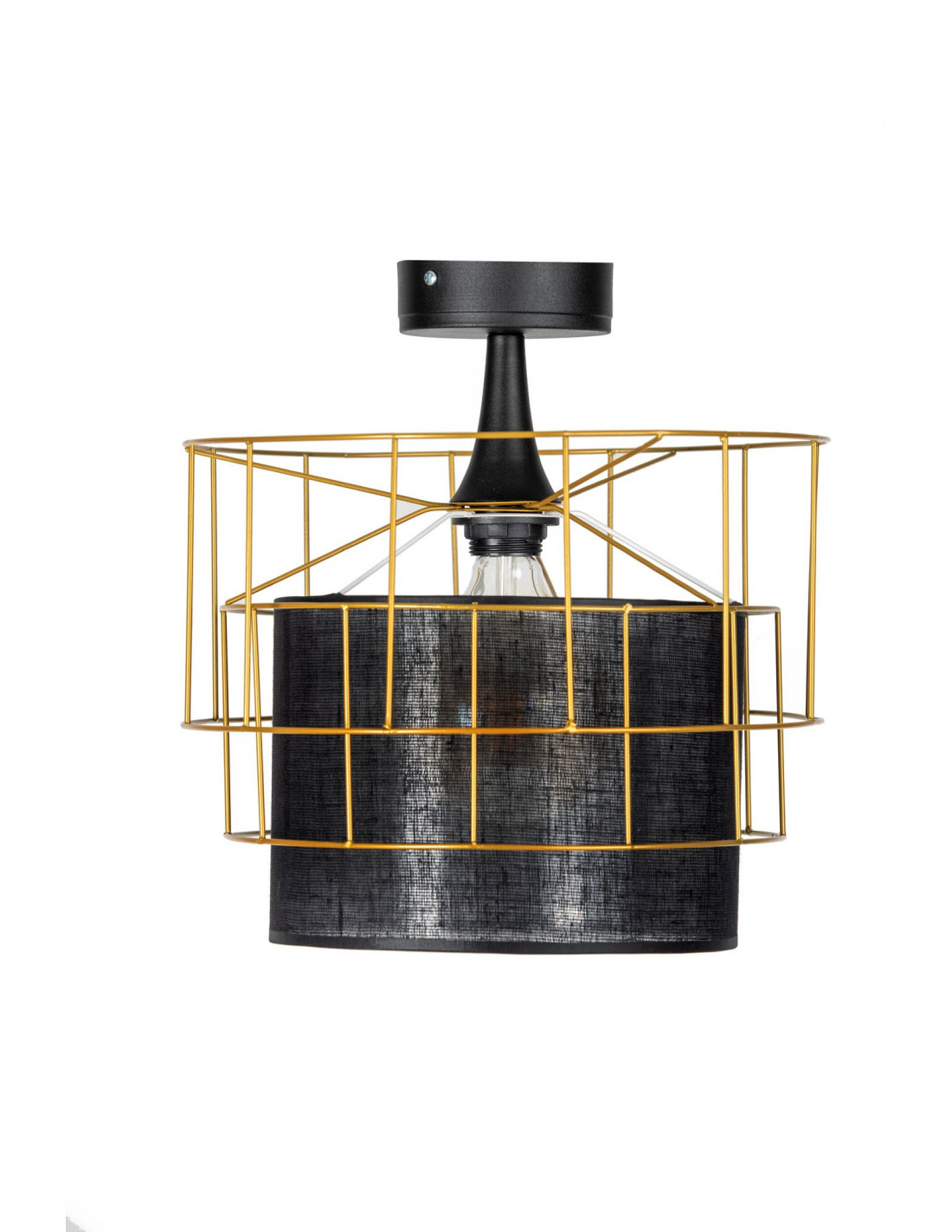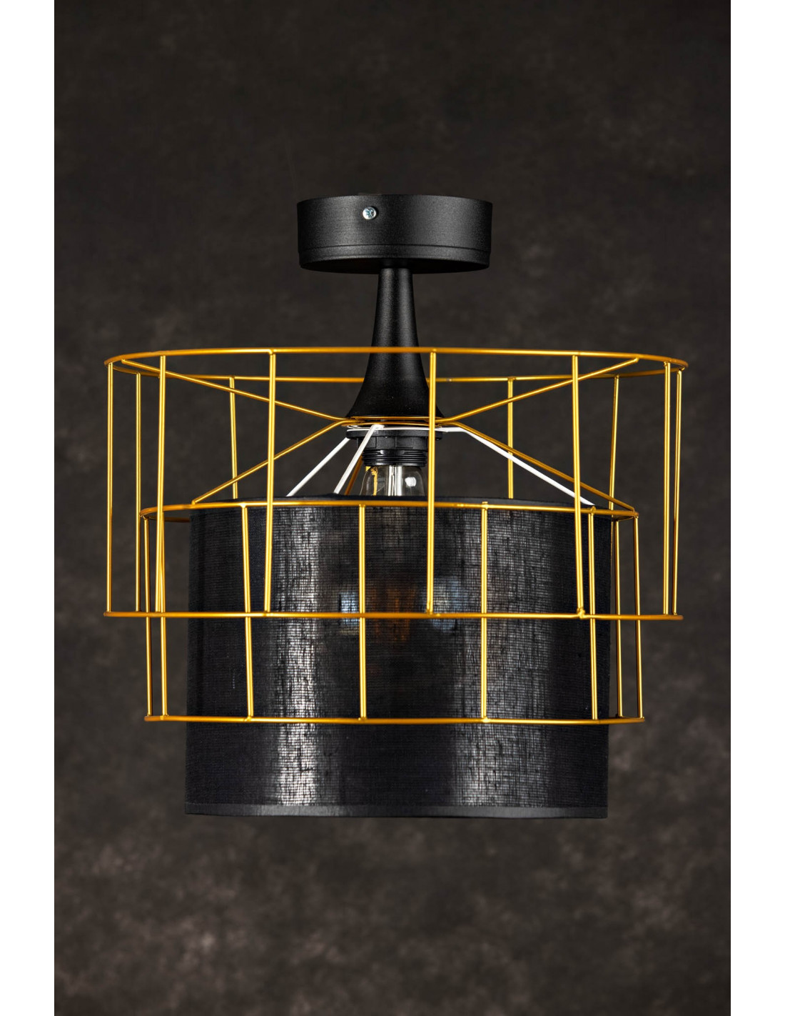 Plafon EDIT w kolorze złotym z abażurem lnianym czarnym to prosta,architektoniczna forma, idealnie wpisująca się w nowoczesne wnętrza.W plafonie tym połączyliśmy trzy bryły o różnej średnicy i wysokości.Lampa daje przyjemne i łagodne światło. Jej nowoczesny design będzie ozdobą salonu, sypialni czy pokoju dziennego.