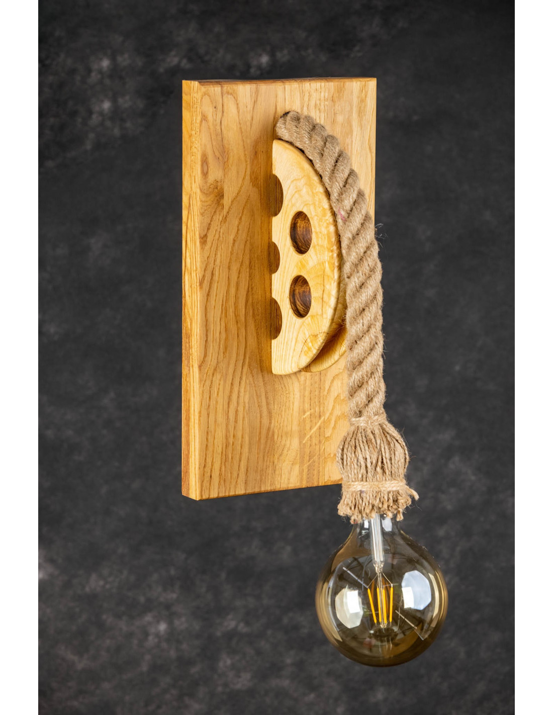 Kinkiet industrialny LOCH NESS w kolorze naturalnym, wykonany jest z drewna dębowego/jesionowego i to właśnie drewno sprawia, iż lampa posiada swoje naturalne piękno.Zawieszony zawsze na wysokości wzroku, obojętnie czy na korytarzu, w jadalni i salonie lub w pokoju dziecięcym stanowi zawsze dodatkową ozdobę. W modnym stylu skandynawskim, rustykalnym lub w bardzo nowoczesnym wydaniu – zmienia miejsce nie do poznania.